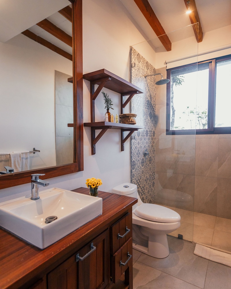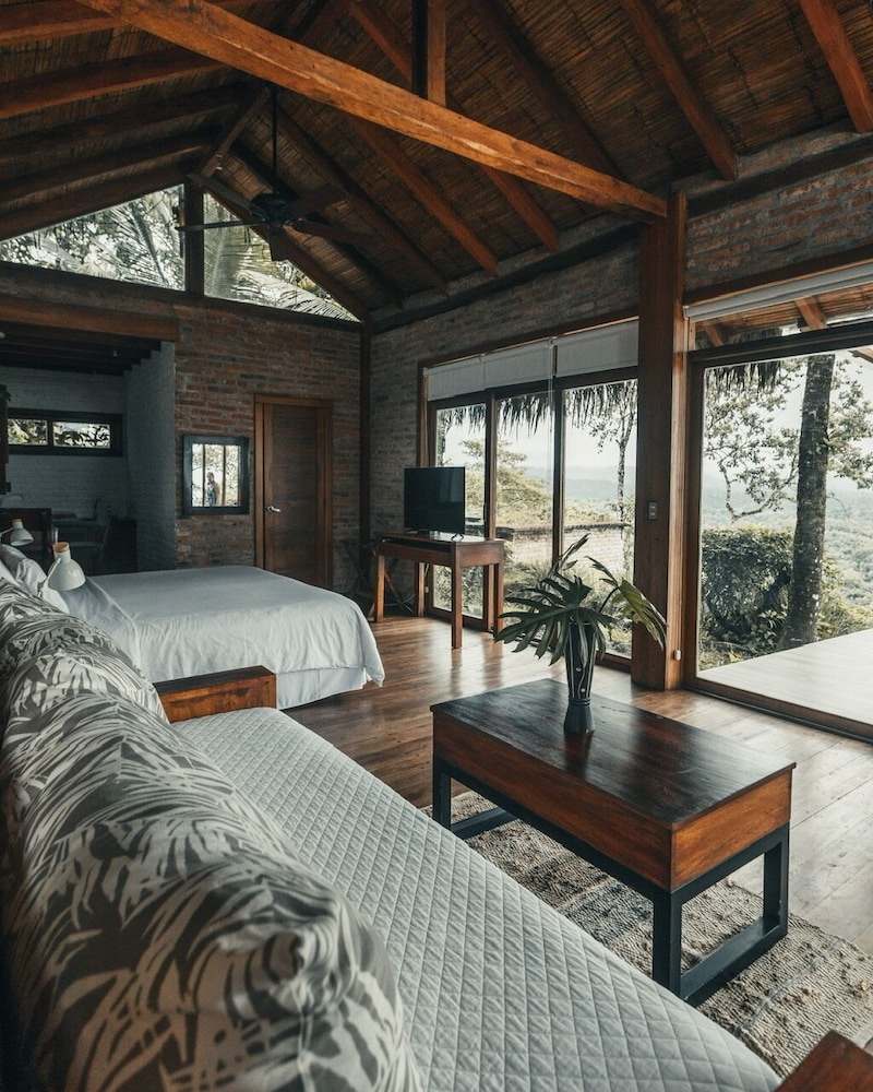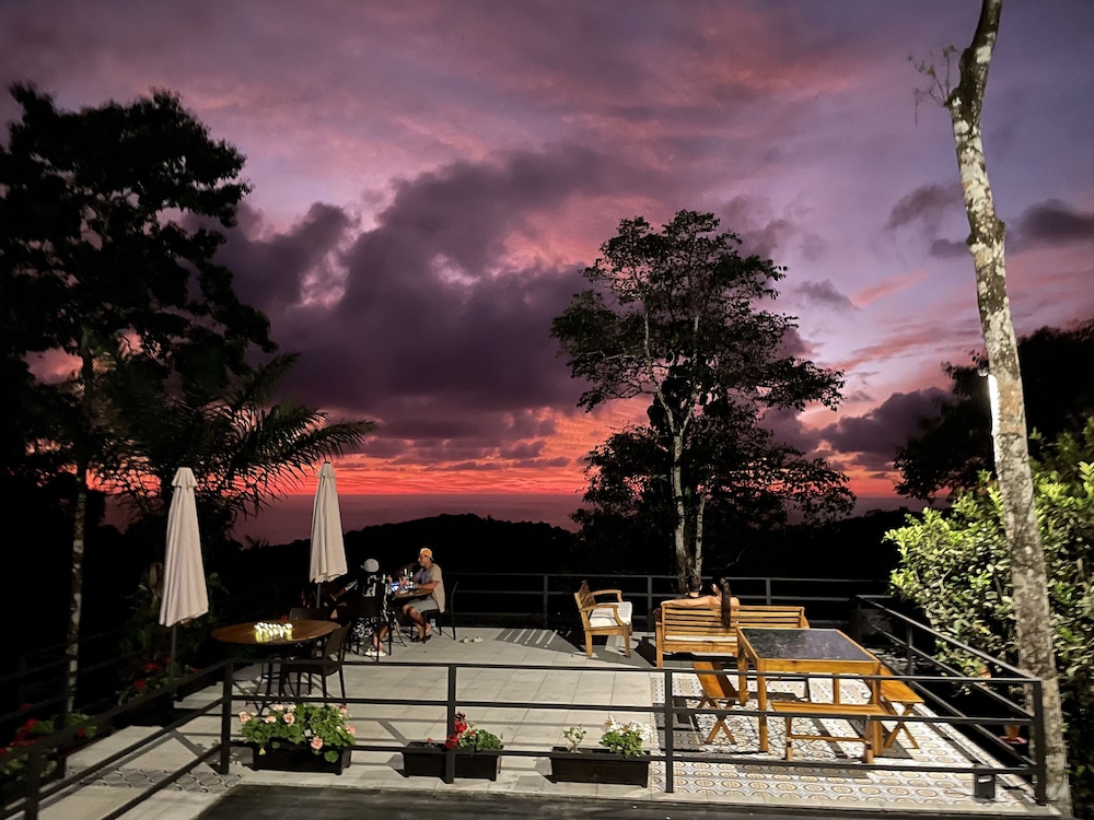 El hotel cuenta con todas las facilidades... Tienen un parqueo amplio donde puedes dejar tu auto con toda seguridad... Las habitación son muy cómodas y tienen de todo si deseas pasar un tiempo más largo... Tienen un balcón con vista al mar desde lo alto de la montaña... Dentro de tu loft tienes un área de cocina con hornilla, lavadero, mini nevera y demás utensilios como cubiertos, ollas y platos... El aseo es muy bueno de todo el loft... En baño es amplio tienes agua caliente en la ducha y la presión del agua es muy buena para que puedas tomar tu baño... El área común tienes una piscina con la mejor vista hacia el mar y desde la cual también podrás ver los mágicos atardeceres o también desde un área con mesas en la cual puedes realizar una fogata... Tu estadía te incluye el desayuno, en el cual tienes varias opciones para elegir en mi caso elegimos bolones y tostada de aguacate los dos estuvieron muy buenos... Están cerca a las playas de de olon una playa muy tranquila o ayampe también... El servicio y atención del personal esexcelente, siempre tratando de ayudarte, tienen una muy buena predisposición incluso cuando están ocupando y pendientes de ayudarte en lo que necesites... Una recomendación en el lugar hay muchos bichitos pequeños que te dejan una picaduras un poco dolorosas así que lleva repelente y siempre ten las mallas de todas las ventanas cerradas ya que son muy pequeños y aún así pueden ingresar, incluso te diria que tengas todos los ventanales cerrados...