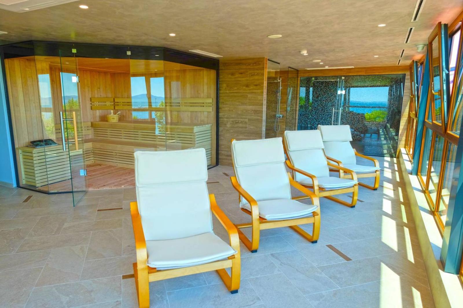 Unwind on the fourth floor with breathtaking sea views and take advantage of our complimentary hot tub, steam bath, and sauna. Treat yourself to massages, salt room sessions, or physiotherapy for the ultimate relaxation experience.