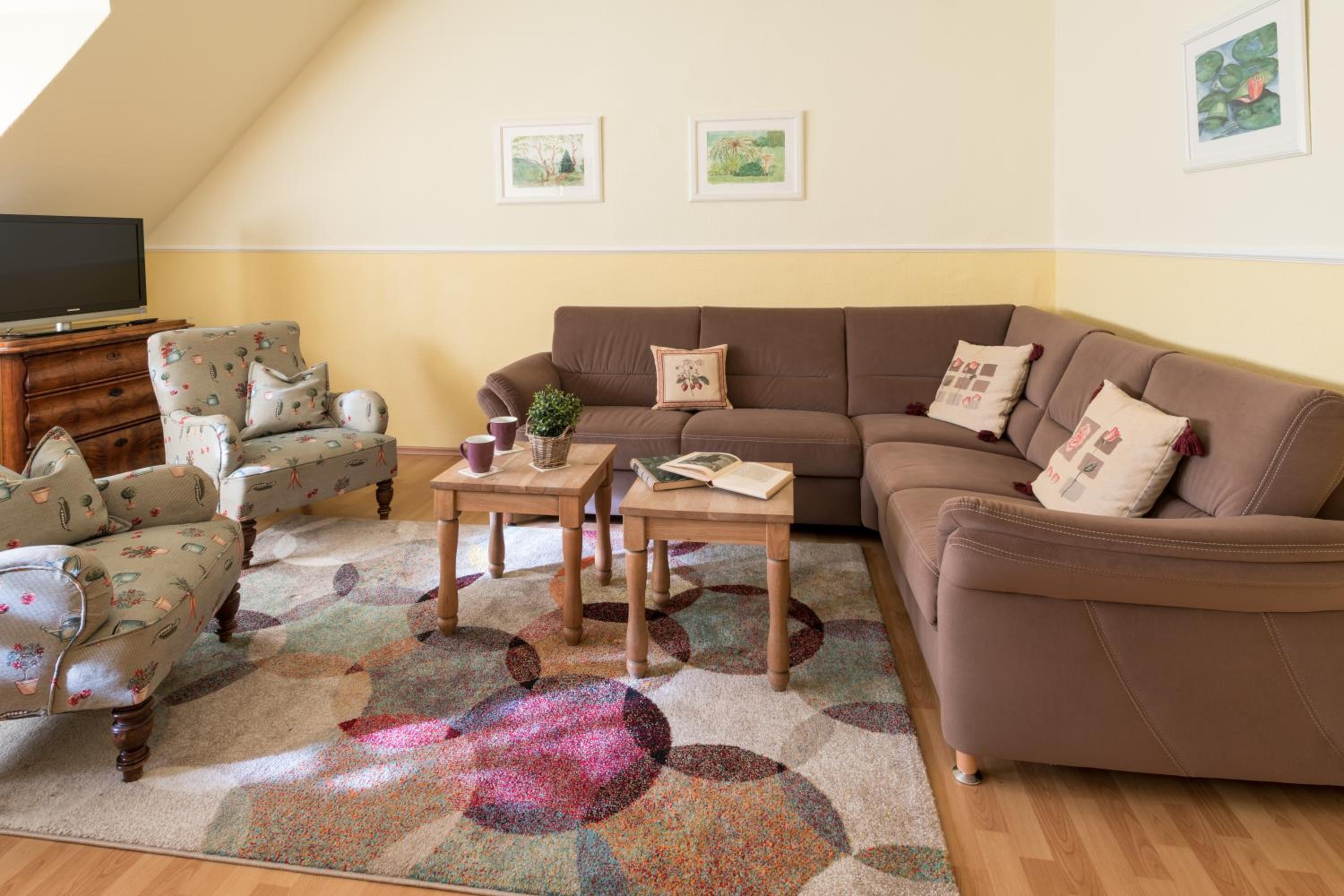 Experience comfort in the classic-style rooms featuring wooden floors, a cozy seating area, and a flat-screen TV. Upgrade to an apartment for extra space and convenience. Each accommodation includes a private bathroom with all essentials provided.