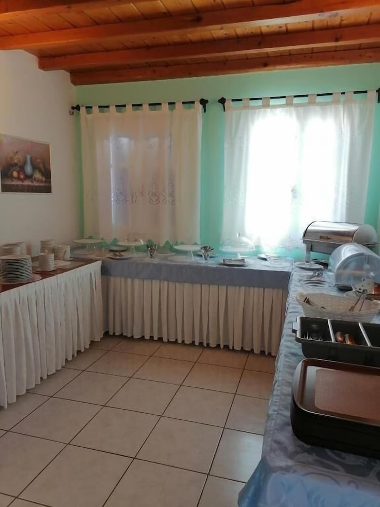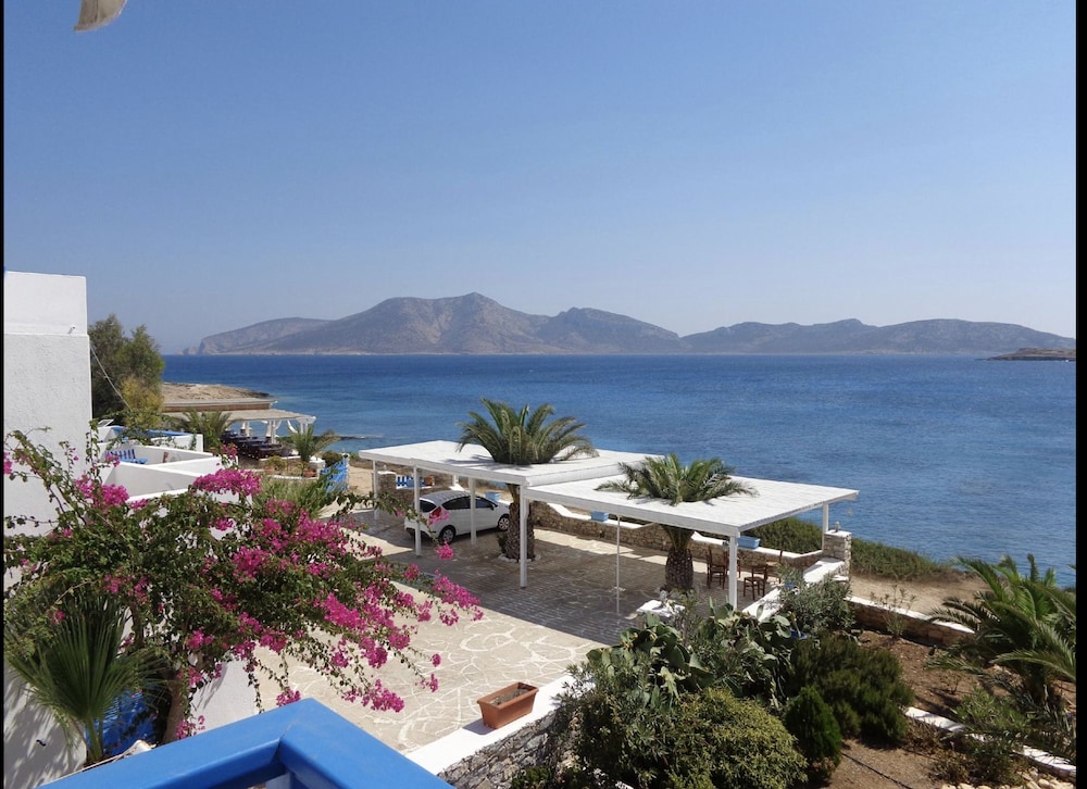 Hotel localizado de frente mar em um penhasco, linda vista, mas a proprietária que ficava no cafe da manhã era indiferente, nada atenciosa, já o proprietario, que faz as vezes de motorista da van de transporte ao porto, é solicito e disponível. Quanto à limpeza o apartamento foi entregue com cabelos no chão do banheiro e na mesa, tem lustres e detalhes empoeirados e o travesseiro extra nem fronha tinha. Quanto ao conforto, o colchão é ruim, o suporte do chuveiro estava quebrado, banho somente segurando o mesmo na mão, a cortina do box do banheiro é curta e molhava todo o pequeno banheiro. As fotos do quarto " vista jardim" do Hotéis.com, não são do quarto que você fica. O café da manhã foi o pior de minha viagem de 30 dias pela Grécia e Alemanha, em hoteis de custo equivalente.