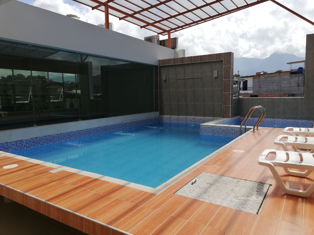 Enjoy the indoor pool and terrace at Cerro Verde Tarapoto Hotel, offering relaxation and beautiful vistas for your stay.