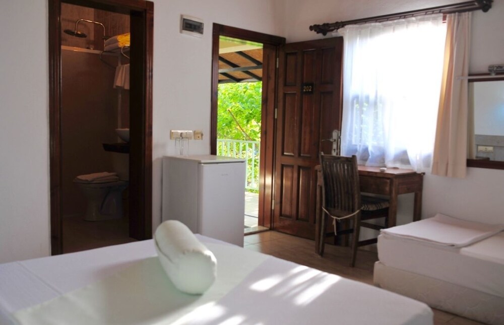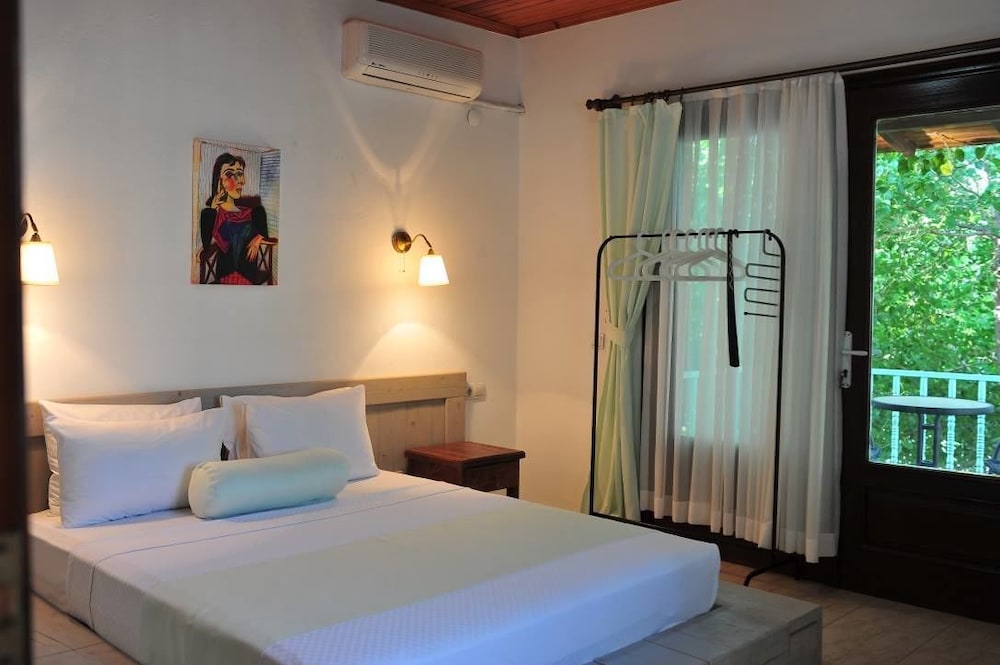 Selimiye'de kalınabilecek en güzel yerlerden biri. Çarşıya doğru gidip kalabalığı ve teknelerle dolu denizi gördüğünüzde "iyi ki burada kalmışım" diyeceksiniz. Huzurlu ortamı, sakin iskelesi ve ağaç gölgeleri altında serin bahçesini çok sevdik. Otelin sahibi Can her konuda bize yardımcı oldu, rezervasyon yaptırmadan önce mutlaka kendisini arayın. Kalamar ve karides şimdiye kadar yediklerimden en iyileriydi. Akşam iskelede yemek yemeden dönmeyin. Denizde yüzerken otelin ağaçlardan görünmemesi beni çok mutlu etmişti :) Bu sene tekrar gitmek için yer ayırttık bile, her şey için çok teşekkür ederim...