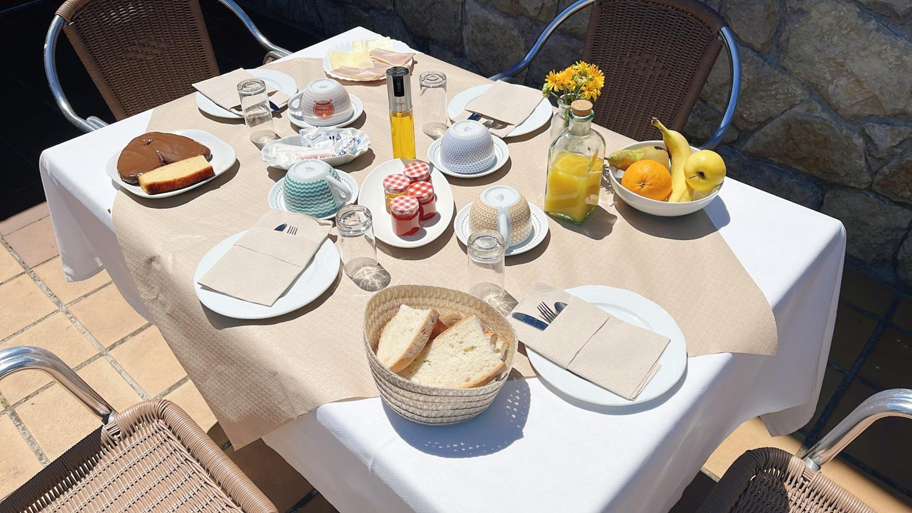El desayuno, no incluye nada de fruta, lo más parecido a fruta la mermelada de fresa o melocotón, (por lo menos el jueves de Semana Santa).