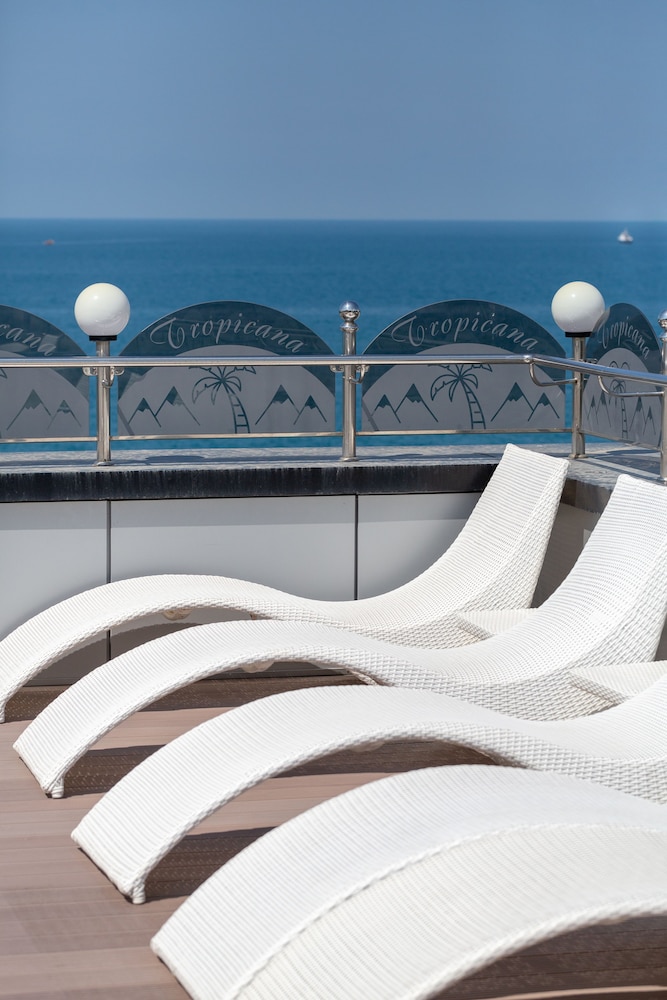 Отель Тропикана находится на первой береговой линии, номера имеют вид на море, что очень приятно. Но таксистам сложно с первого раза найти отель по указанному адресу, поэтому приходилось звонить и уточнять. Номера свежие, с хорошим ремонтом. В отеле предоставляется отличный завтрак на любой вкус, персонал очень приятный, вежливый и готовый помочь. На крыше есть терраса с шезлонгами, душевыми и баром. Из минусов я бы отметила только сильную слышимость и скользкий пол в номере, так как он выложен плиткой.
