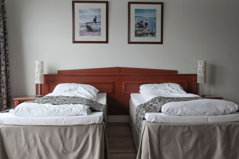 Helt greit rom, og gode senger. Hadde ikke mere middag igjen til gjestene 1 time før middagen sluttet. Hadde glemt å rengjøre rommet vårt Lørdagen. Pen beliggenhet og Hyggelig personalet.