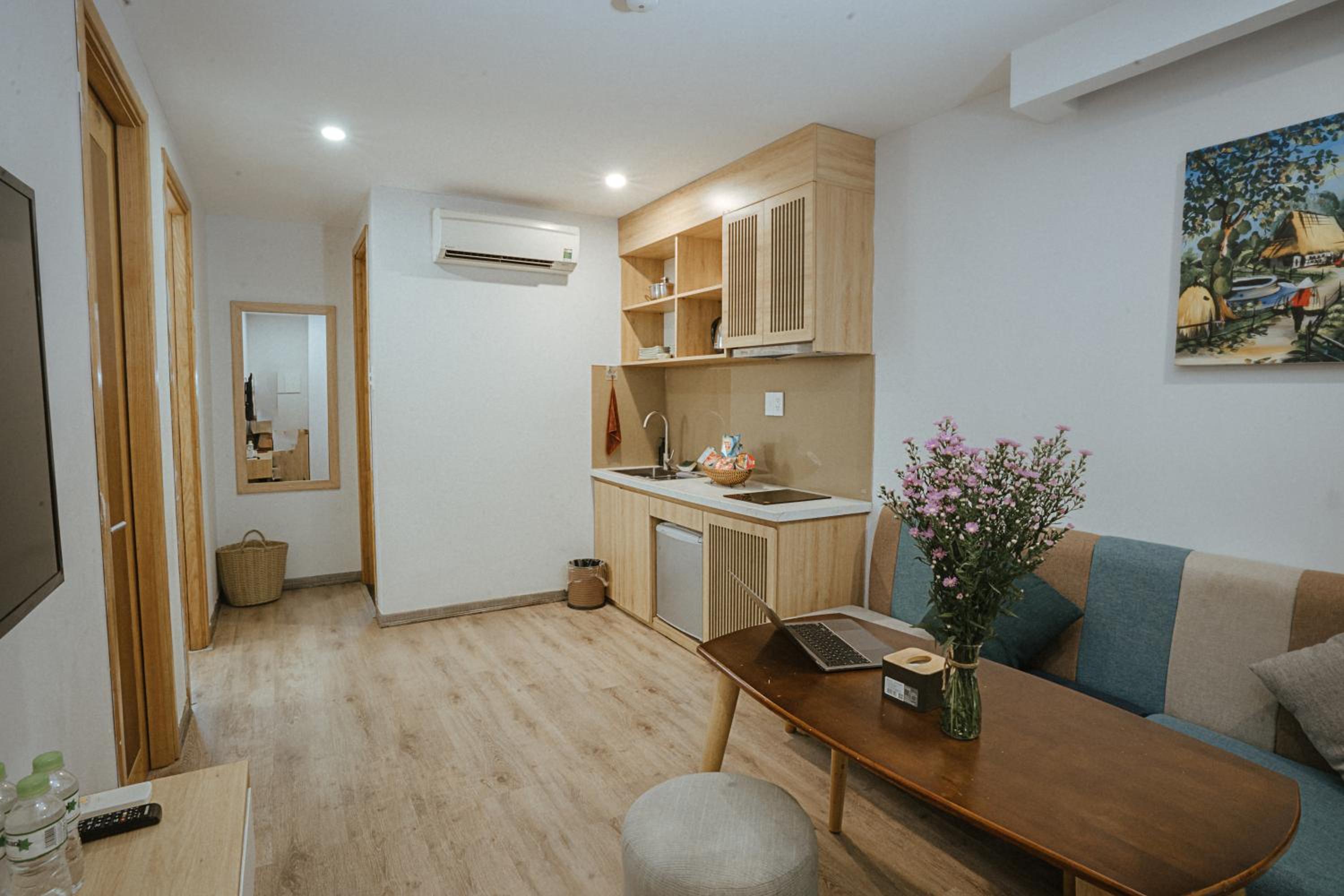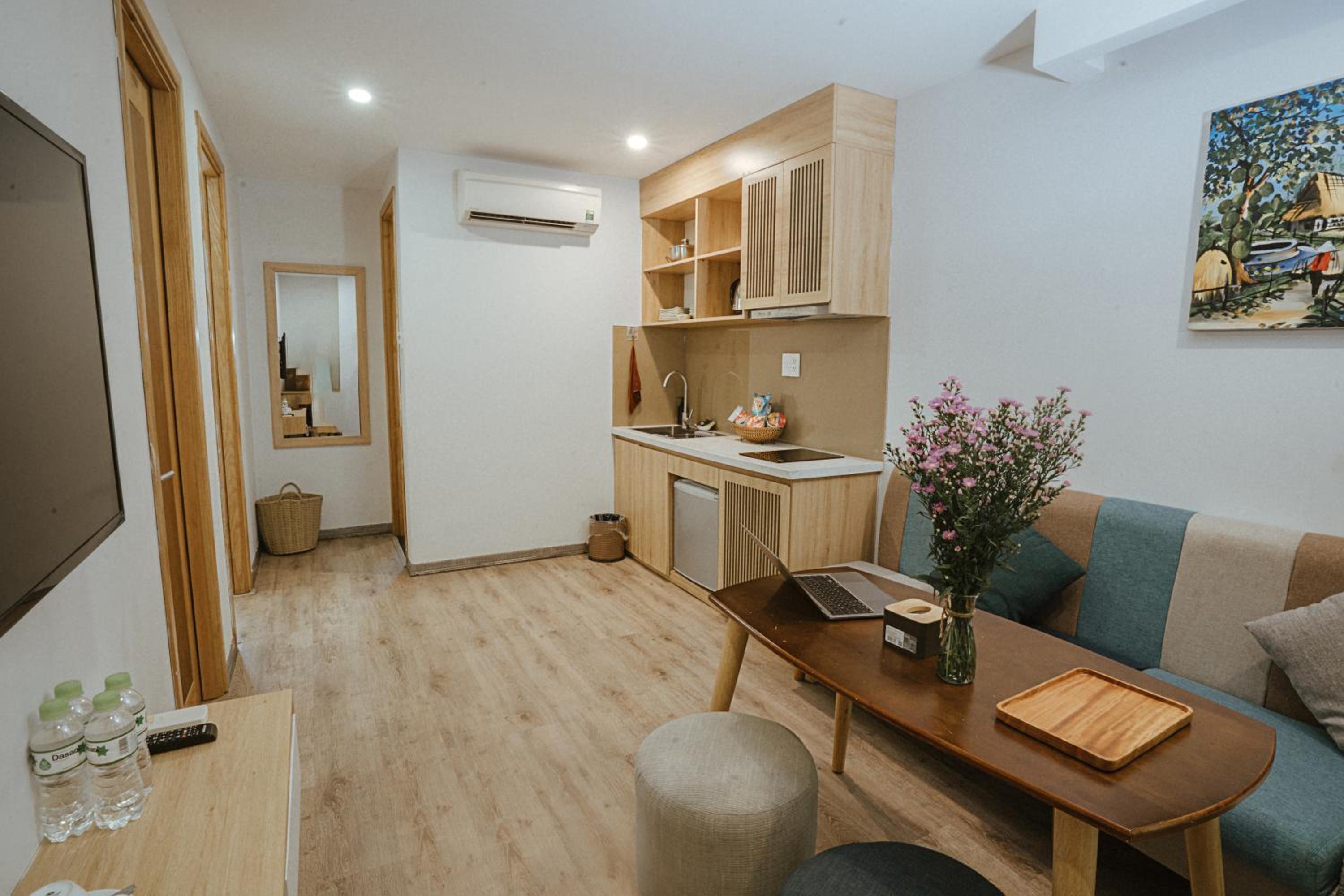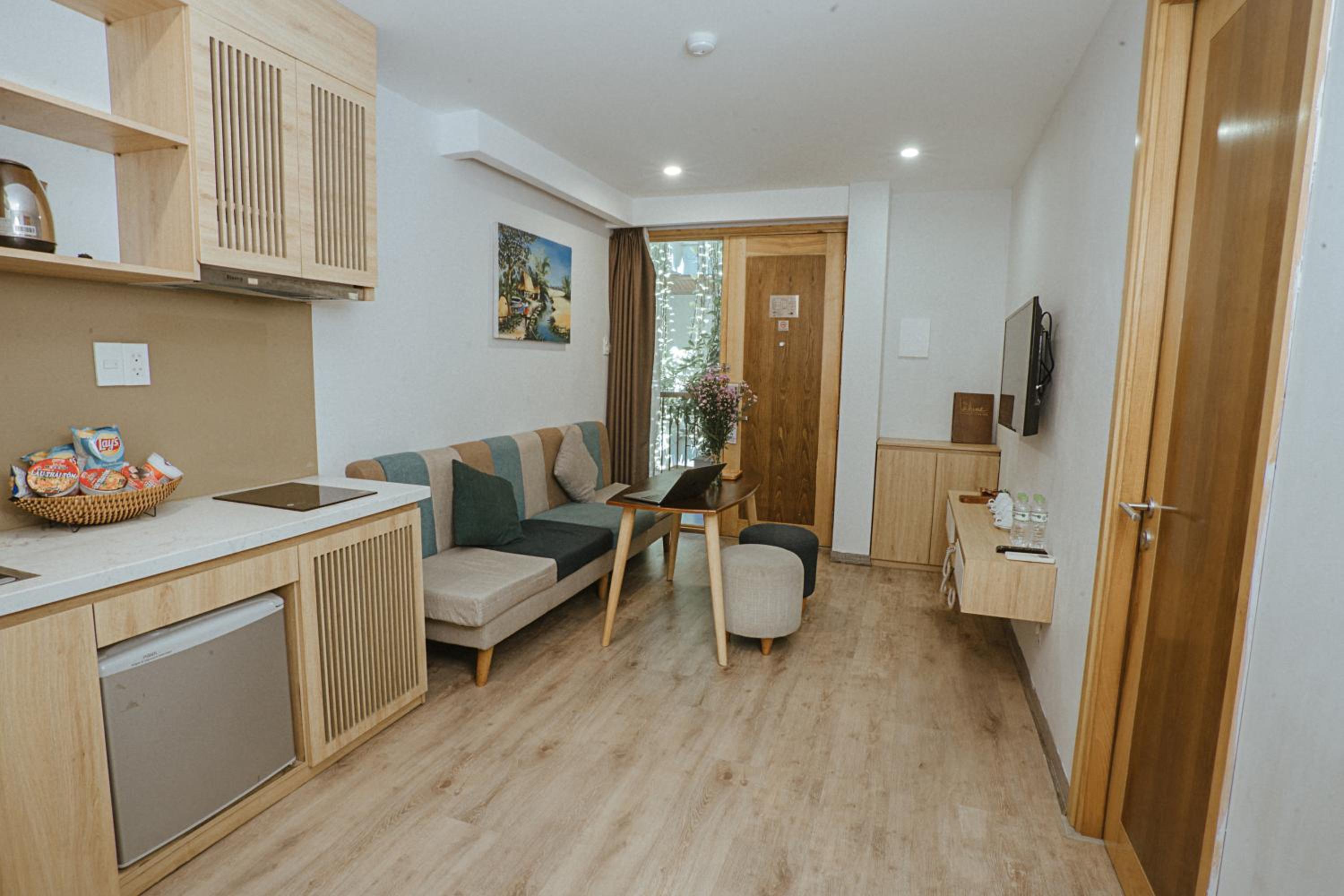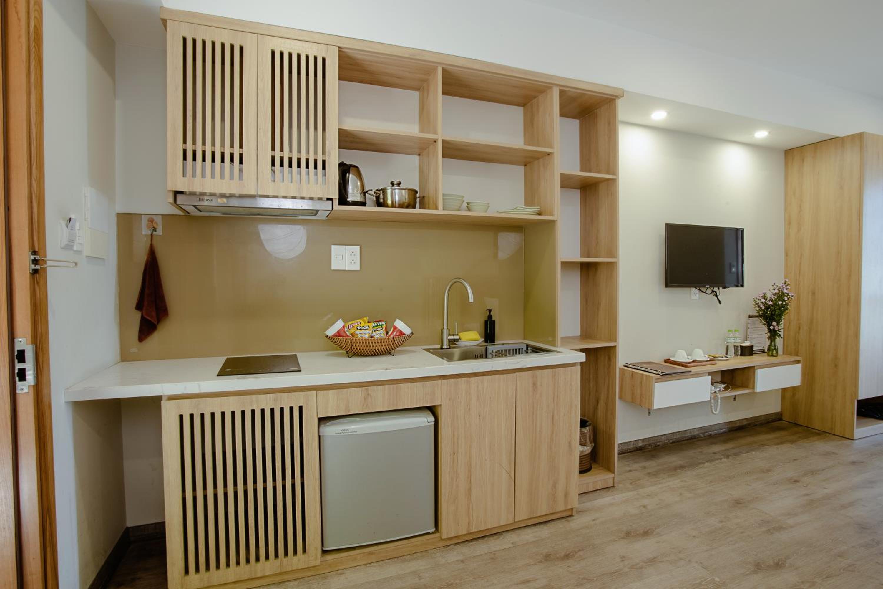 phòng cách âm khá tệ. khách sạn đầu tư hẳn khu vực bếp mà còn dùng cái tv từ thời nào rồi. thà là đừng lắp tv còn hơn là để thế kia. bạn nào có thói quen xem film or youtube trên tv với người yêu sau khi đi chơi về thì k nên ở đây nha.