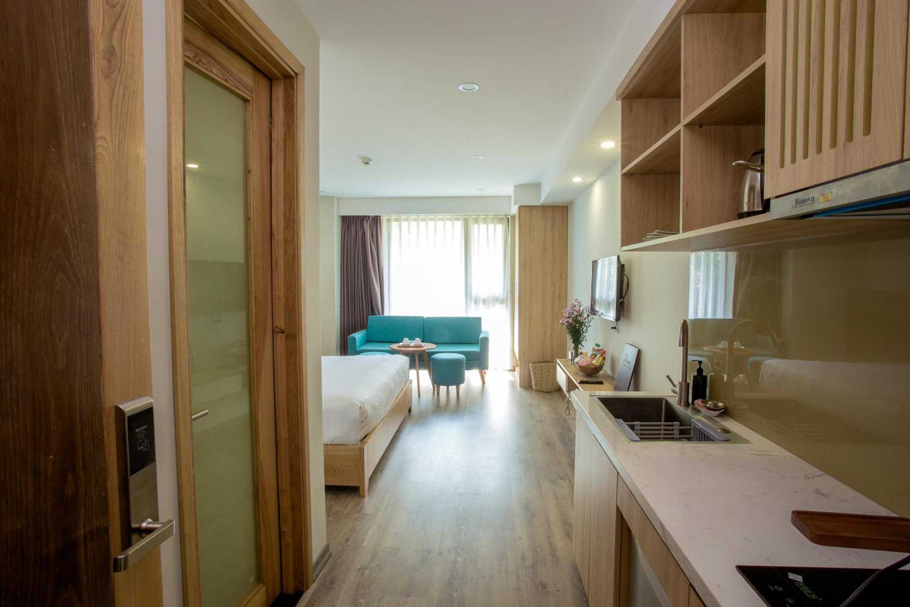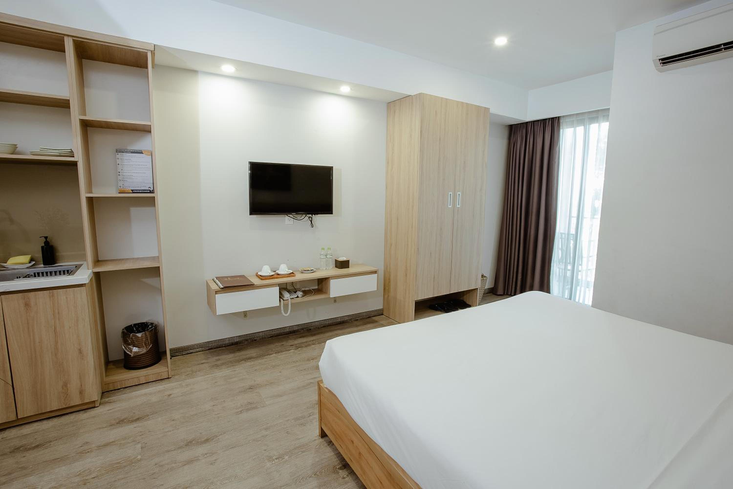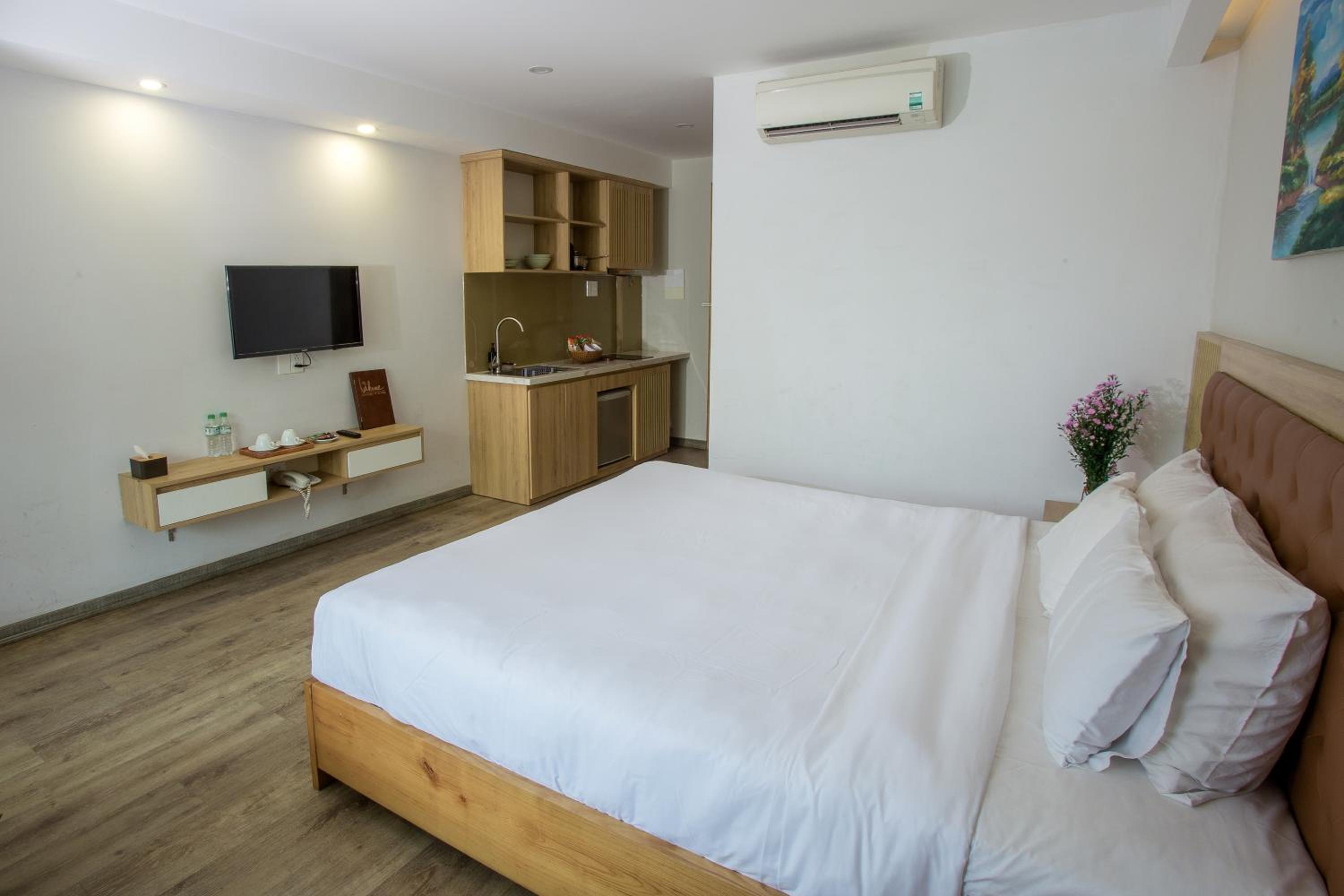 phòng cách âm khá tệ. khách sạn đầu tư hẳn khu vực bếp mà còn dùng cái tv từ thời nào rồi. thà là đừng lắp tv còn hơn là để thế kia. bạn nào có thói quen xem film or youtube trên tv với người yêu sau khi đi chơi về thì k nên ở đây nha.