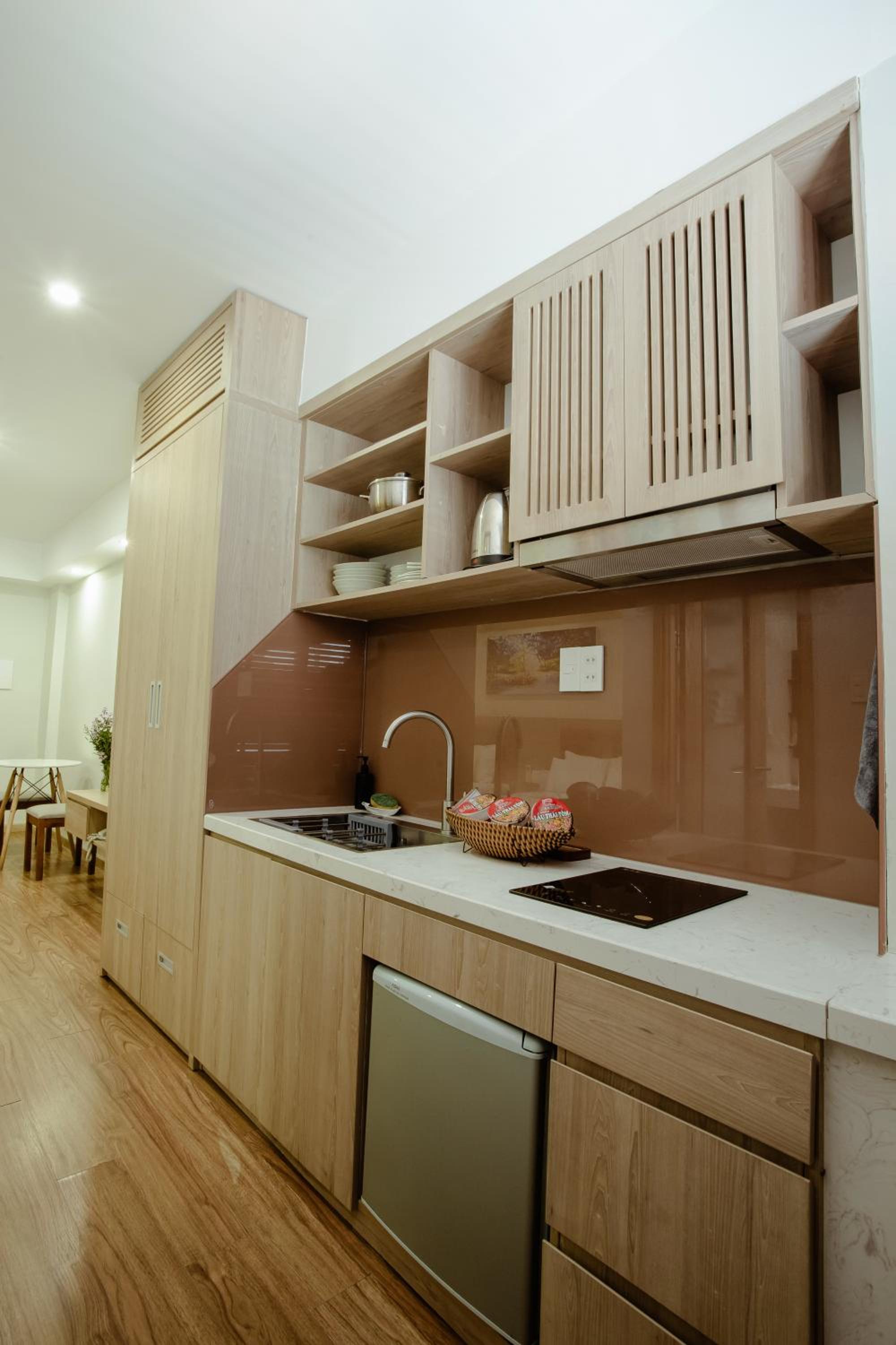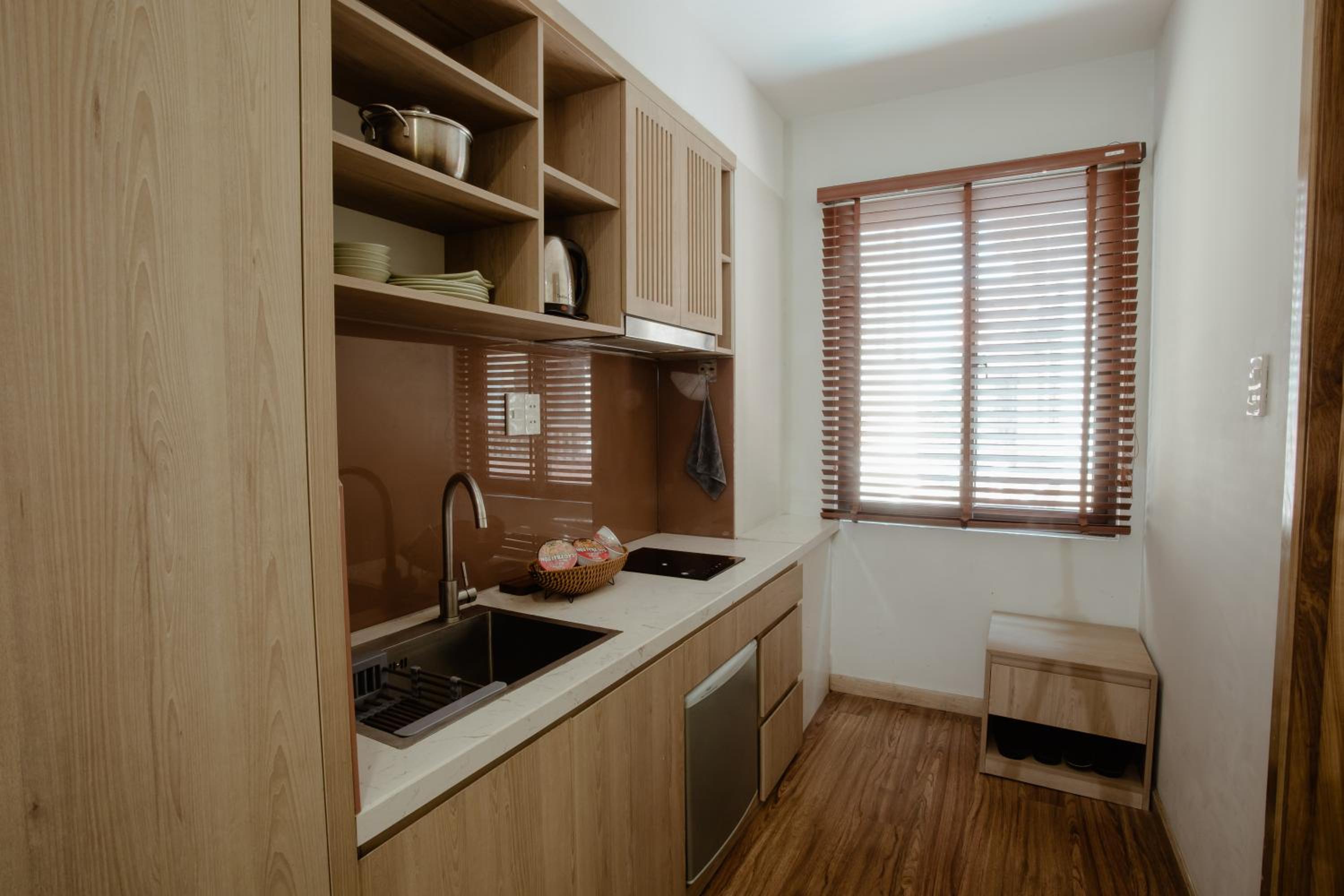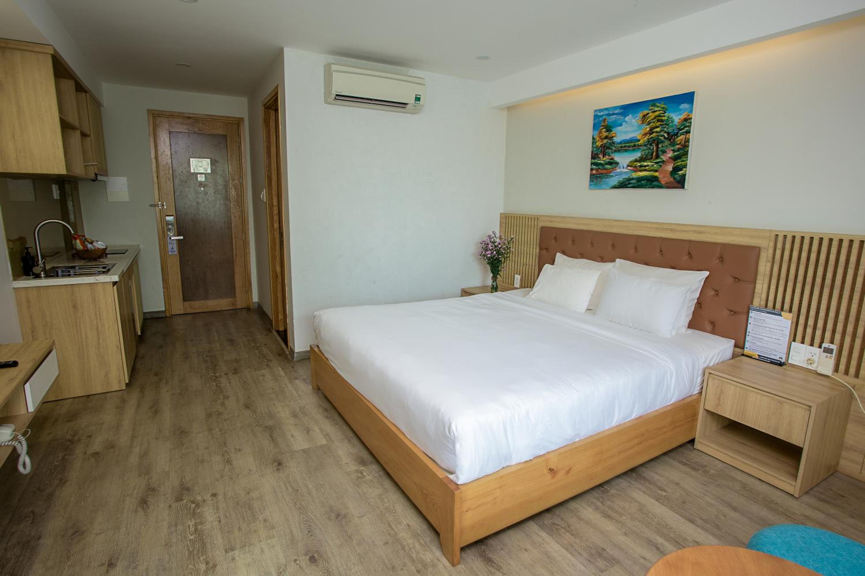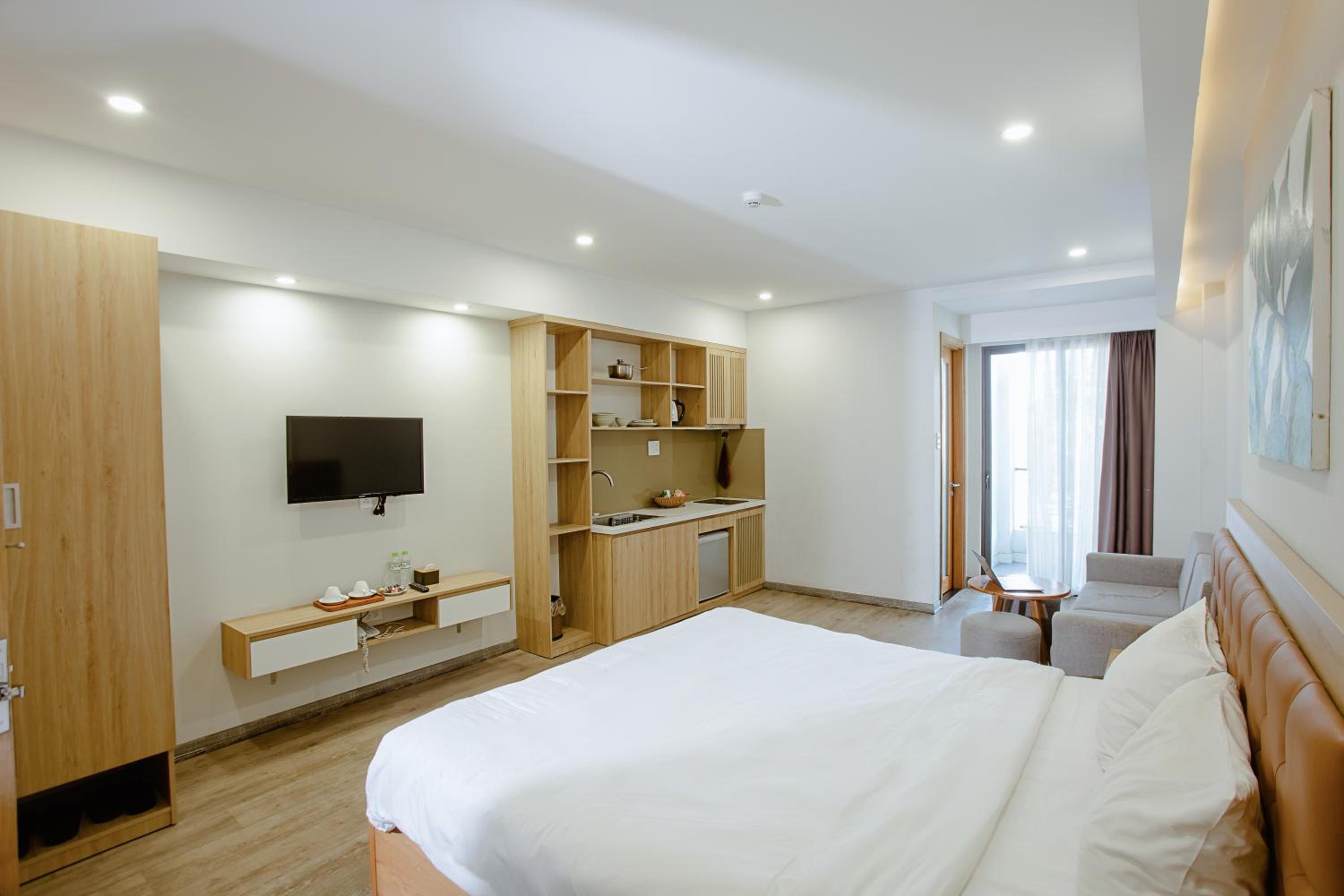 phòng cách âm khá tệ. khách sạn đầu tư hẳn khu vực bếp mà còn dùng cái tv từ thời nào rồi. thà là đừng lắp tv còn hơn là để thế kia. bạn nào có thói quen xem film or youtube trên tv với người yêu sau khi đi chơi về thì k nên ở đây nha.