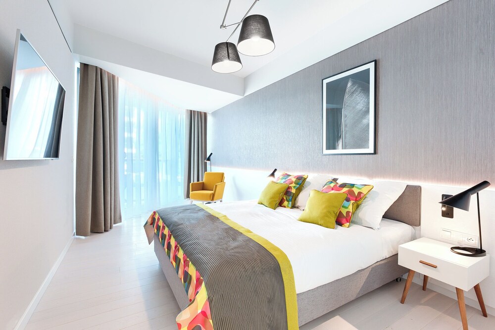 Flott og sentralt hotell. Hotellet ligger rett ved stranden. Gangavstand til sentrum. Nye, strøkne og store leiligheter.