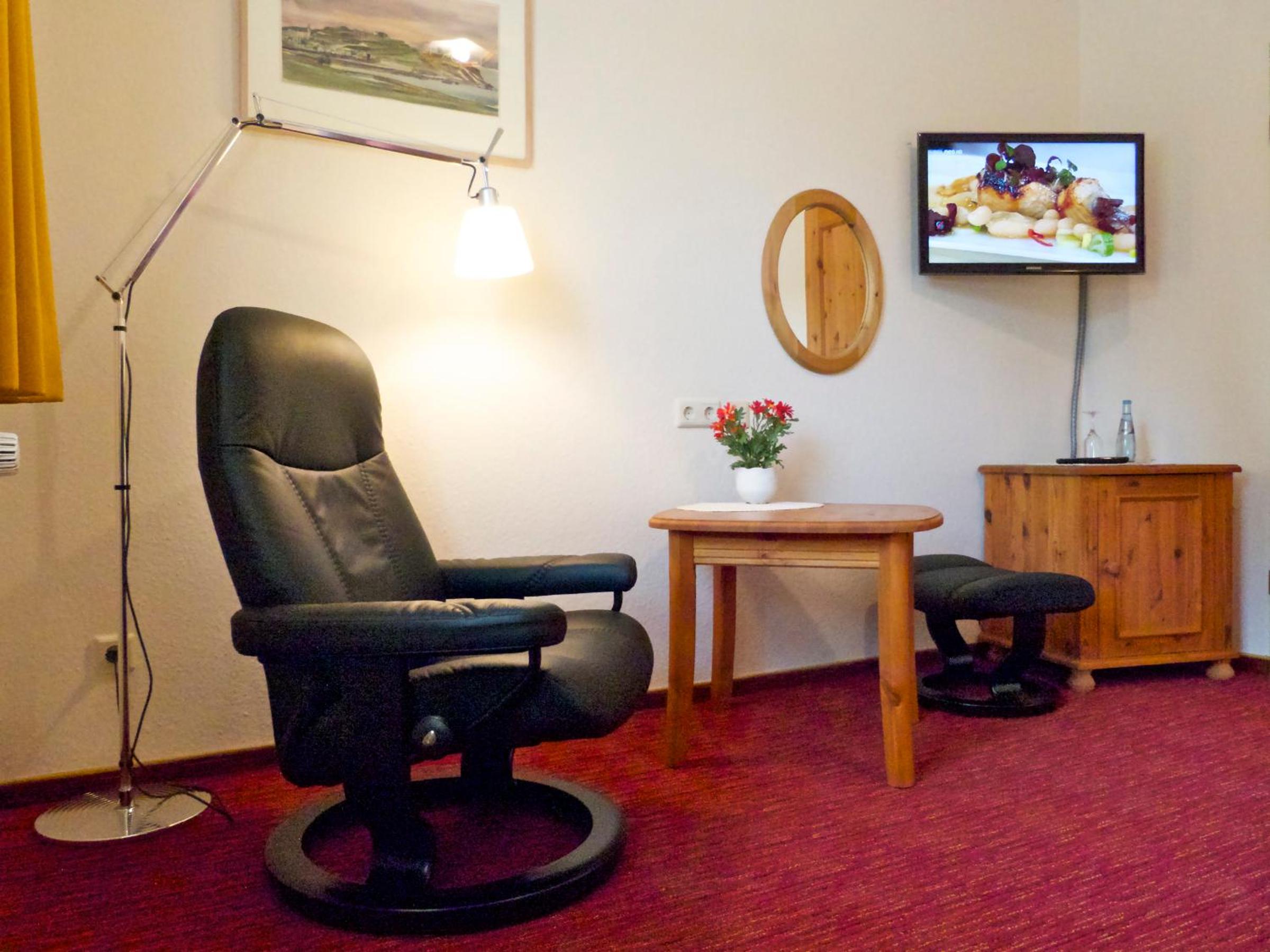 Small family run hotel, so more welcoming than a big chain hotel. The room was large and very comfortable. It was also impeccably clean. Whilst the bar/restaurant wasnt open the host was happy for us to help ourselves to beer and/or wine and pay the bill the following day. We had to find a take-away in the nearby village of Oyten. The breakfast was particularly good.