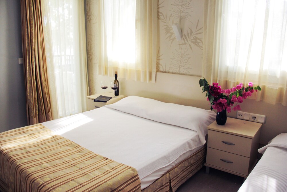 Odalar küçük ama her gün temizleniyor. Kahvaltı oldukça yetersiz, ürün kalitesi çok düşük, nescafe içmeyen ve kahve talap eden insanlara filtre kahve ekstra olarak yazılıyor, ve o filtre kahve de son derece düşük kaliteli, nescafe’den pek bir farkı yok. Otelin denize erişimi tesisin en iyi özelliği, zaten diğer özellikleri vasat. Otelden çıkarken işletmecileri 20 dakika beklememize rağmen bir çay bile ikram etmediler, memnun kaldınız mı diye yarım ağızla bile sorulmadı. Bir daha konaklamayacağım bir otel oldu ne yazık ki. Standartları normalin üstünde olanlar için büyük bir hayal kırıklığı oteli. Fakat tek beklenti deniz ve kuma erişim ise ideal otel budur. En sonda çay ya da su bile ikram etmeme durumu benim için son nokta olmuştur.
