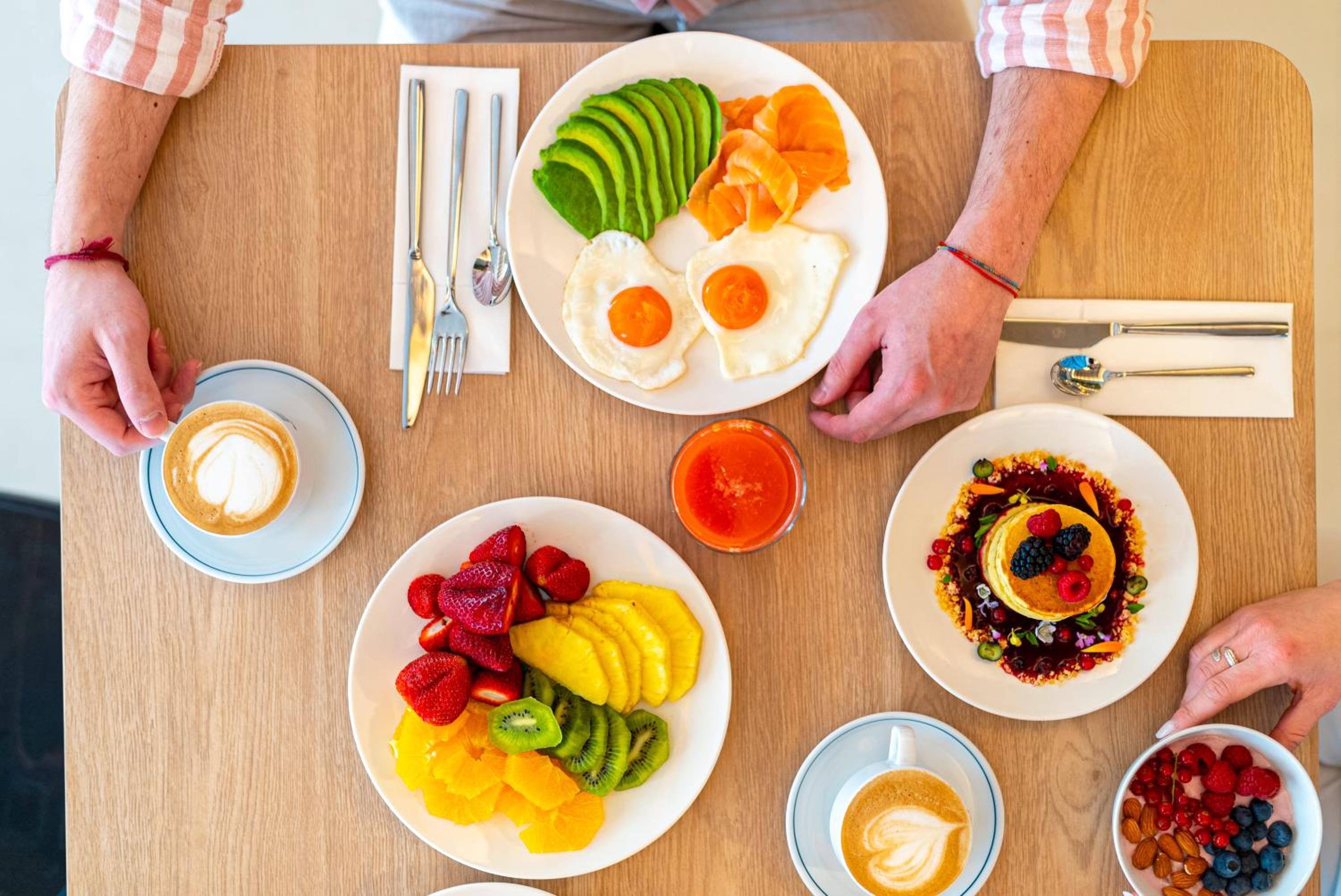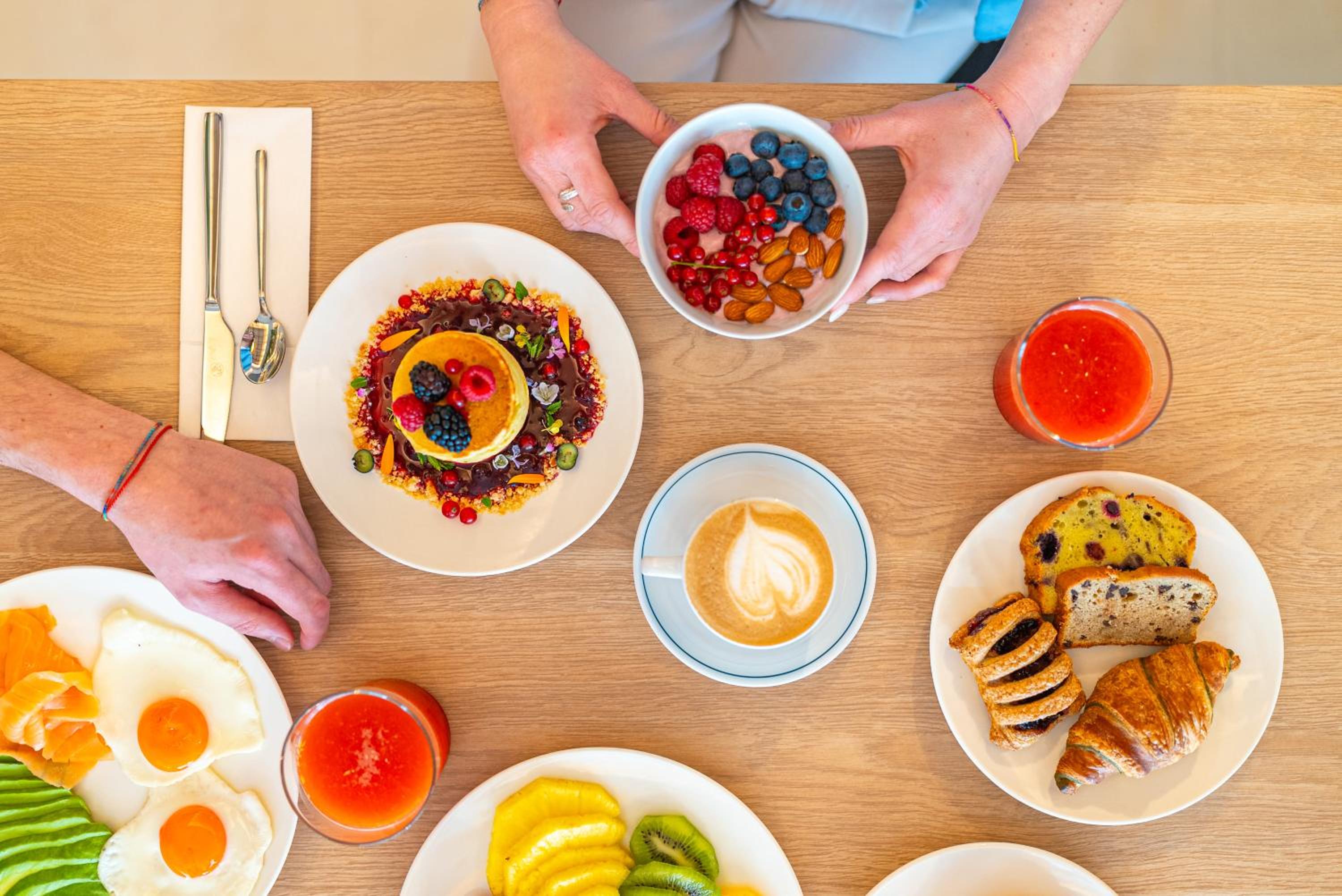 The separate plus ir the breakfast - very good- there is a warm food corner with scrambled eggs and bacon, but the sweet breakfast table is so big, there's everything you could wish. Bravo!