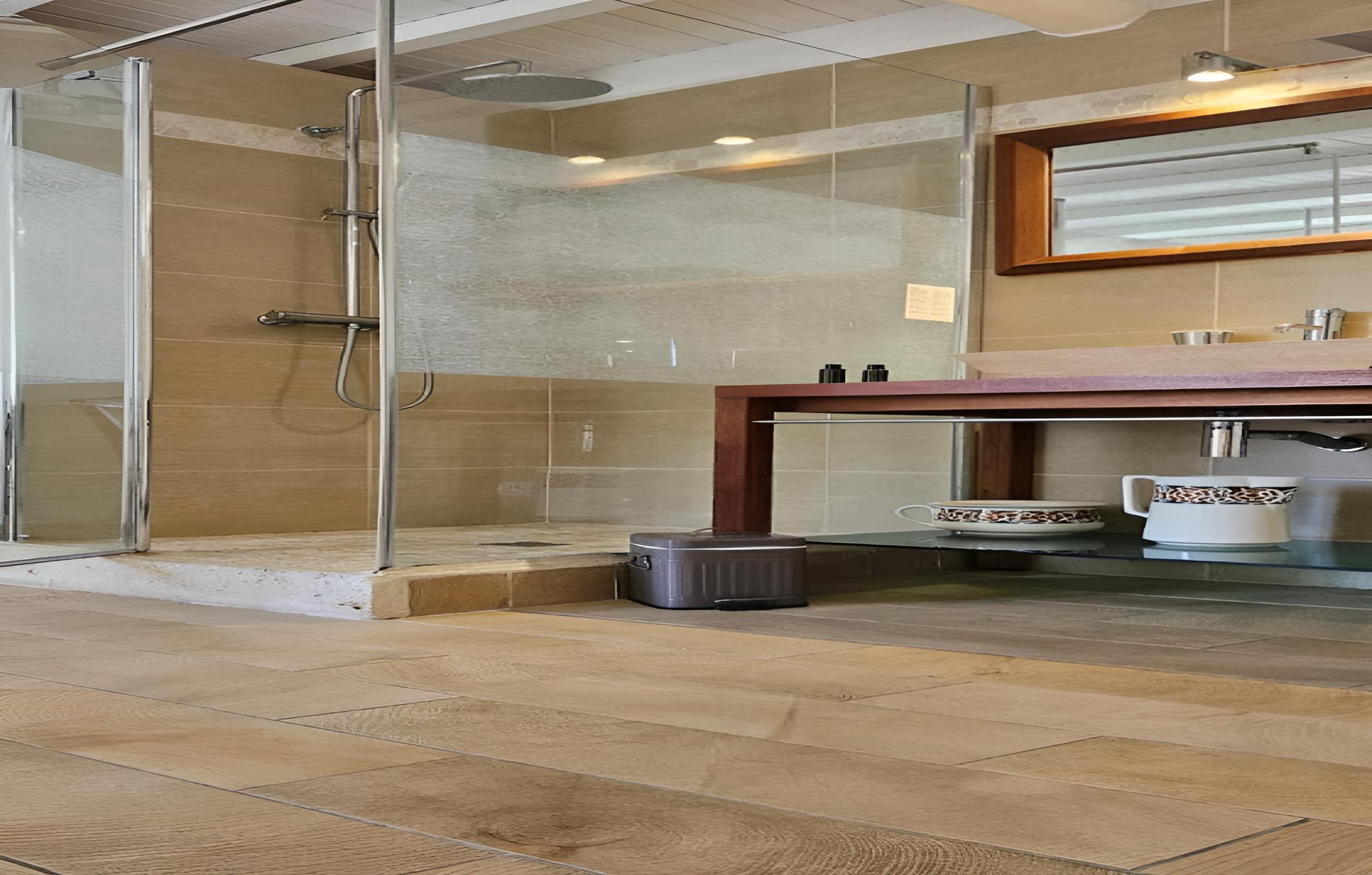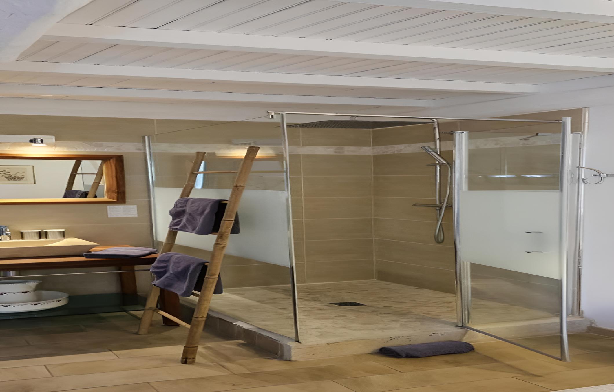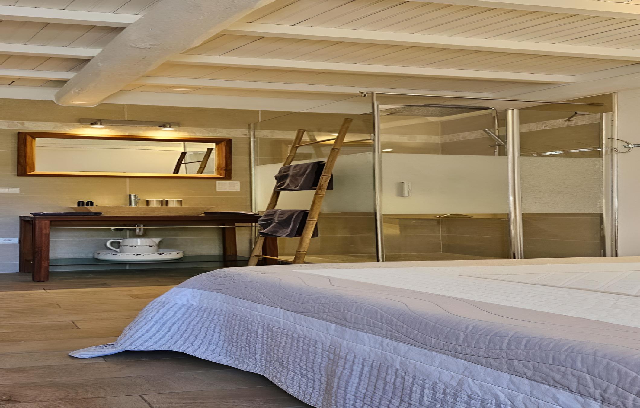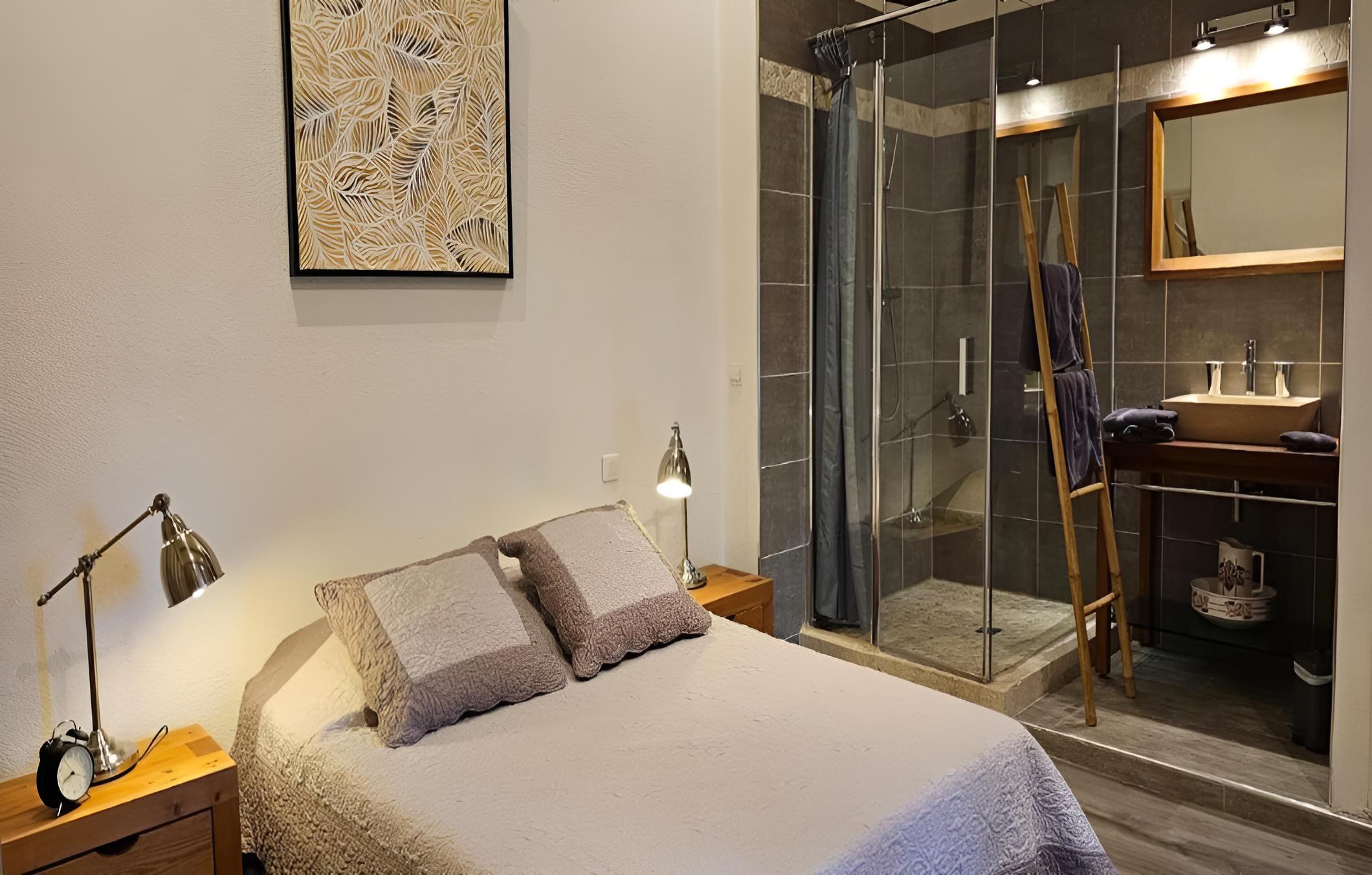 Indulge in picturesque countryside views from each guest room at Chez Rosette - Auberge de Lussan. The suite goes a step further with a spacious private terrace, perfect for unwinding in a serene setting. The modern en suite bathrooms with walk-in showers add a touch of luxury to your stay.