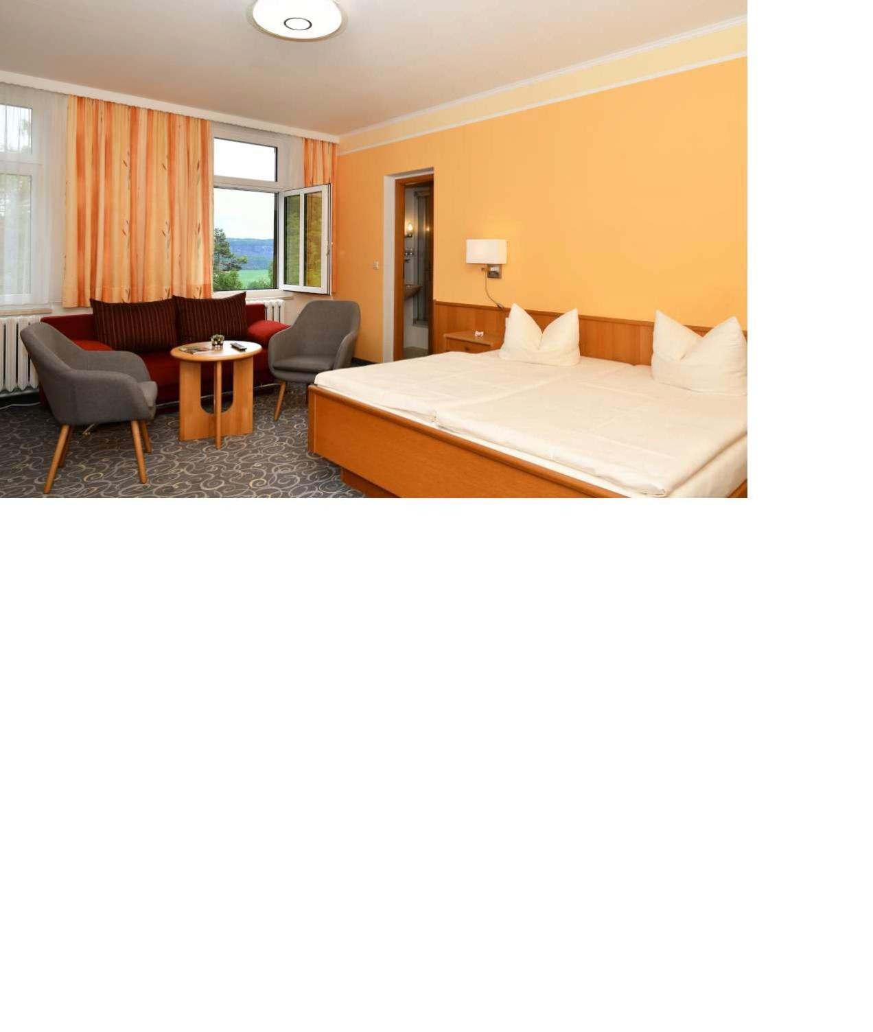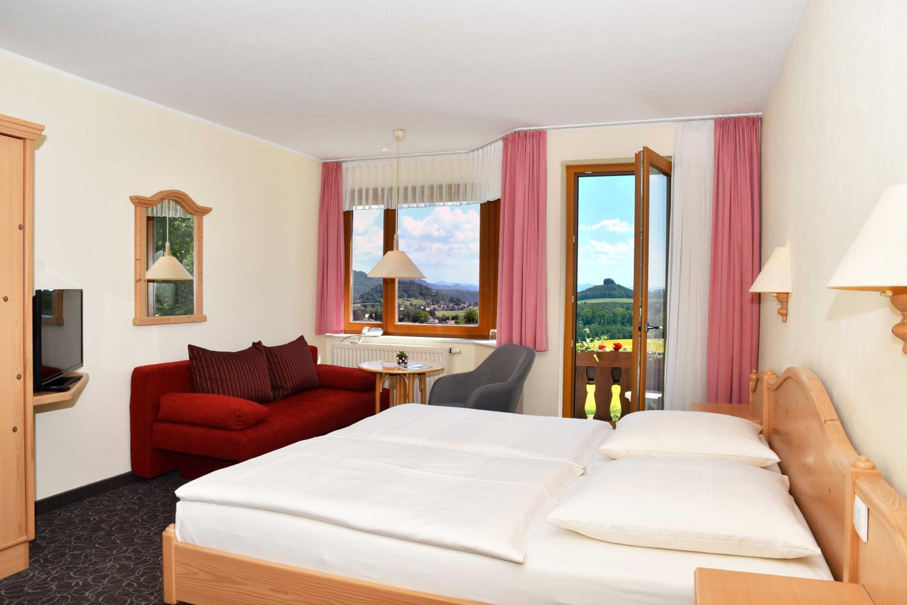 L’emplacement perché sur le mont Wolfsberg avec une vue magnifique sur les paysages superbes de la Suisse saxonne et de la Suisse bohémienne. Les excellents petits déjeuners. Les belles randonnées possibles à pied directement depuis la porte de l’hôtel. La possibilité de prendre le bus à 900 mètres de l’établissement. L’endroit idéal pour un séjour de rêve.