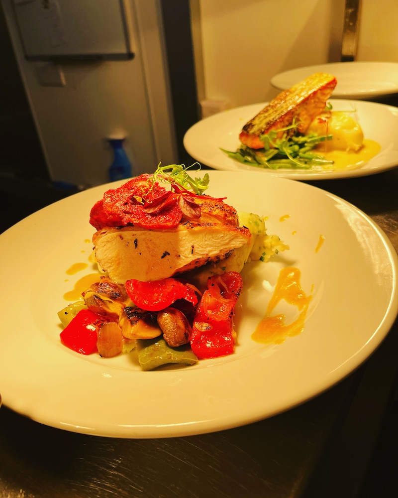Enjoyed the cosiness and decor of the hotel and hospitality of the staff. The quality of the meals is really good and comes on a warmed dish. A very nice stay!