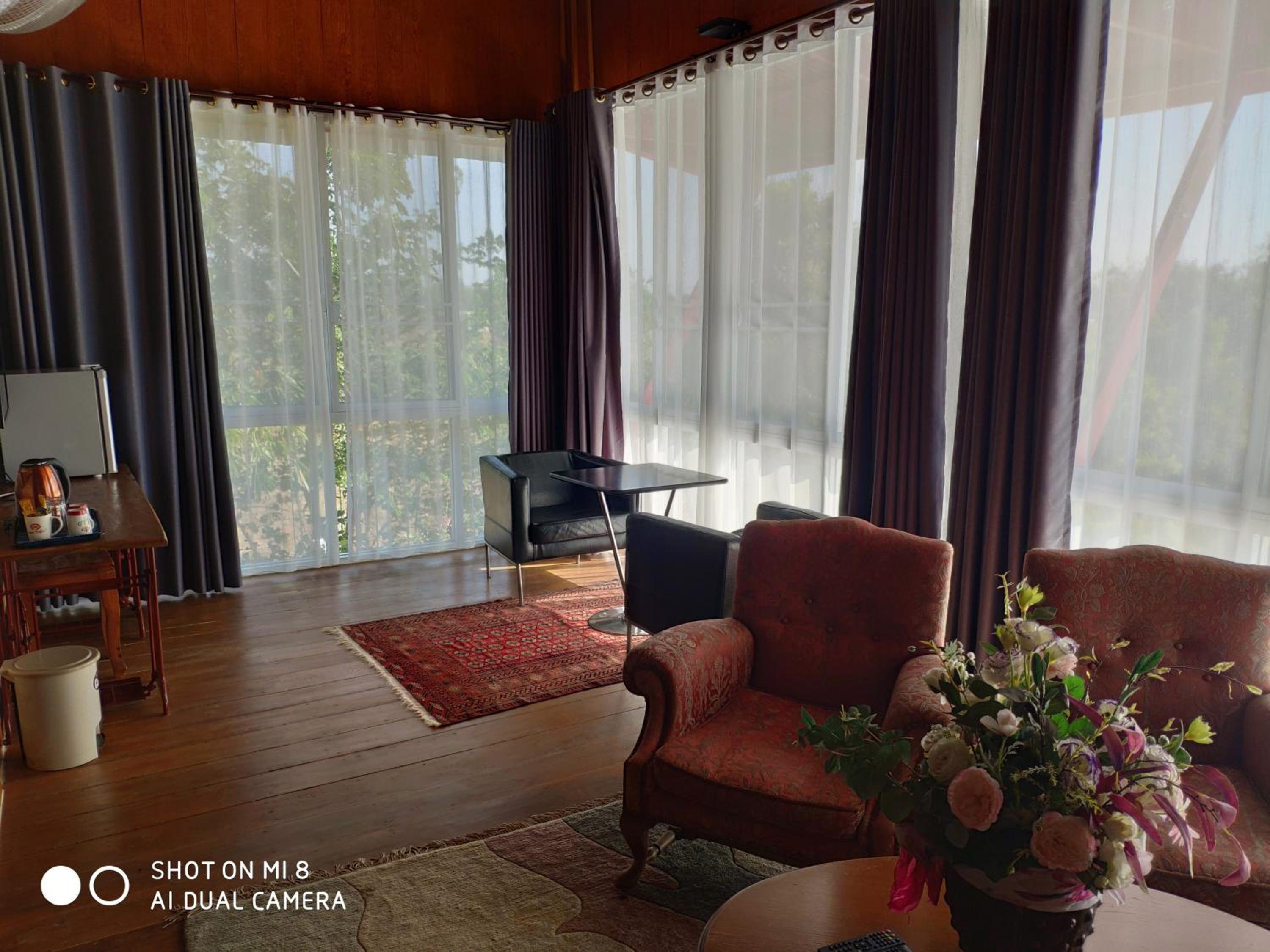 Rummen bekväma,mycket bra säng och sängkläder,nära till centrum för shopping,sjön utanför rummet med fisk som plaskade,lagom regn och ca 30 grader varje dag,nära naturen med diverse odlingar.