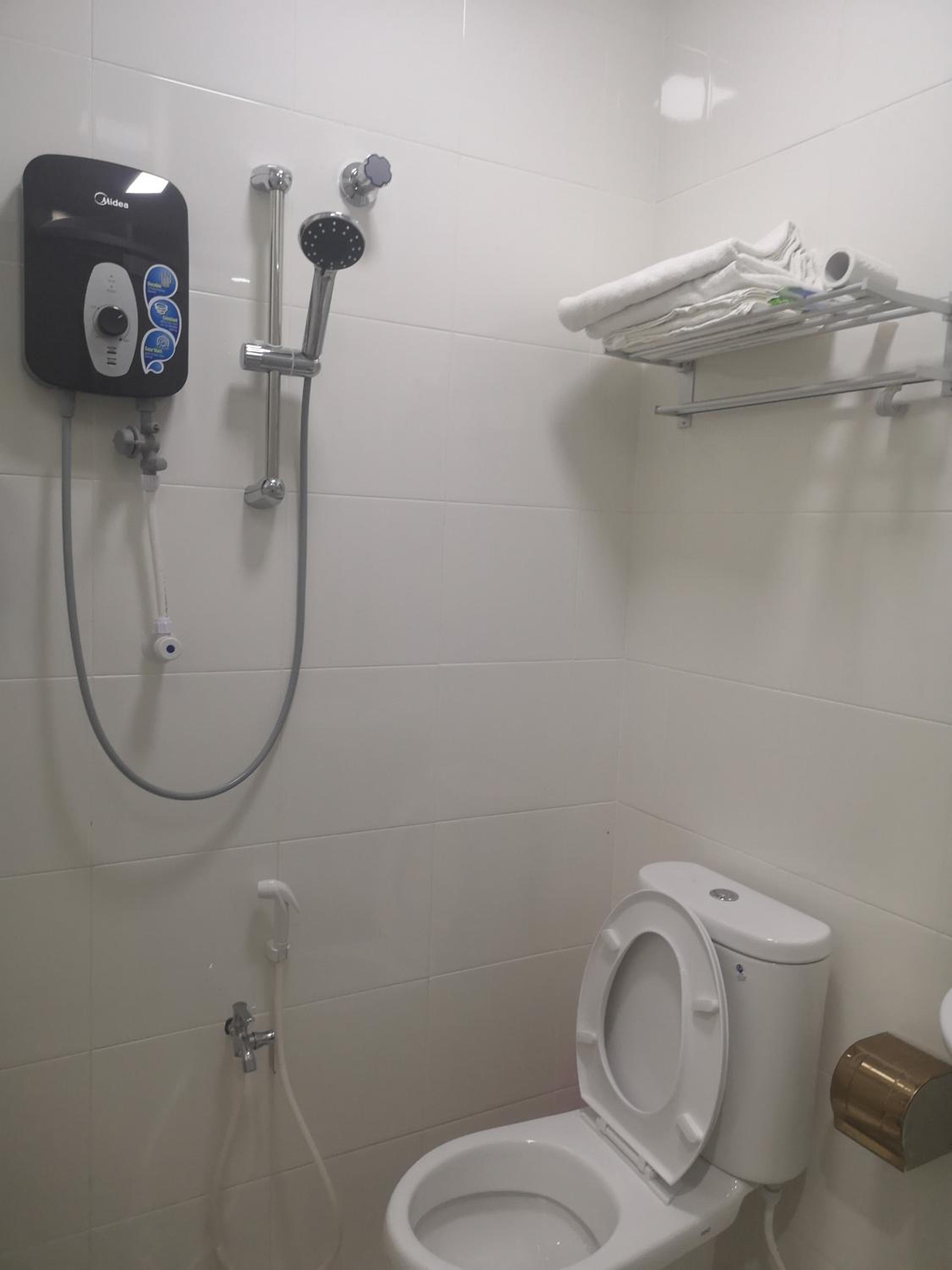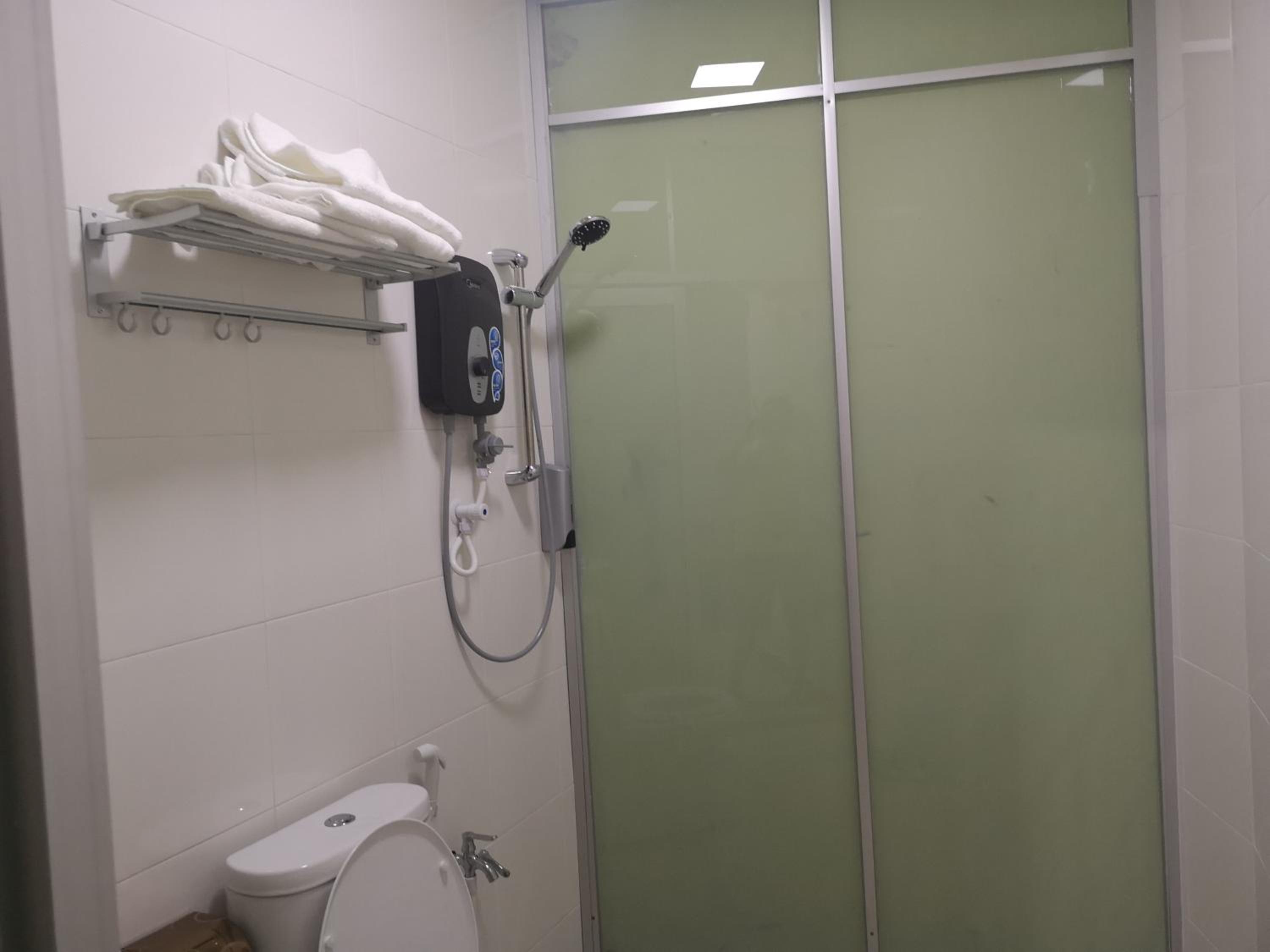 Perlu keluar bilik utk air panas dan menggosok baju serta mendaki tangga yg tinggi. Xsesuai utk warga emas dan oku
