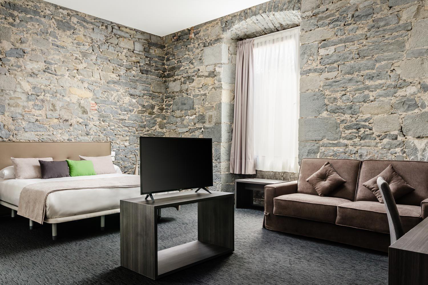 Set in a neoclassical building from the 18th century, our hotel in Orduña seamlessly blends historical charm with contemporary facilities. Formerly an access control point for merchants, the wide terrace now offers a relaxing spot overlooking the archways.