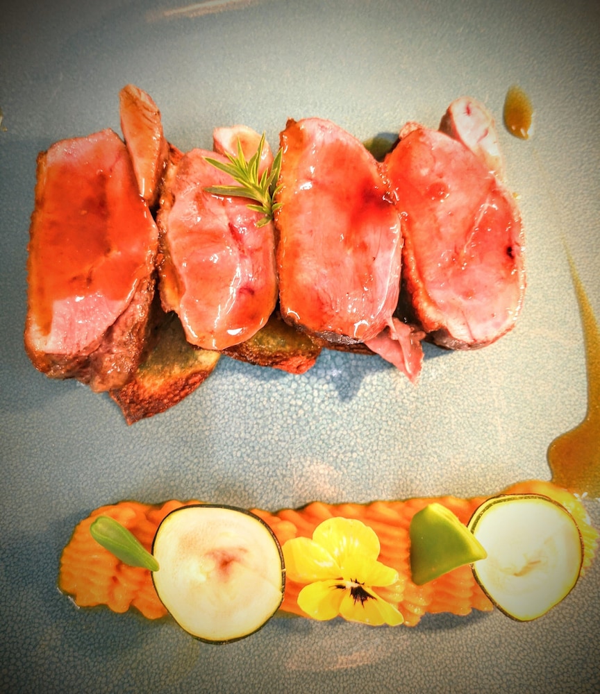 Restaurant sur place le soir, « bistronomique », produits locaux, plats très soignés, goûteux. Le service est impeccable et souriant.