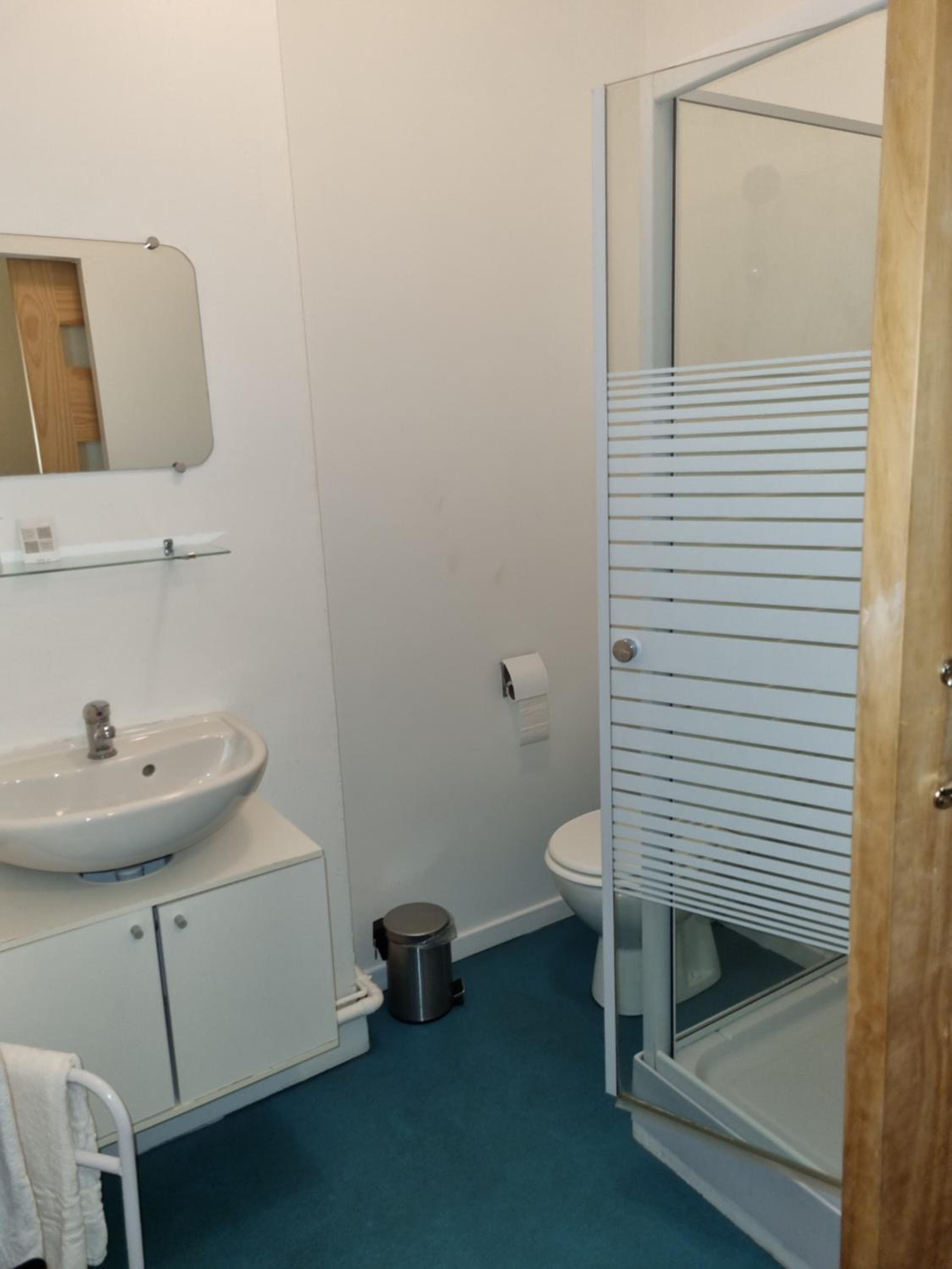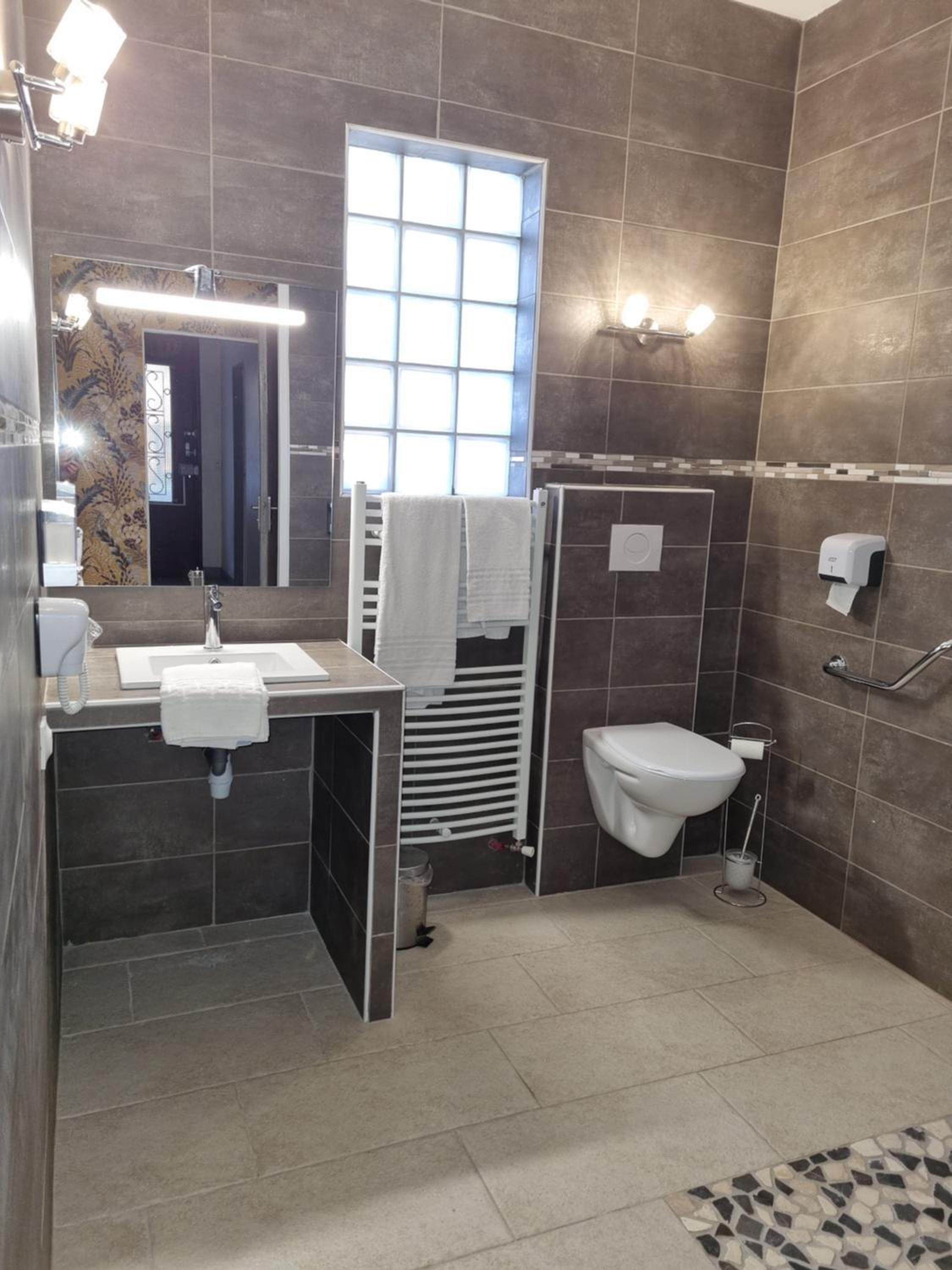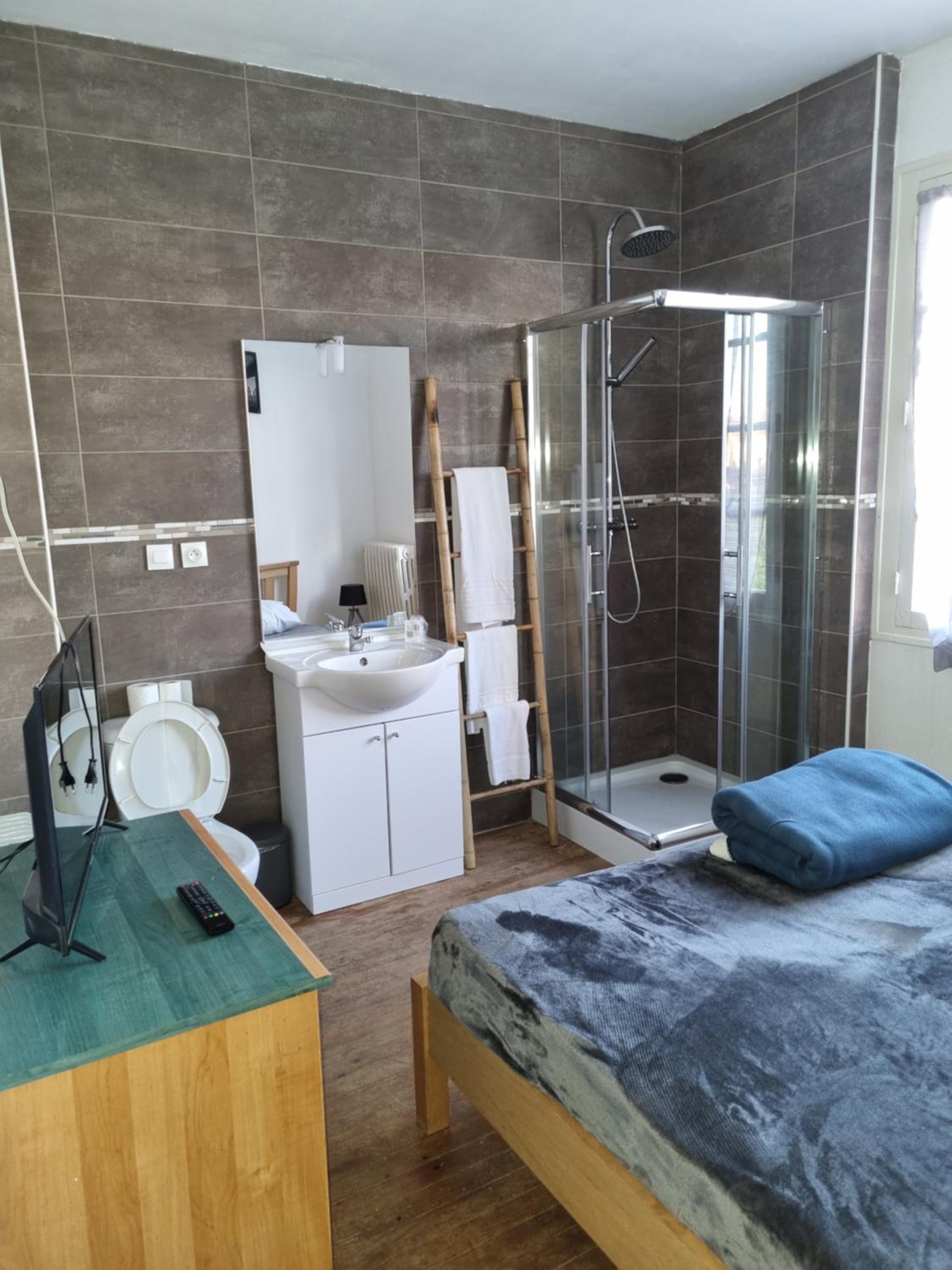 Très jolie salle de bain mais l’emplacement des toilettes n’est pas très pratique pour des grandes jambes