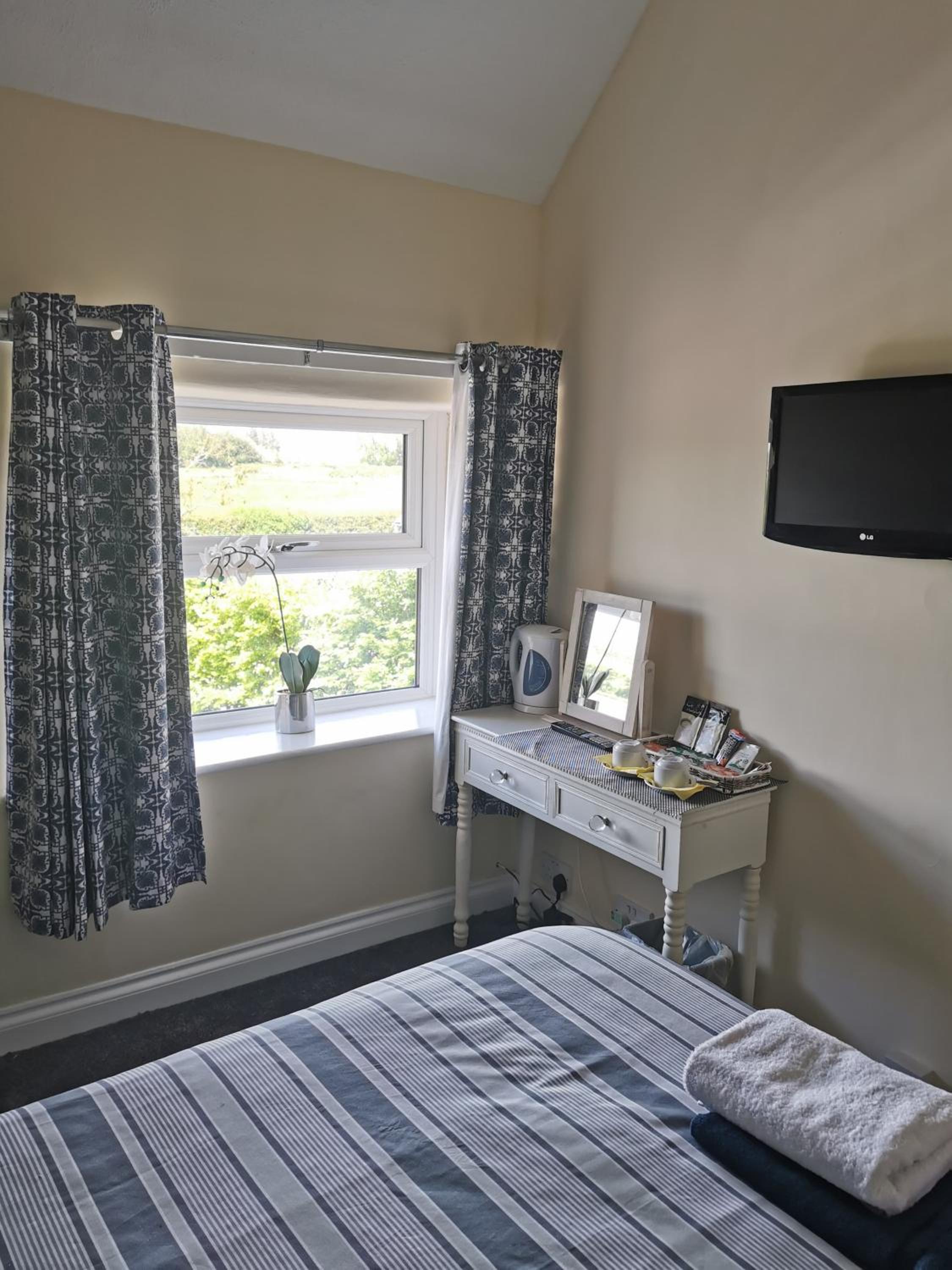 Lovely clean warm room to stay overnight in. The pub was very homely inside with a roaring real log fire. The bar /lounge areas were clean, very nice and it was dog friendly. Lovely staff and the owner was fantastic. I stayed overnight with my 2 dogs who were made a fuss of.