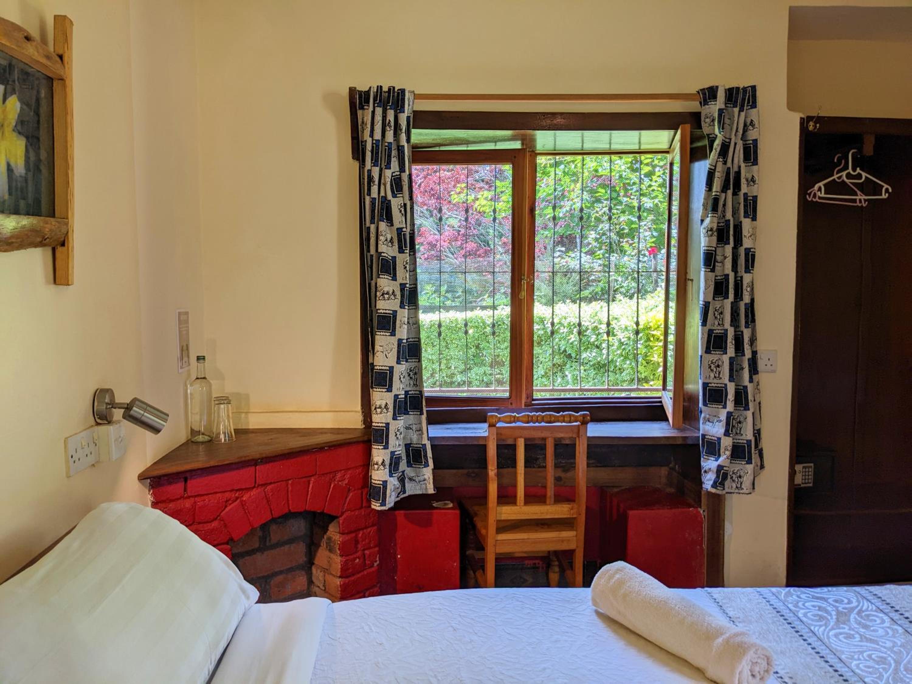 Green large grounds. nice Colonial feel. great staff, good food. help with local tours and large cosy room with a fire place