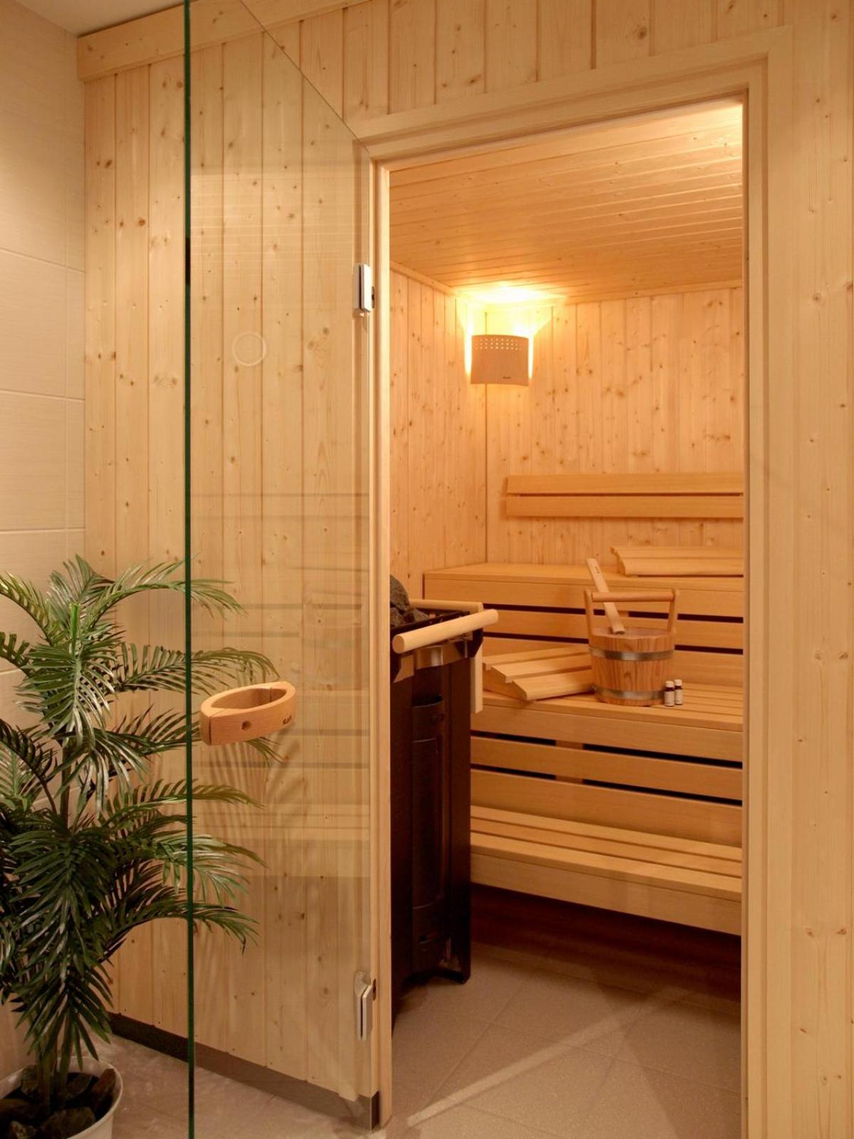 The Sauna does not work . No refrigerator in the room, but on the hall.