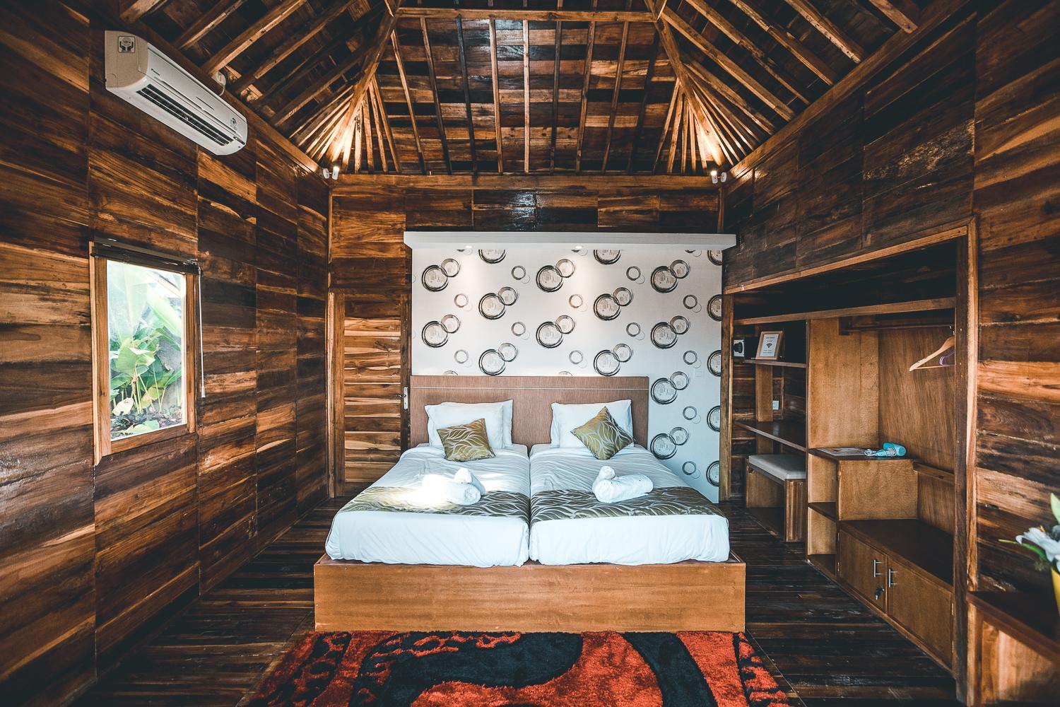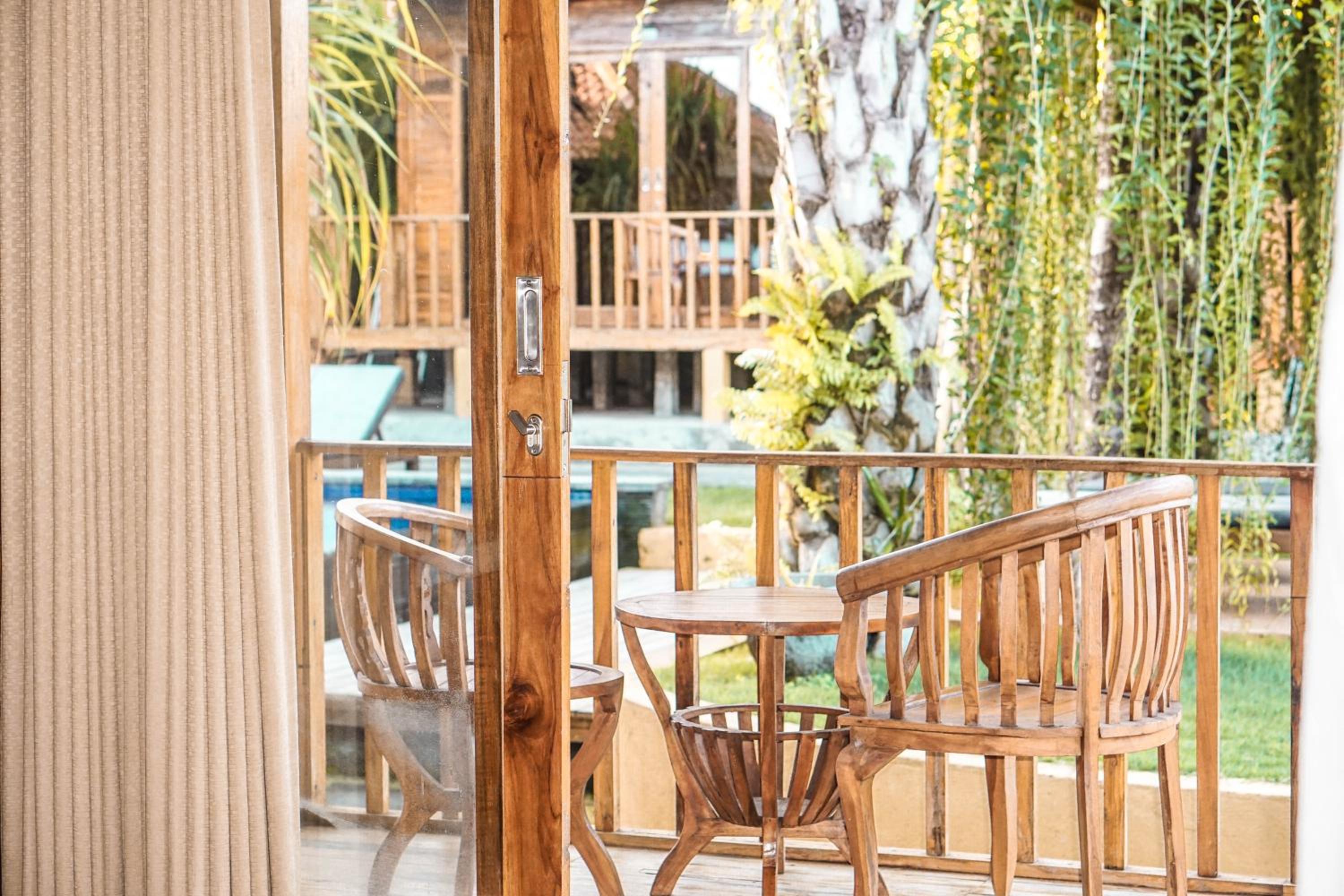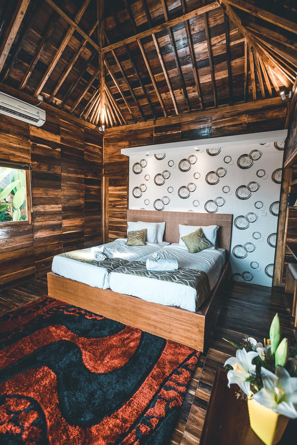 Accueil très chaleureux, piscine magnifique avec 8 bungalows autour. Le logement etait parfait avec sa petite terrasse privative et sa douche extérieure. Nous avons aussi louer un scooter pour 5€ la journée. Très calme la journée et à proximité de plages magnifiques accessibles à pied. Petit dej délicieux