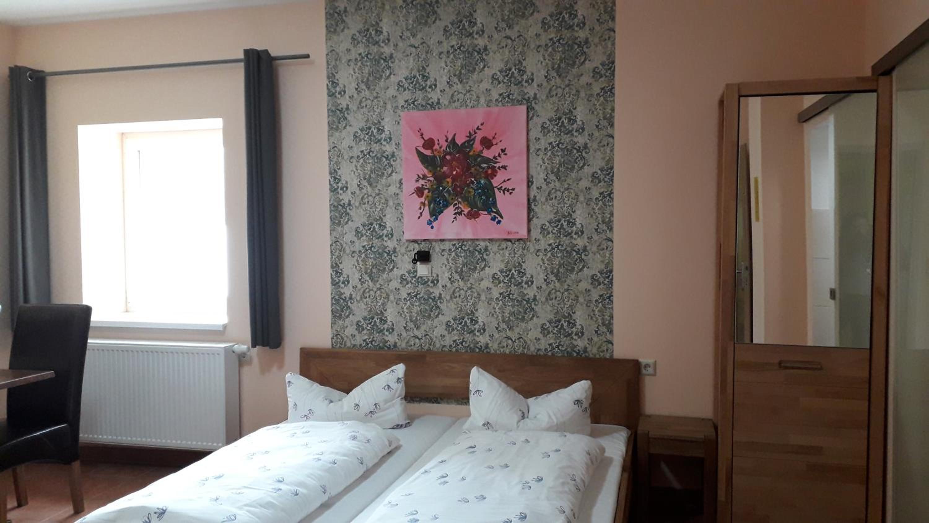 Das Hotel befindet sich direkt rückseitig der Wittenberger Schlosskirche und ist somit ein guter Ausgangspunkt, um zu Tagungen im Stadthaus zu gehen oder die historische Innenstadt zu besuchen. Bett, Dusche, WC vorhanden. Parkplatz auch.
