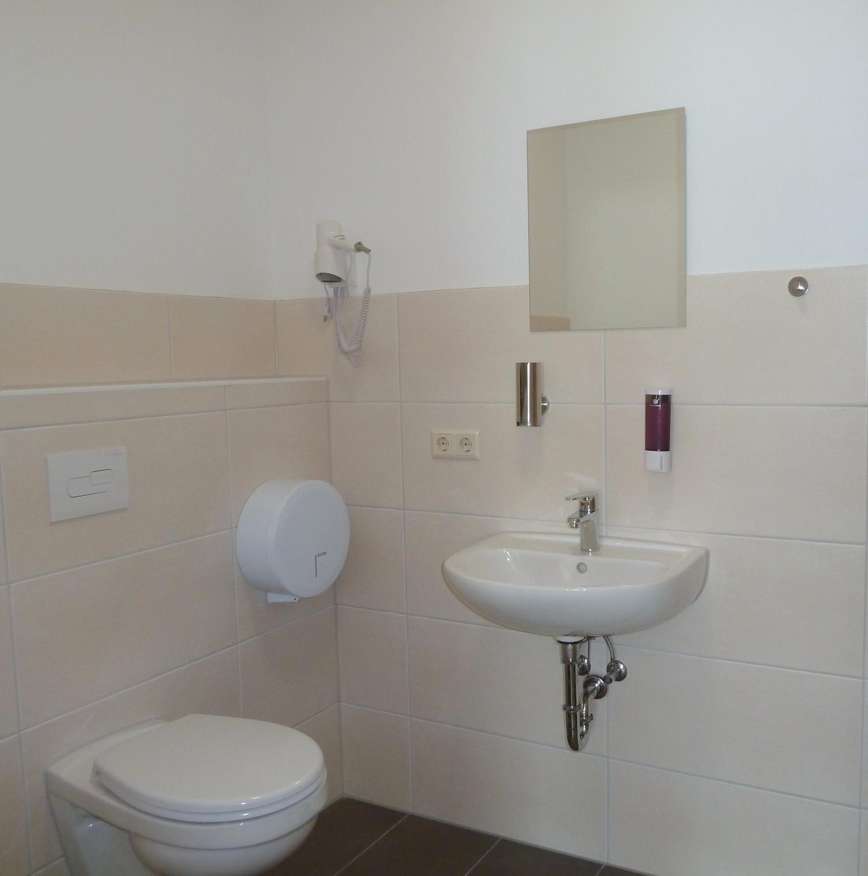 Das Bad grausam, Keine Ablagen, Der Wasserhahn musst alle 4 Sekunden wieder neu gedrückt werden damit Wasser kommt.