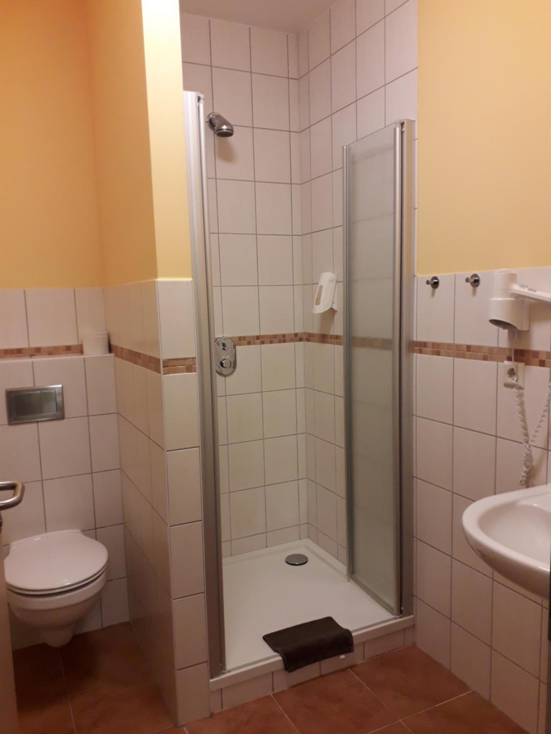 Es ist alles ein wenig in die Jahre gekommen. Eigentlich habe ich an ein Hotel den Anspruch, dass es zumindest keine gelben Wände hat. Das ist hier leider nicht der Fall. Unser Zimmer befand sich im Erdgeschoss, mit direktem Blick auf den Parkplatz, über den auch alle Wege aus dem Hotel heraus herausführen. Privatsphäre gleich null. Die Türen sind sehr dünn. Wenn nachts jemand ankommt, hört man das also auch direkt. Wenn man in Wittenberg nur schlafen will, reicht’s. Aber mehr als ein, zwei Nächte definitiv nicht. Die Zimmer sind auch nur sehr spartanisch eingerichtet. Schrank: Fehlanzeige. Aber es gibt leider in Wittenberg manchmal Zeiten, an dem man kein anderes Hotel bekommt…. Sonst gibt es definitiv bessere Adressen in der Stadt.