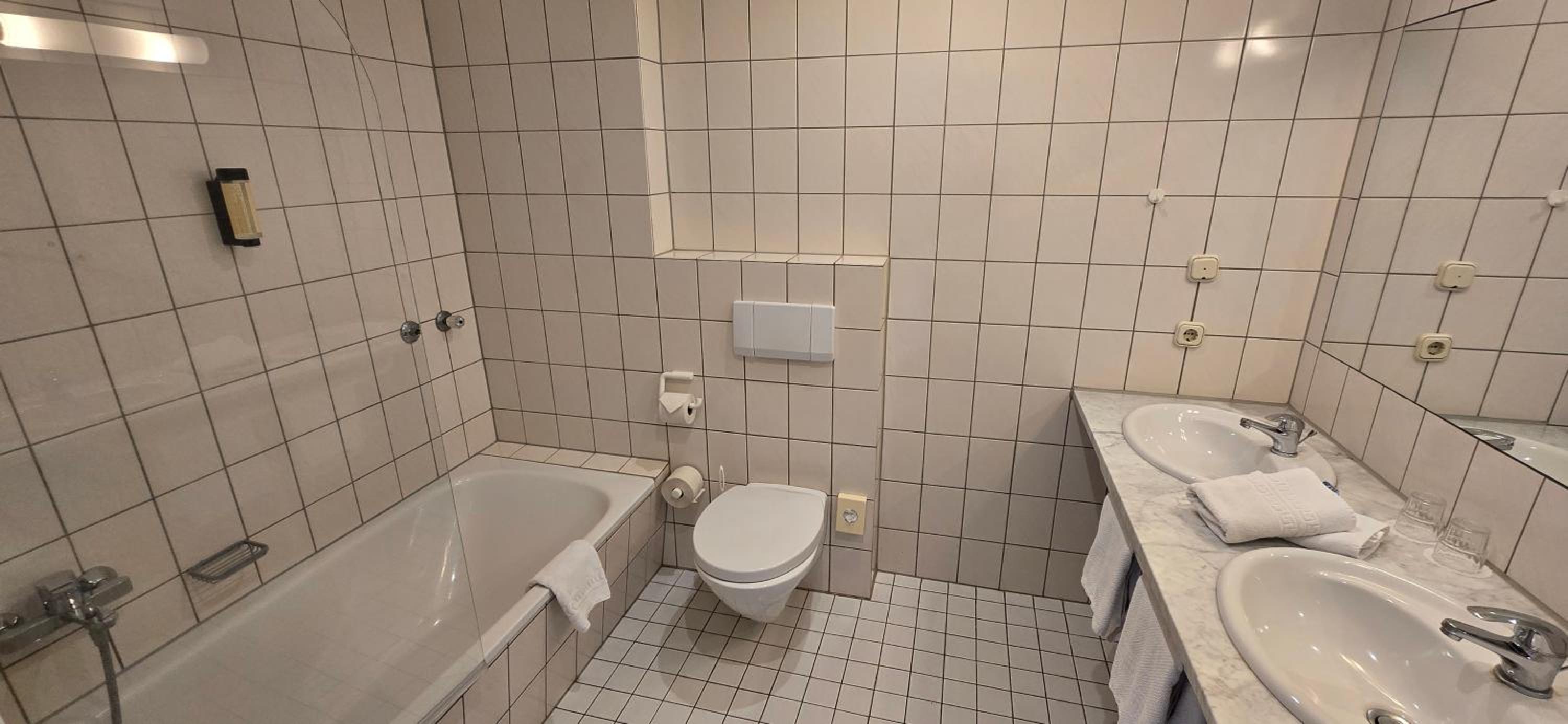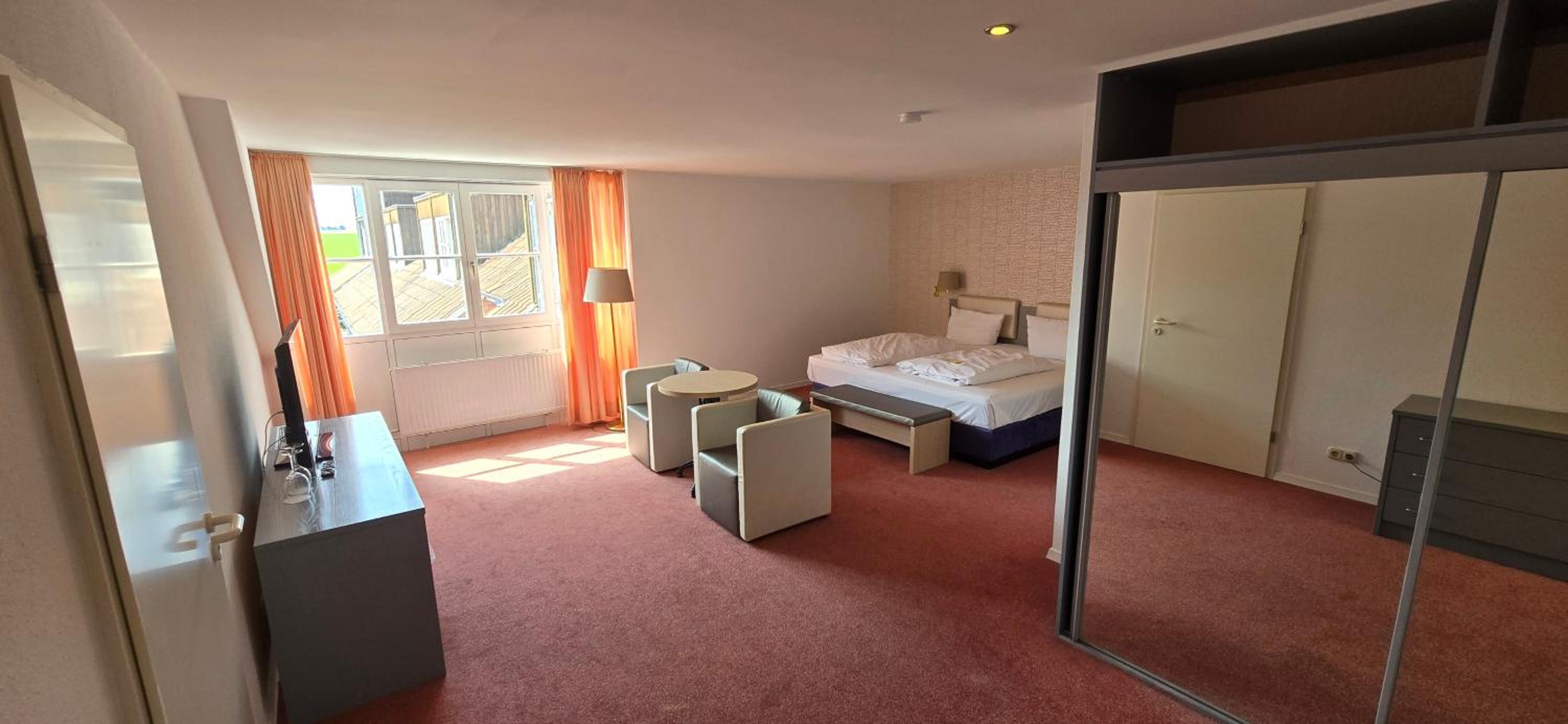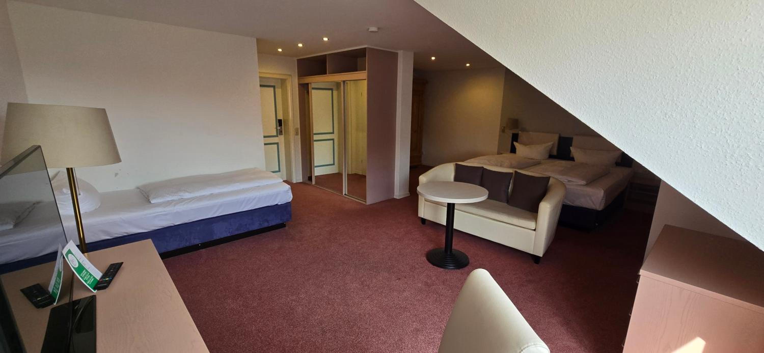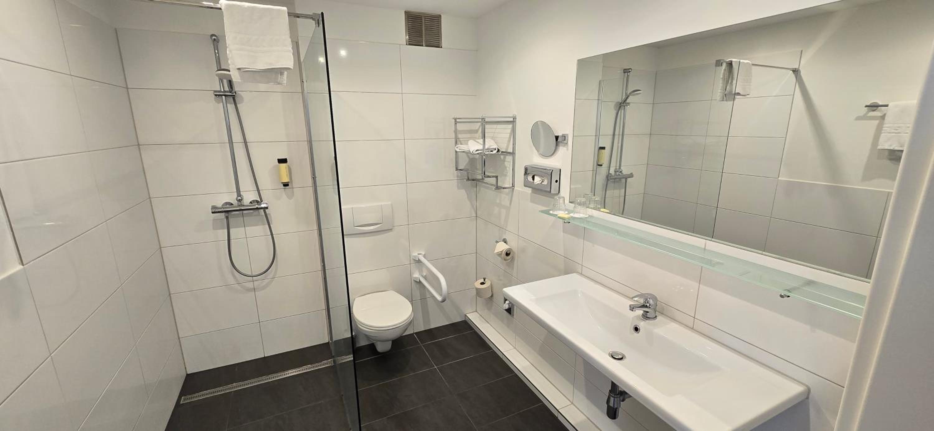 Wir haben das Hotel für eine Zwischenübernachtung genutzt. Dafür war die Lage und das Hotel perfekt. Mein Vater ist auf einen Rollator angewiesen, ich habe dieses bei der Buchung angegeben, er hatte dann ein großes komplett barrierefreies Zimmer im EG vermutlich ein kostenloses Upgrade Vielen Dank!, der Frühstücksraum war barrierefrei zu erreichen, das Frühstück gut: leckeres Bircher- Müsli. Preis- Leistung war damit schwer in Ordnung. Zwei schöne Spaziergänge gemacht, deswegen Wellness Bereich nicht getestet.