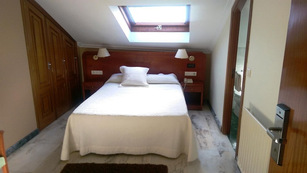Least comfortable bed we have slept on so far in walking the Camino. We failed to ask for two beds pushed together and instead had a lumpy uncomfortable double. Also had one of the rooms facing the plaza. Pretty noisy at night. And the raised bathroom shower stall with no lip to prevent water from flooding the bathroom and the hallway. And the rather stingy breakfast....