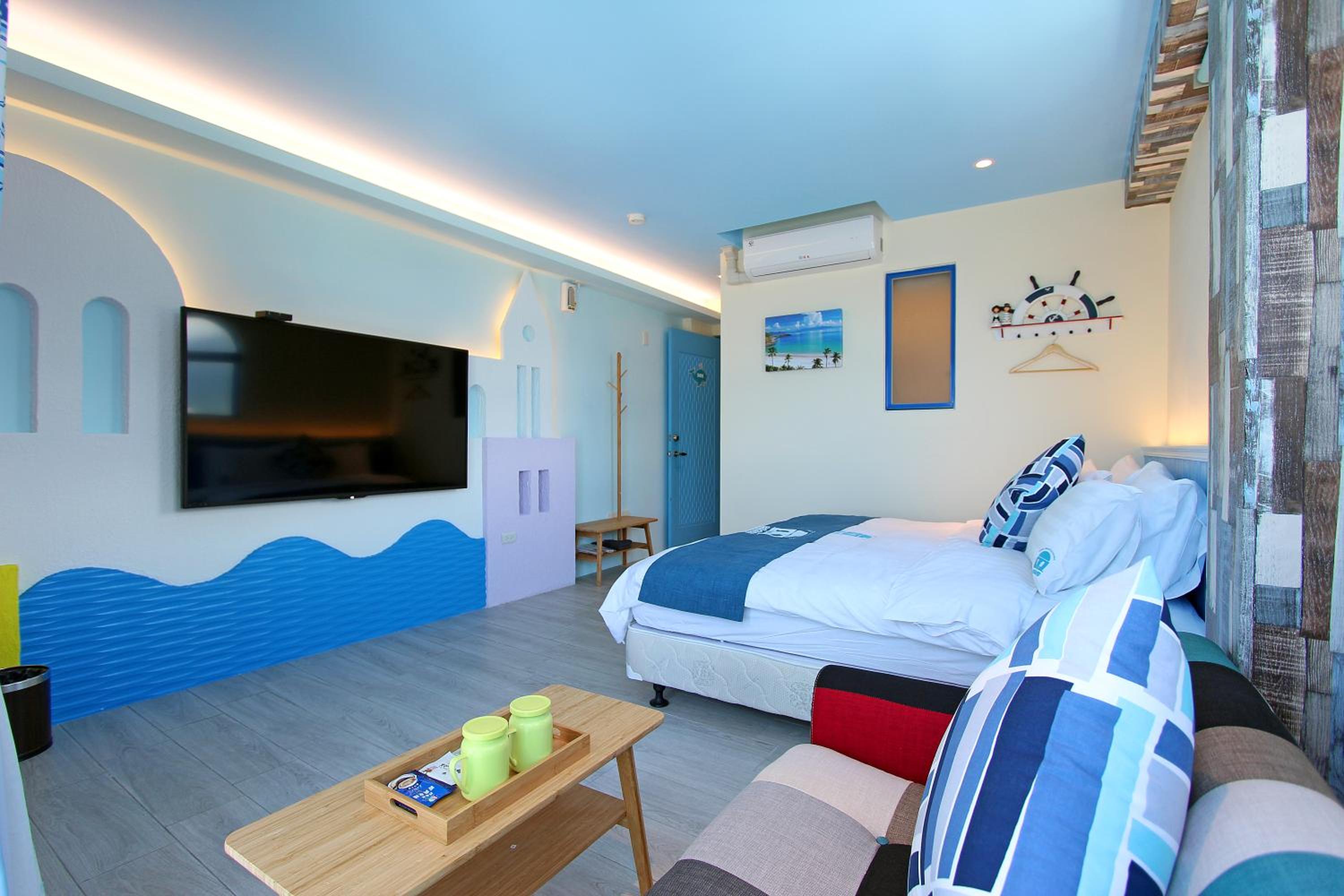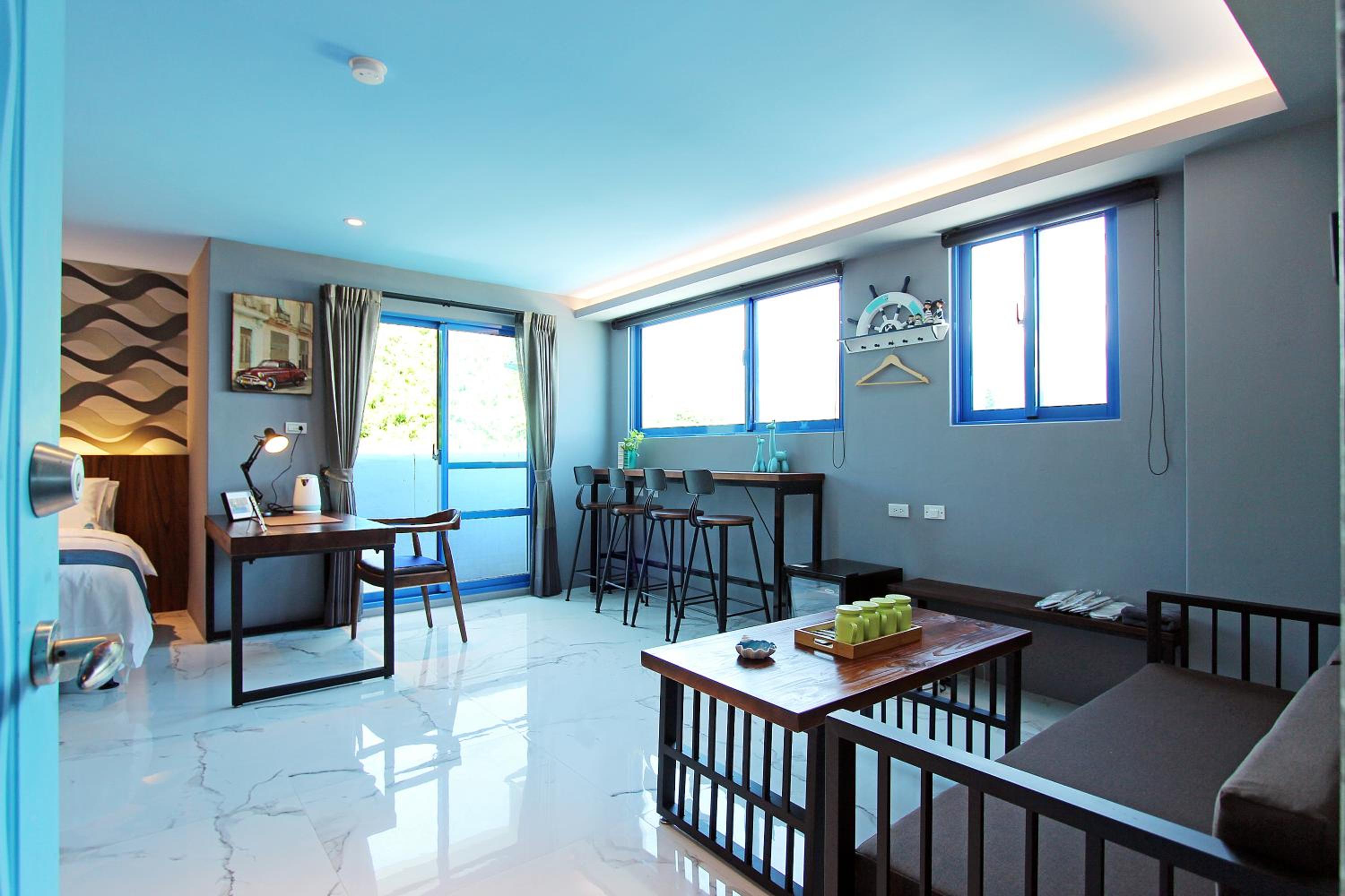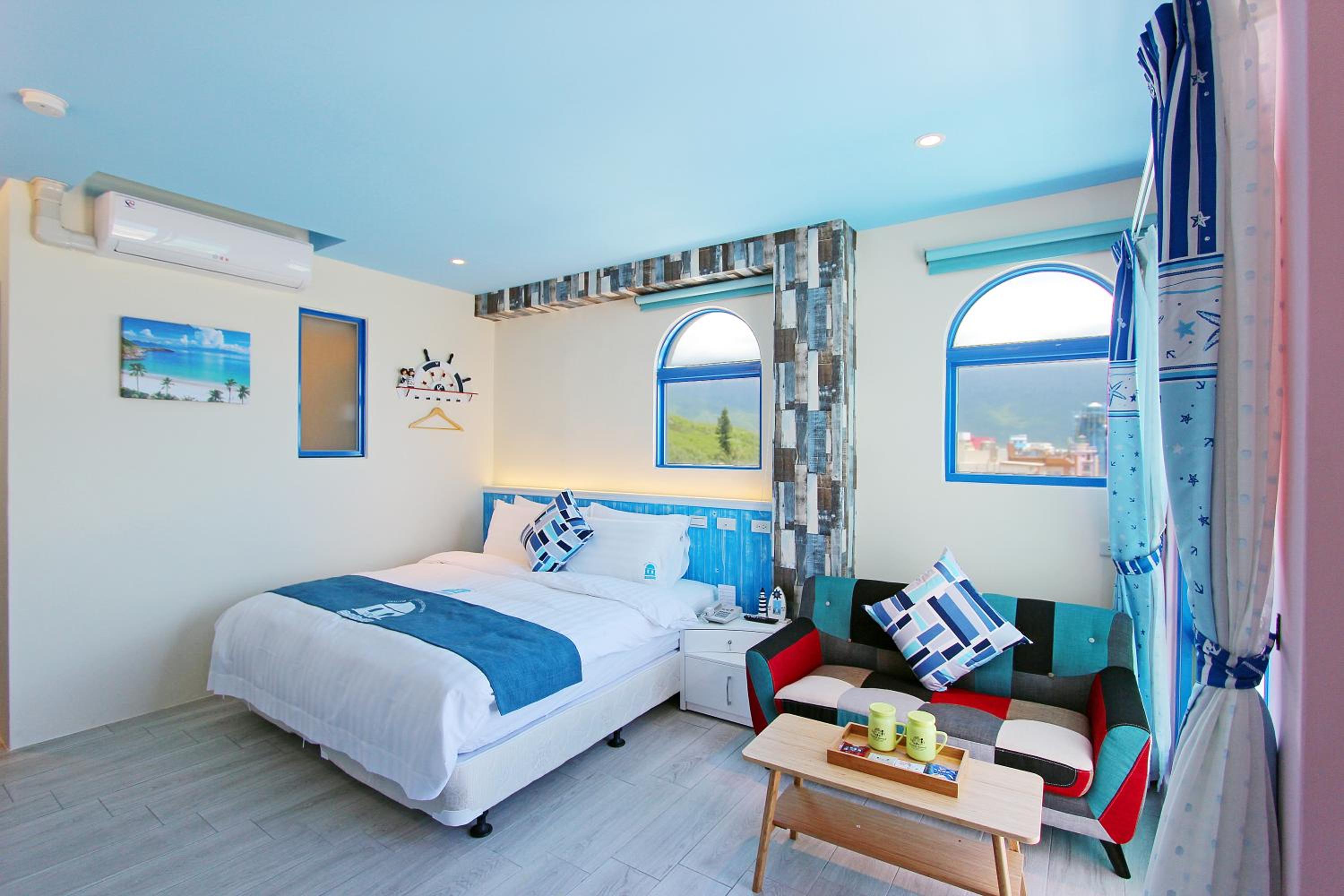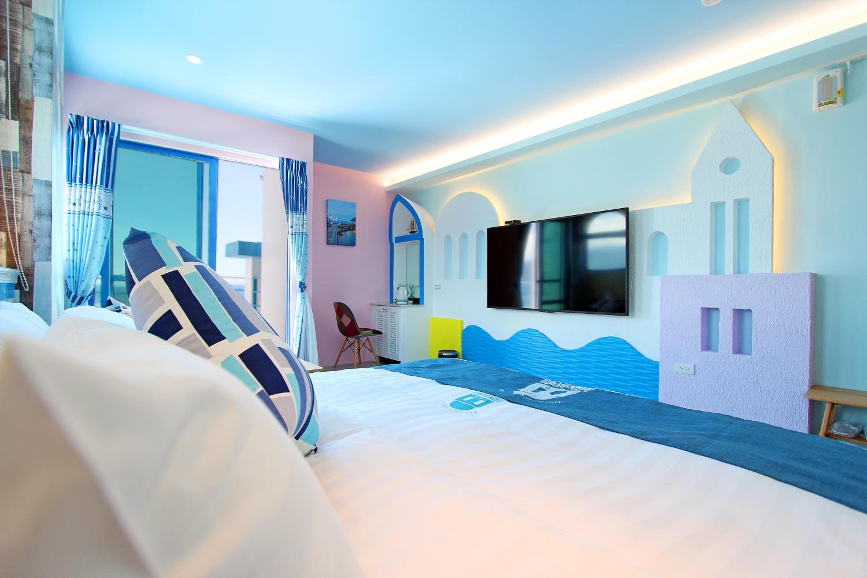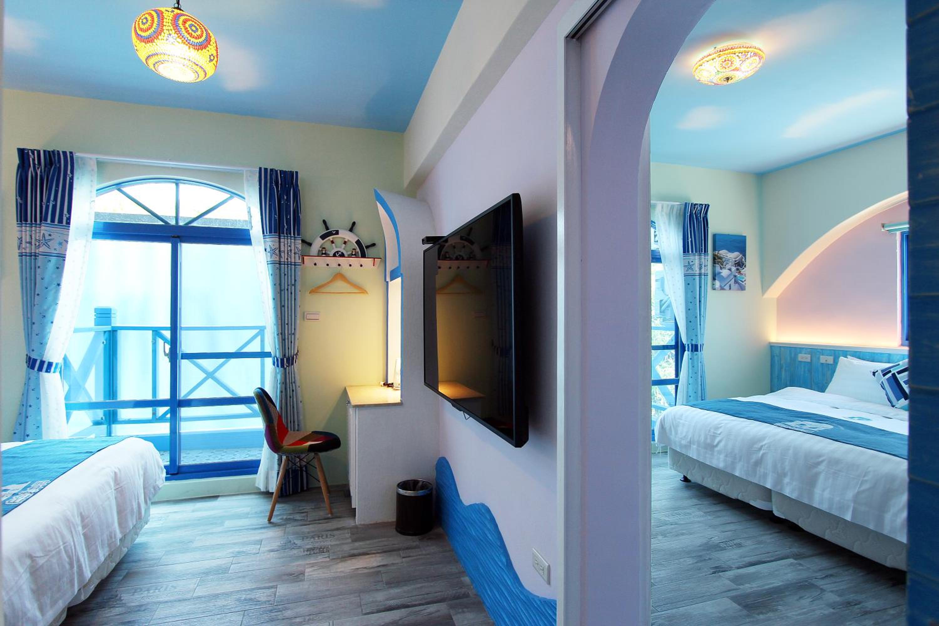We are a family of four spent two nights in two rooms. Both rooms have their own individual decoration and very cute! The rooms are clean and facing the beach. A very short path right outside the hotel leads to the beach, boardwalk and recreation area. Although the hotel does not supply breakfast, it supplies snack and water bottles. A few restaurants for lunch and dinner within 5 minutes walk, including a well known no-menu (Mu Min) restaurant that requires advance reservations. There is also a Family Mart convenience store within 5 minutes walk. Overall, we had an enjoyable stay.