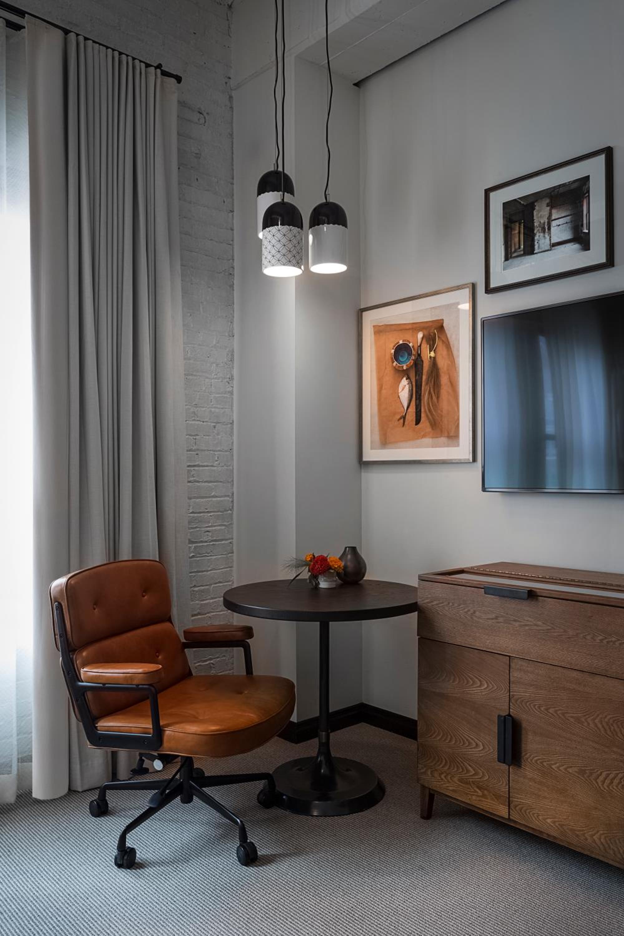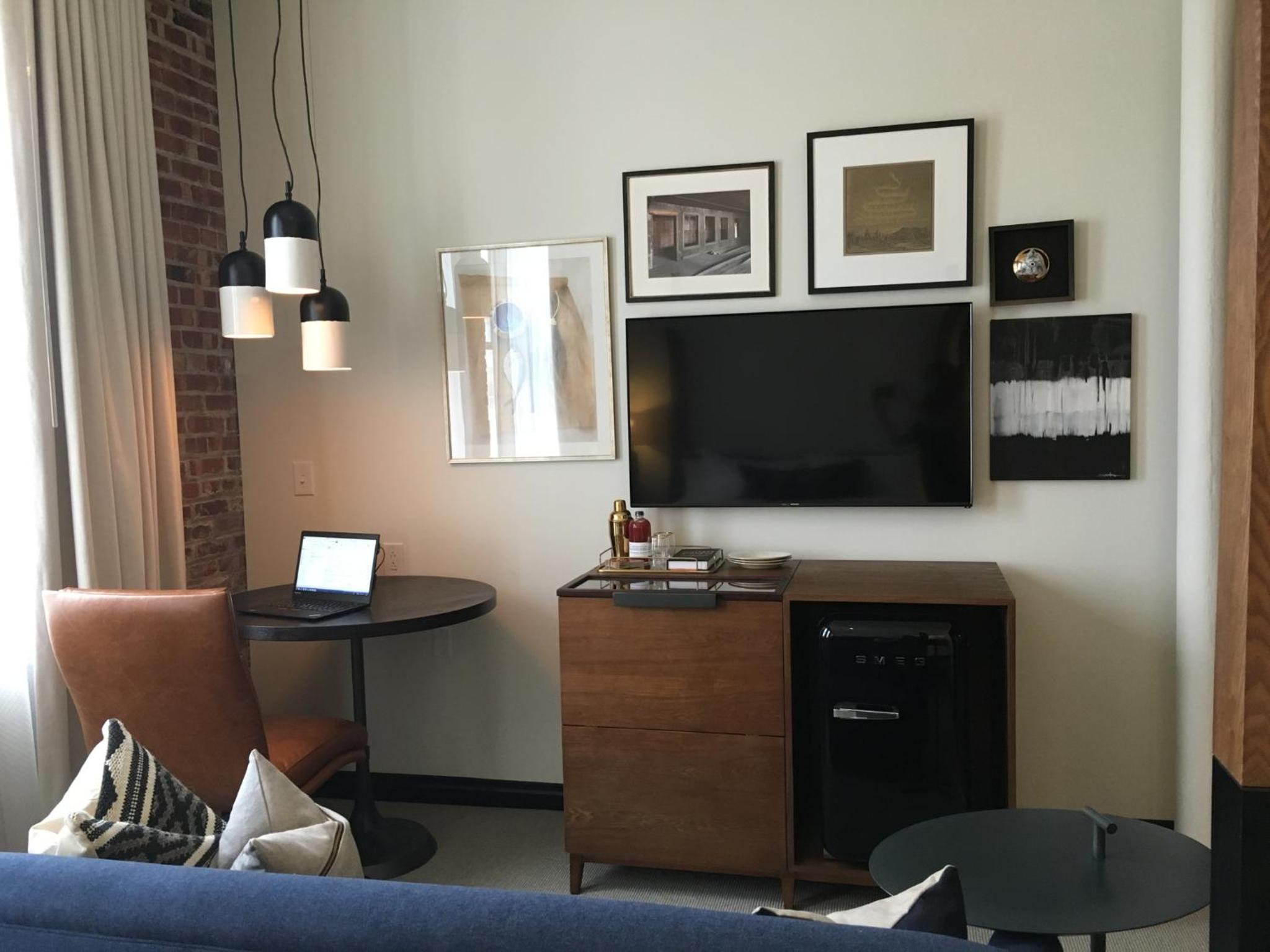my husband and I stayed at the Crossroads Hotel for our wedding night and hosted an event at Percheron the next day. We stayed in a Crossroads King room. The room appears small online, but was the perfect size for 1-2 people - we did not feel crowded at all. The room was very comfortable across the board - clean bedding, tall shower with good water pressure, warm / non-harsh lighting options, you name it. The atmosphere was boutique, quiet, and exclusive - you can guarantee you'll get a personalized experience and feel like you're having night out in the city.
