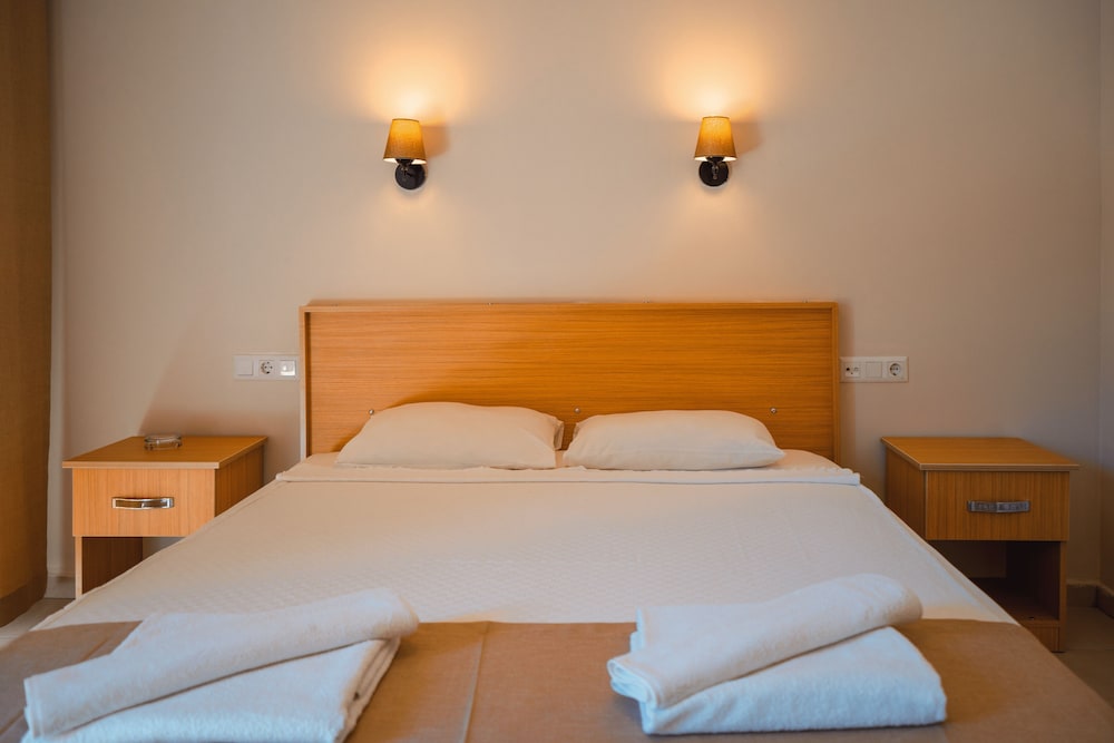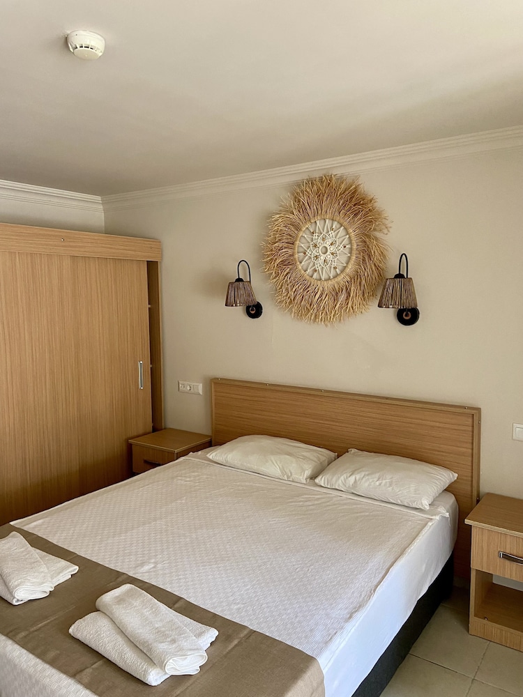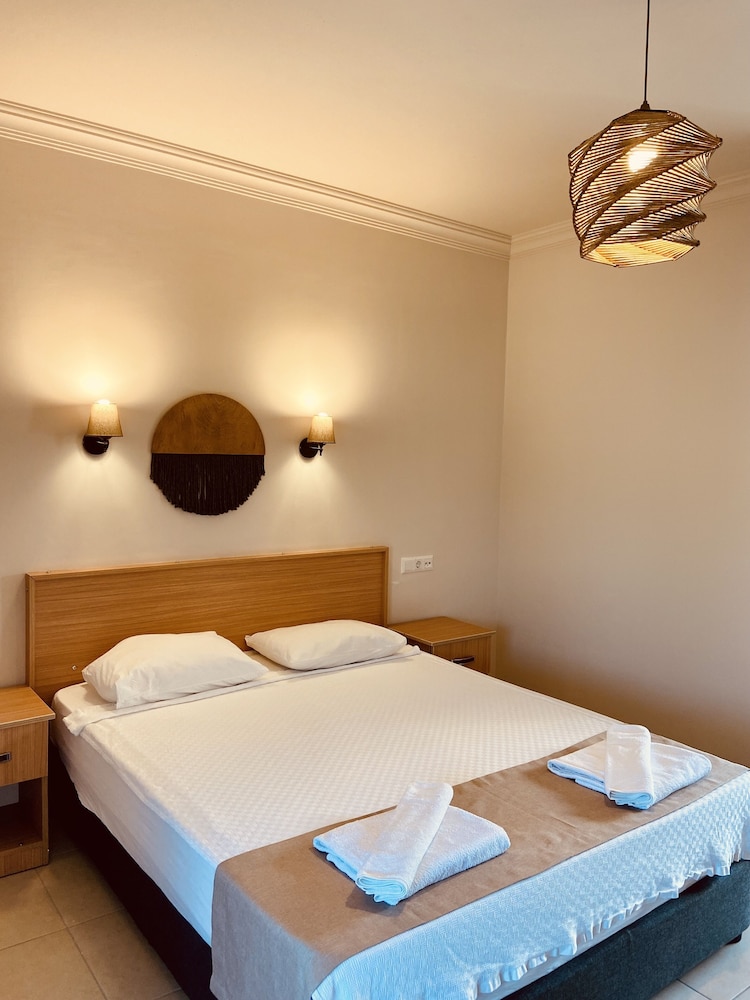 Konumu iyi plajın yanında , gezilecek apollon tapinagina antik kente yürüyerek gidebilirsiniz yürüyüş yolu plaj kenarında genel konumu güzel ,otele çalışanları guleryuzlu iyiler genç tayfa genelde , ama otelin içi sadece fotoğraflar da güzel gözüküyor biz iki gün 3 kişilik basic odada kaldık yataklar o kadar rahatsız ki nefes alsan gıcırdıyor ve uyutmuyor calisana söyledik teknik gelecek dedi ama gelmedi zaten yatağı değiştirmeden duzelecek birşey değil , üst katın yürüyüş sesini falan direk oda da duyuyorsunuz , tuvalet banyonun kapisi bozuk kapanmıyor, tv çalışmıyor. Otelin kahvaltısı yakındaki beache bağlı indirim otel müşterilerine oluyor ama kahvaltısi berbat peynir zeytin çay kahve yeşillik oluyor ve yumurta patates tarzı sıcak birşeyler olmuyor , çayi kahvesi de çok kötüydü ,deniz suyu sıcak sig baya bir derinleşmiyor güzel o yönden ama bulanik dalgalı…