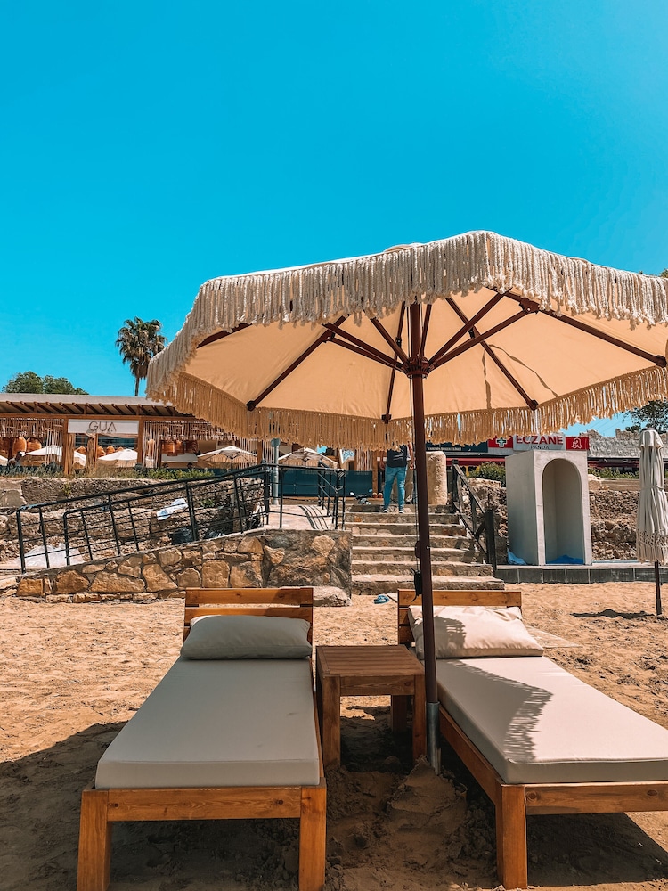 Otelin plajı çok güzel ve keyifliydi. Görsel olarak güzel bir butik otel olmasına rağmen, odalar biraz eski ve bakımsızdı. Örneğin banyo-lavobo küçük idi, sonradan boyanmış, boyalar kalkmaya başlamıştı. Televizyon, klima vs eski idi, klima çok sesli çalışıyordu. Resepsiyondaki hanımefendi çok güleryüzlü ve anlayışlıyken restaurant bölümünde güleryüz eksikti diyebilirim. Kahvaltı çeşitliliği de biraz zayıftı. Lakin şunu da belirtmeliyim ki otel fiyat performans otelidir.
