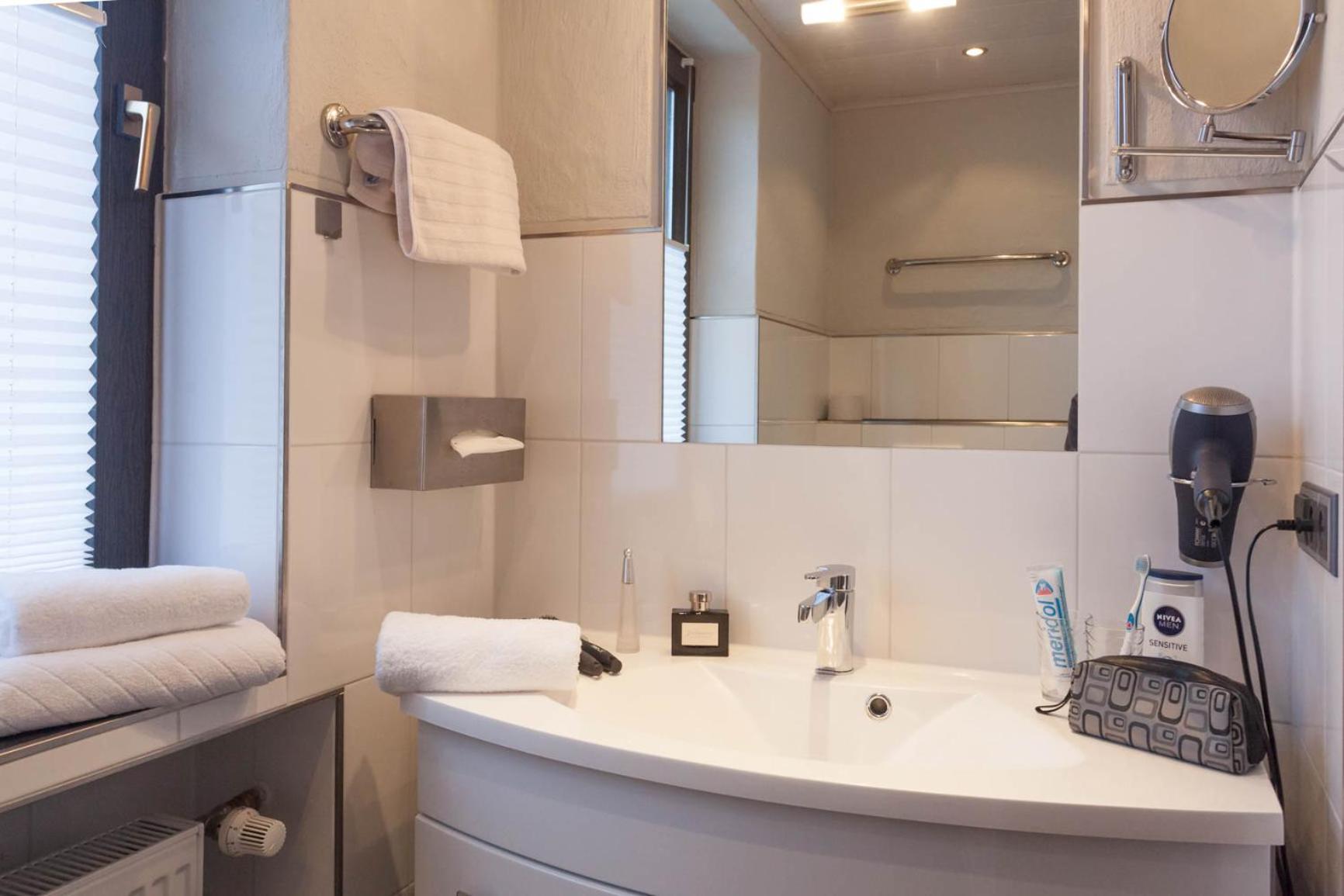 nur eine Kleinigkeit - es gab leider keinen Fön im Bad und am Waschbeckenbereich wären Handtuchhaken oder Halter sehr hilfreich..... dies könnte man ja mit wenig Aufwand nachrüsten