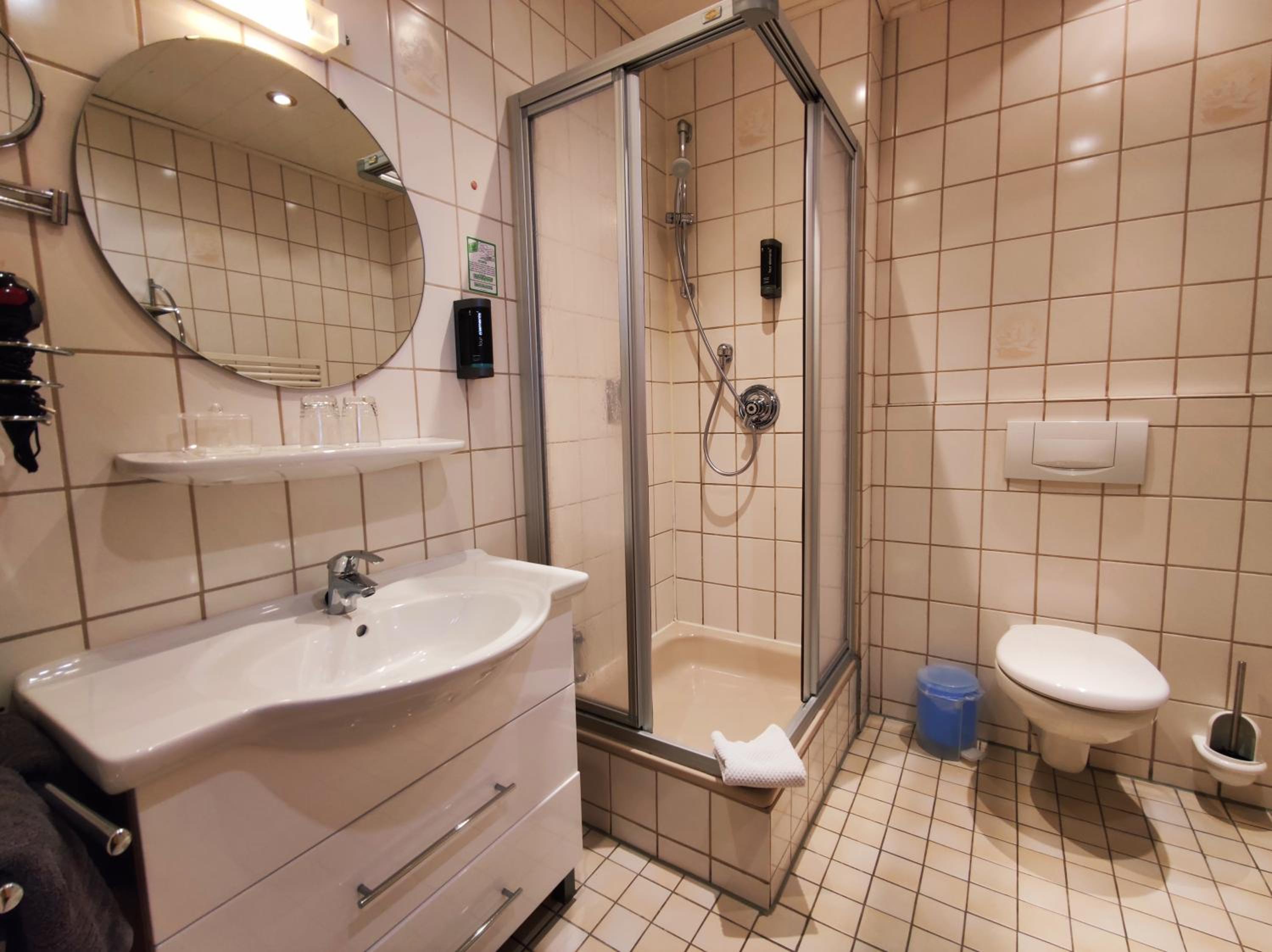 Bei unserer Ankunft wurden wir sehr herzlich und freundlich empfangen. Das Zimmer war sehr geräumig und stilvoll modern eingerichtet. Das Bad hatte große Bewegungsfreiheit und sanitärtechnisch auf dem aktuellen Stand. Frühstück war sehr lecker, ausreichend und ansprechend angerichtet.