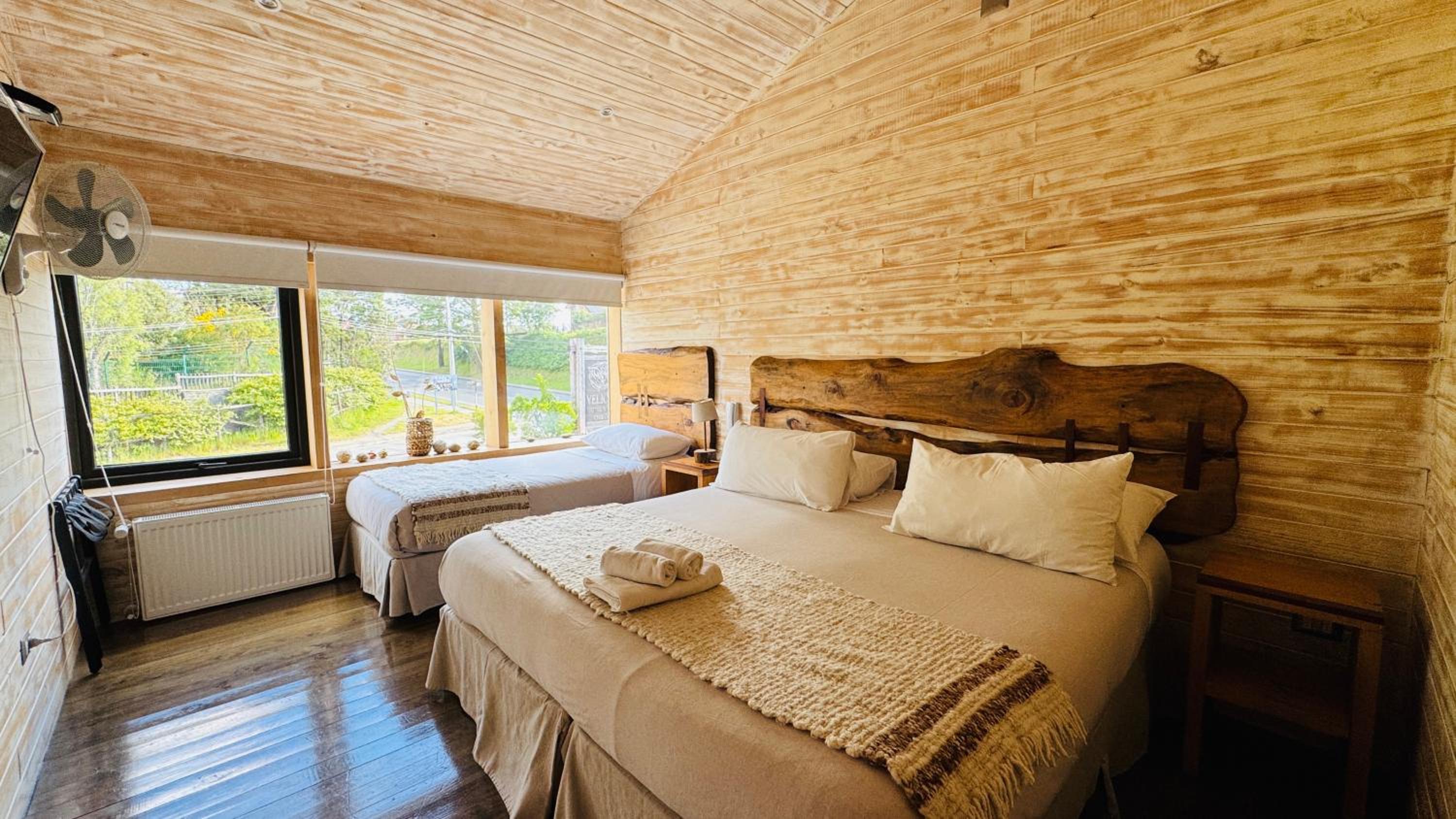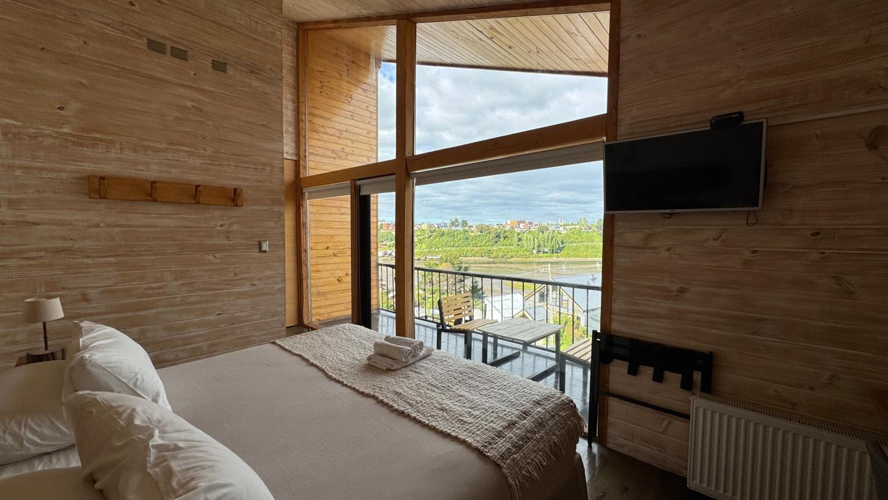 Hotel & Cafe Veliche was wonderful. Overlooking the bay just a few minutes walk from the palafitos. Easy parking and the checkin was easy. Everyone on the staff was pleasant and helpful. We were there for three nights and enjoyed every minute. English speaking staff always available. Food was consistently excellent. Guests and locals kept the cafe busy. Outdoor patio overlooking the bay; especially nice at high tide on a warm day. The hotel looks new and the room was spacious with sloped ceilings and large windows. The bathroom was small, but clean and functional. Good water pressure and plenty of hot water. Close to busy road, but no problems sleeping. Bed was comfortable and we were able to sleep late without any problems. Traffic in Castro is horrible so the restaurant was much appreciated. There are several small cafes nearby in restored palafitos. We were able to fully relax and recharge after 6 weeks in Argentina and Chile. Definitely one of the best stays of our trip.
