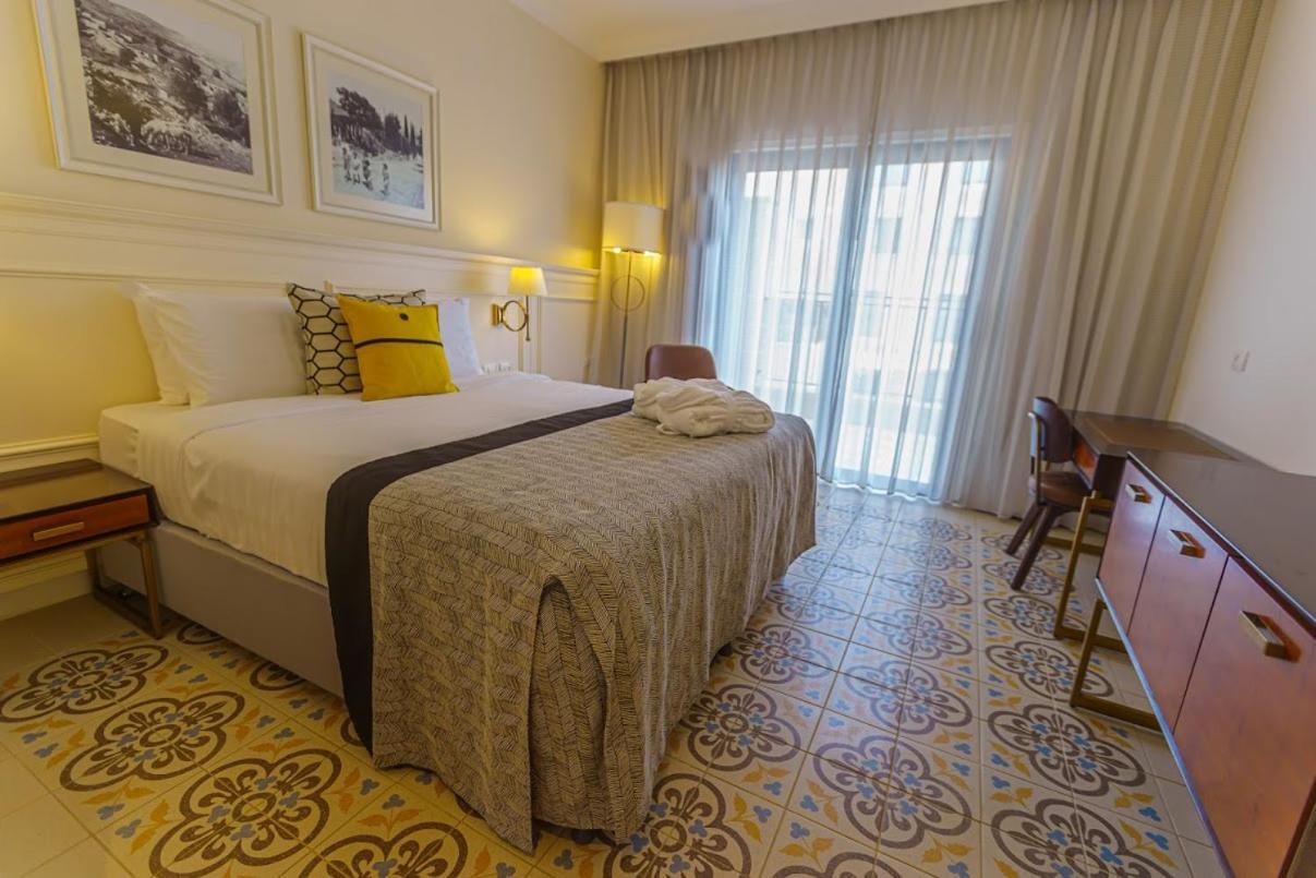 חדר: החדר שלנו היה סה"כ בסדר. היו פרטים שהפריעו לי אסטטית. למשל: בכיור האמבטיה הדביקו את הוונטיל עם דבק כחול שבלט מאוד, ולי, באופן אישי, מאוד הפריע. מסגרת המקלחון חלודה ועם אבנית, זכוכית המקלחון עם כתמי מים. קירות האמבטיה צבועים בשליכט שצבר אבק. כתמים על וילון החדר