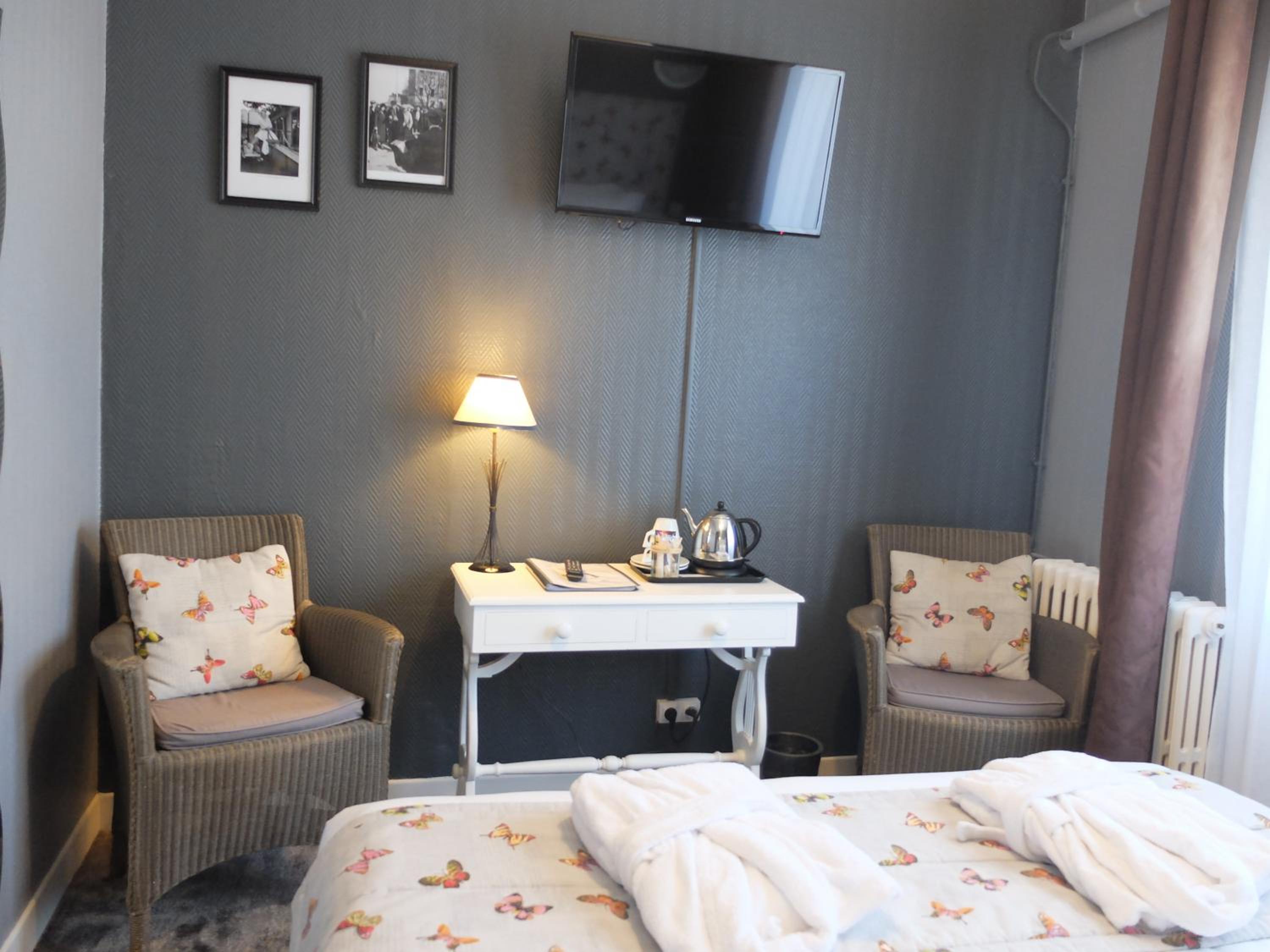 Extrêmement serviable et arrangeant. Chambre propre et agréable. L’hôtel est idéalement situé sur la place de Montreuil, animée le soir et vivante dès le matin.