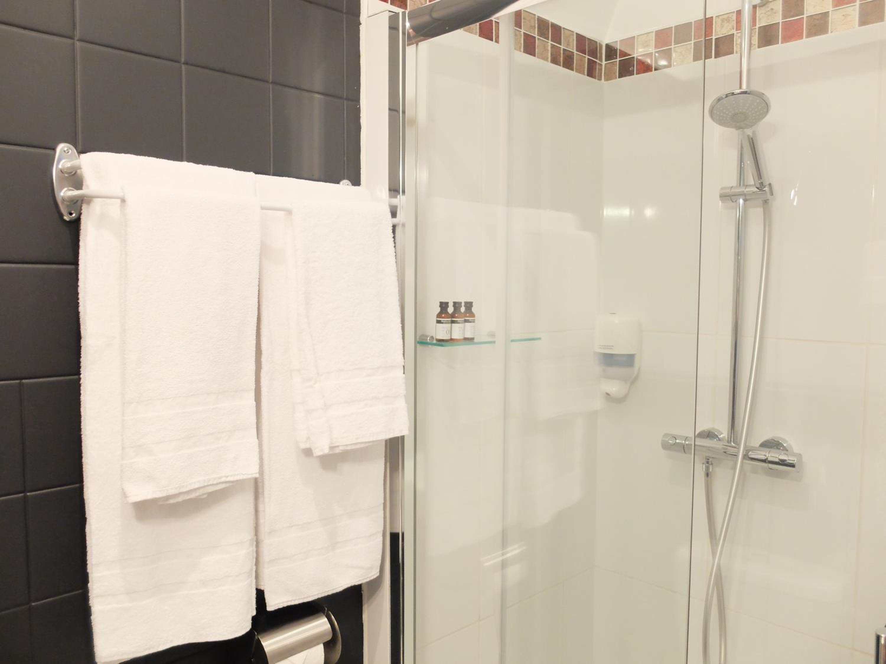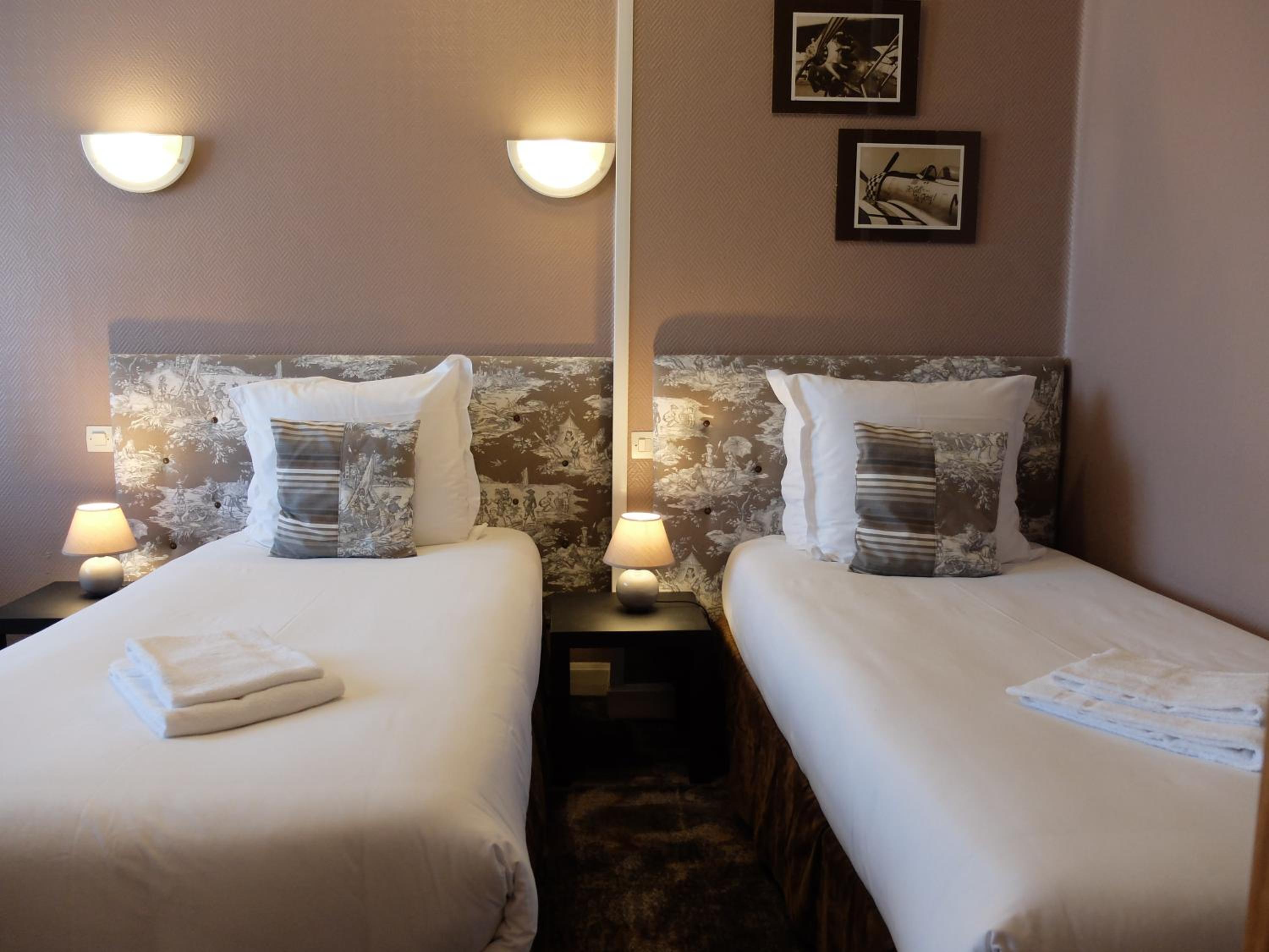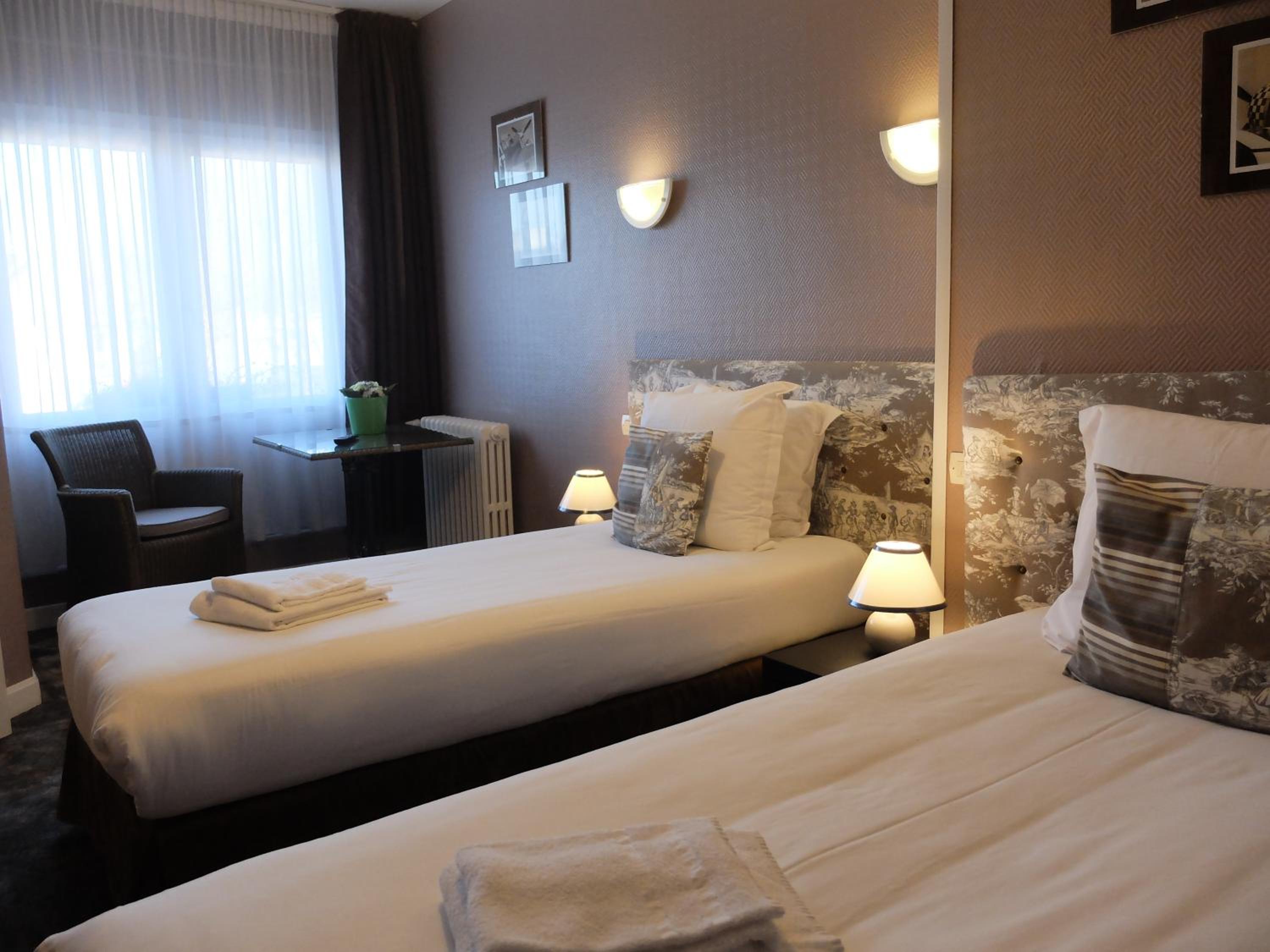 We stayed overnight to watch the Tour de France. The staff were very helpful, especially with advice on parking ! The location is in the main square , we had a late check out at 12pm which helped with the weather. We didn’t have the breakfast but there is a small supermarket nearby with everything you need. Our rooms wee comfortable and spacious.