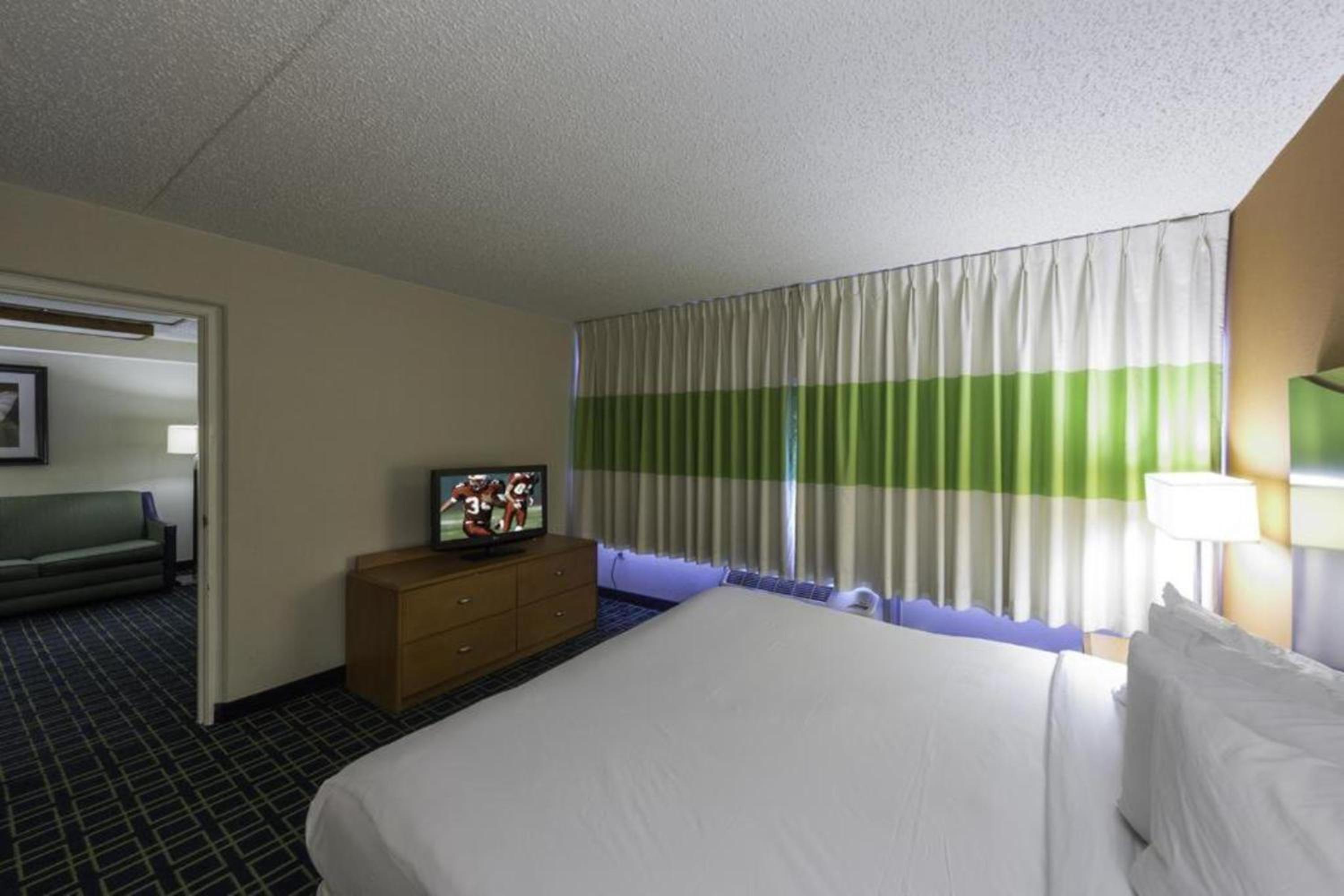 Room smelled like mold, blankets had piss stains, bathroom smelled like something died ! Light fixtures in bathroom had no globe, you look up your looking at dust, lint and dirt. Lamp shades stained. Chair in room was stained. Towels were dingy. Breakfast, coffee no creamer, no juice or beverage offered to children. Bread and cereal every morning.Hotel has numerous people living in it. Weight room was filled with people’s belongings . People were in and out all night! The room looked nothing like the photos. They charge you a 100$ deposit for a room that’s already torn up. I should have been paid to sleep there. Room is only worth 25$ a night. I will never book at that place again!!