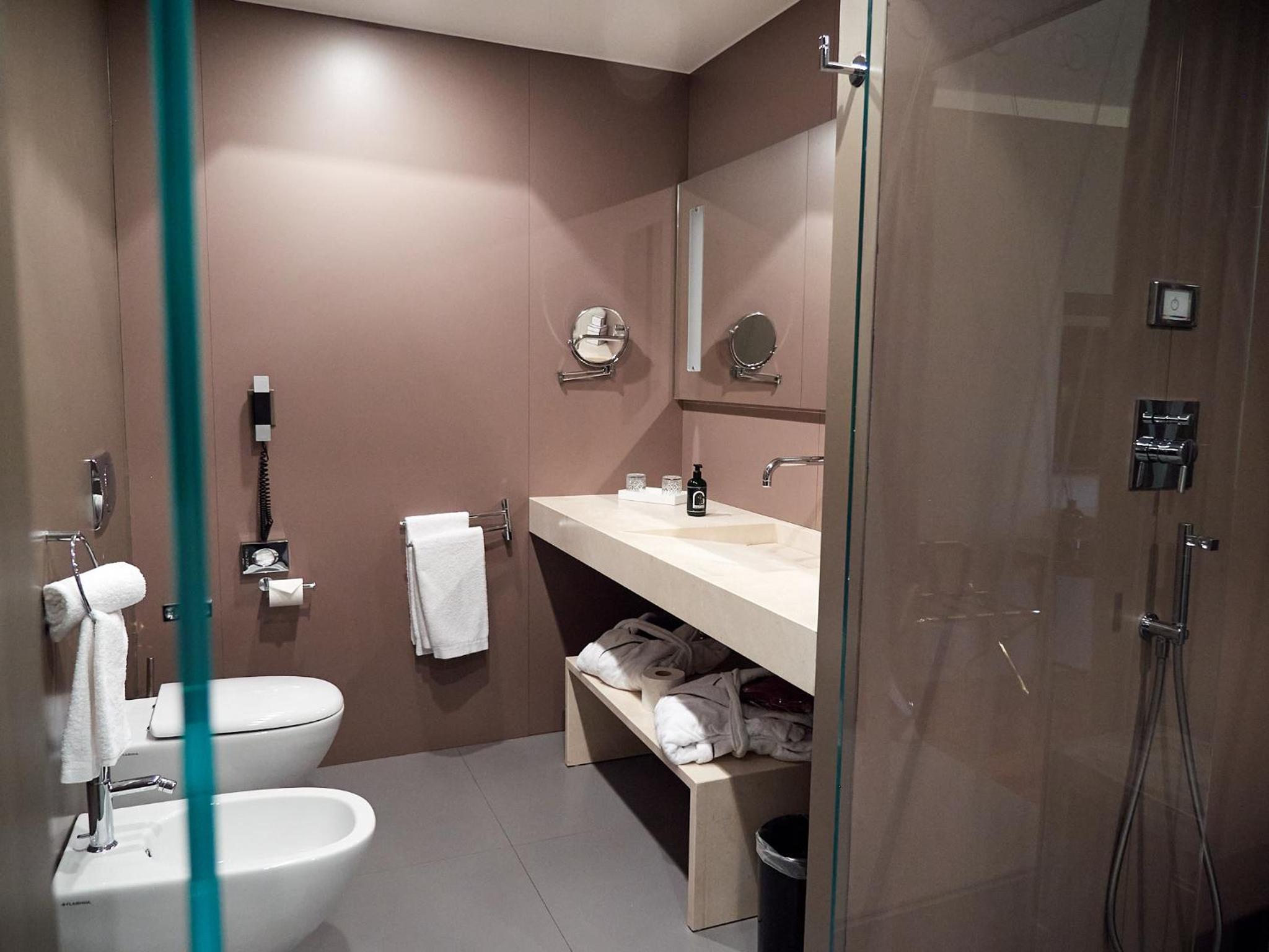 Grundsätzlich schöne Zimmer, eines der Zimmer hatte ein offenes Badezimmer, das geht für mich gar nicht! Die Foto"Kunst" fanden wir teilweise fragwürdig und sexistisch. Sehr nettes Personal, das Frühstück war italienisch süß und lecker. Die Lage ist wirklich sehr gut. Wir würden wieder hier übernachten, allerdings nur in Zimmern mit abgeschlossenem Bad.