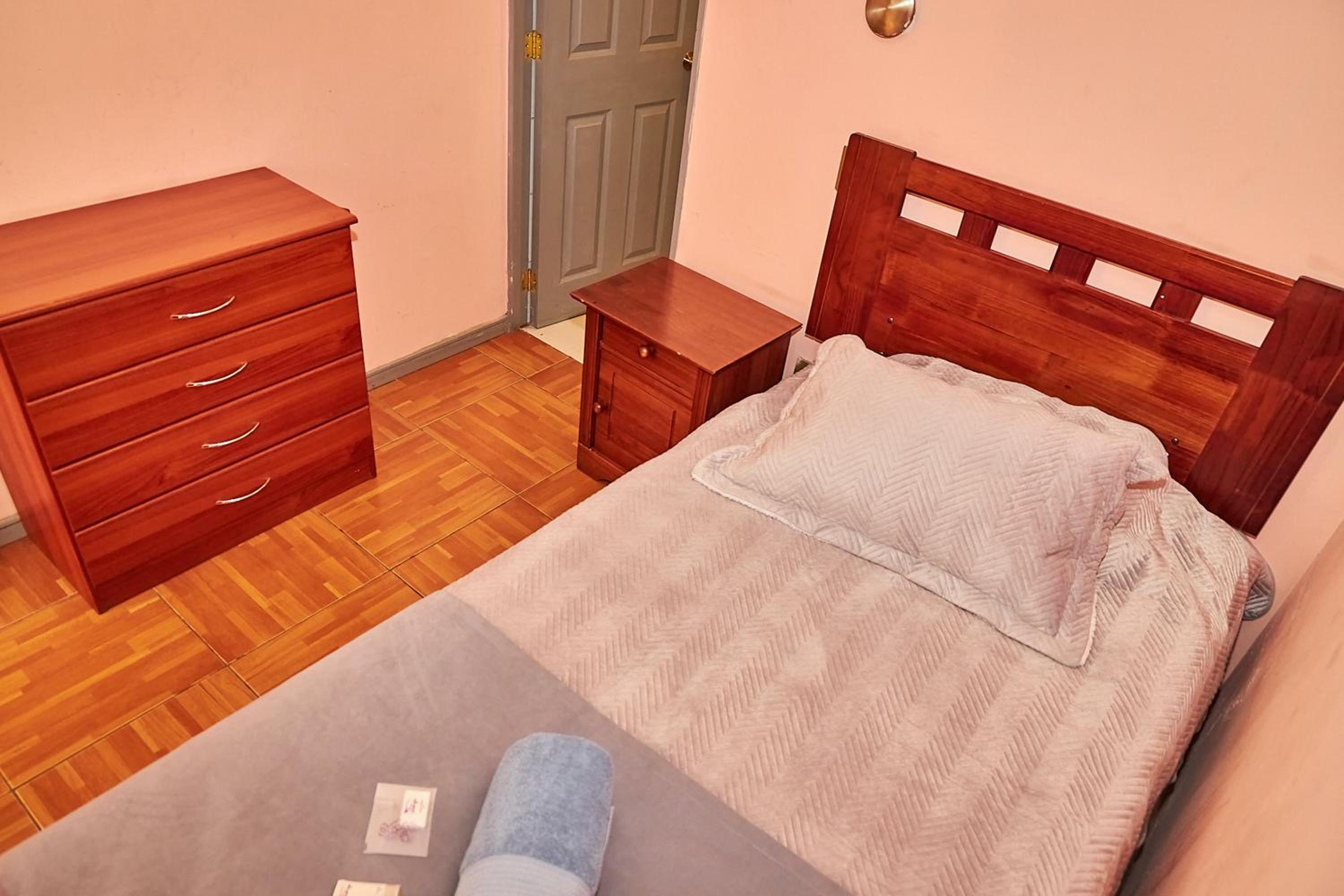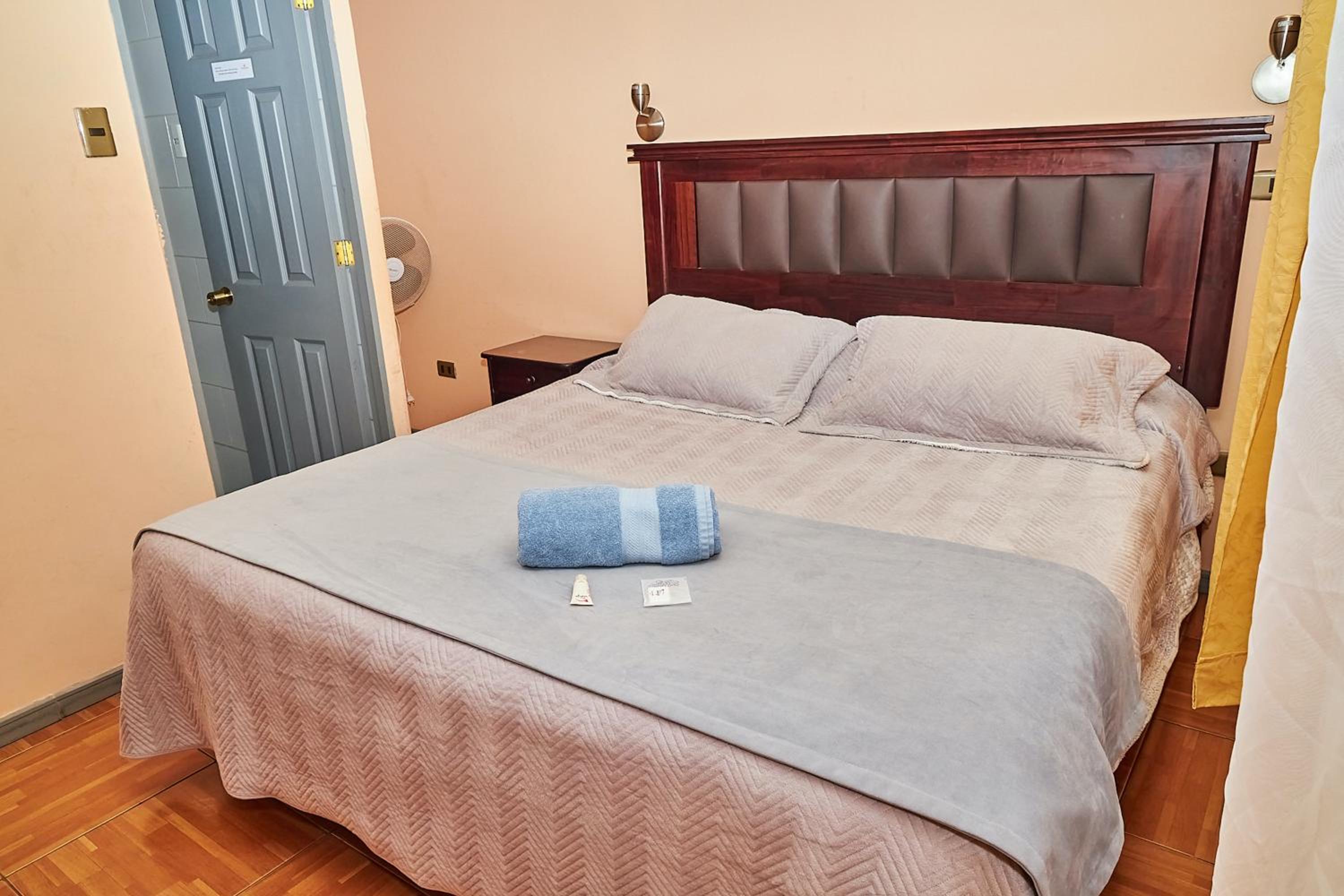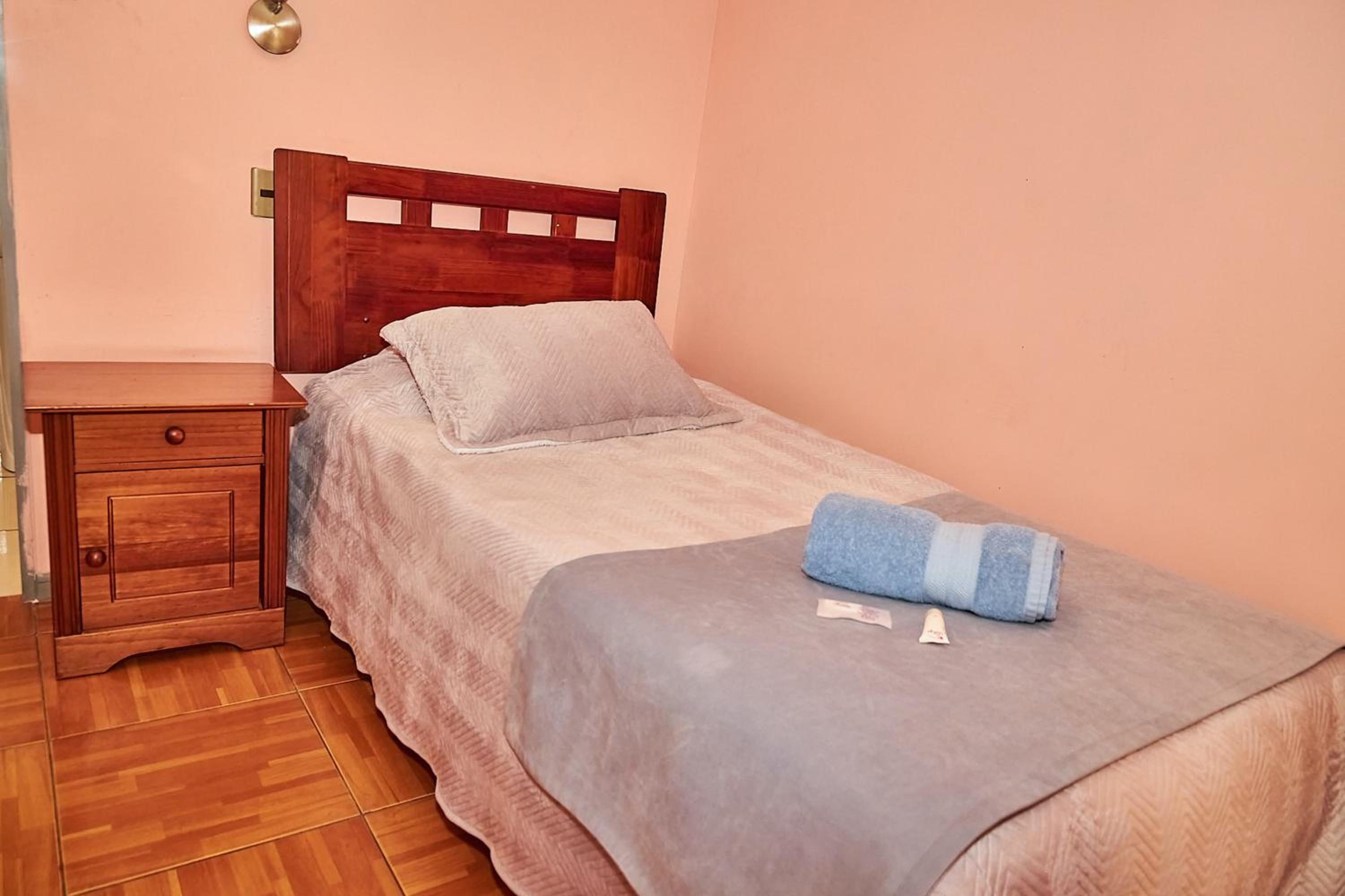 Nothing it’s OK over there. It’s not a clean place is not a proper room. It’s more like a cupboard. The bathroom was filthy. The bed and the mattress was the worst ever in two months traveling in South America on my motorcycle furniture rotten bed breakfast. Everything was bad bad bad.