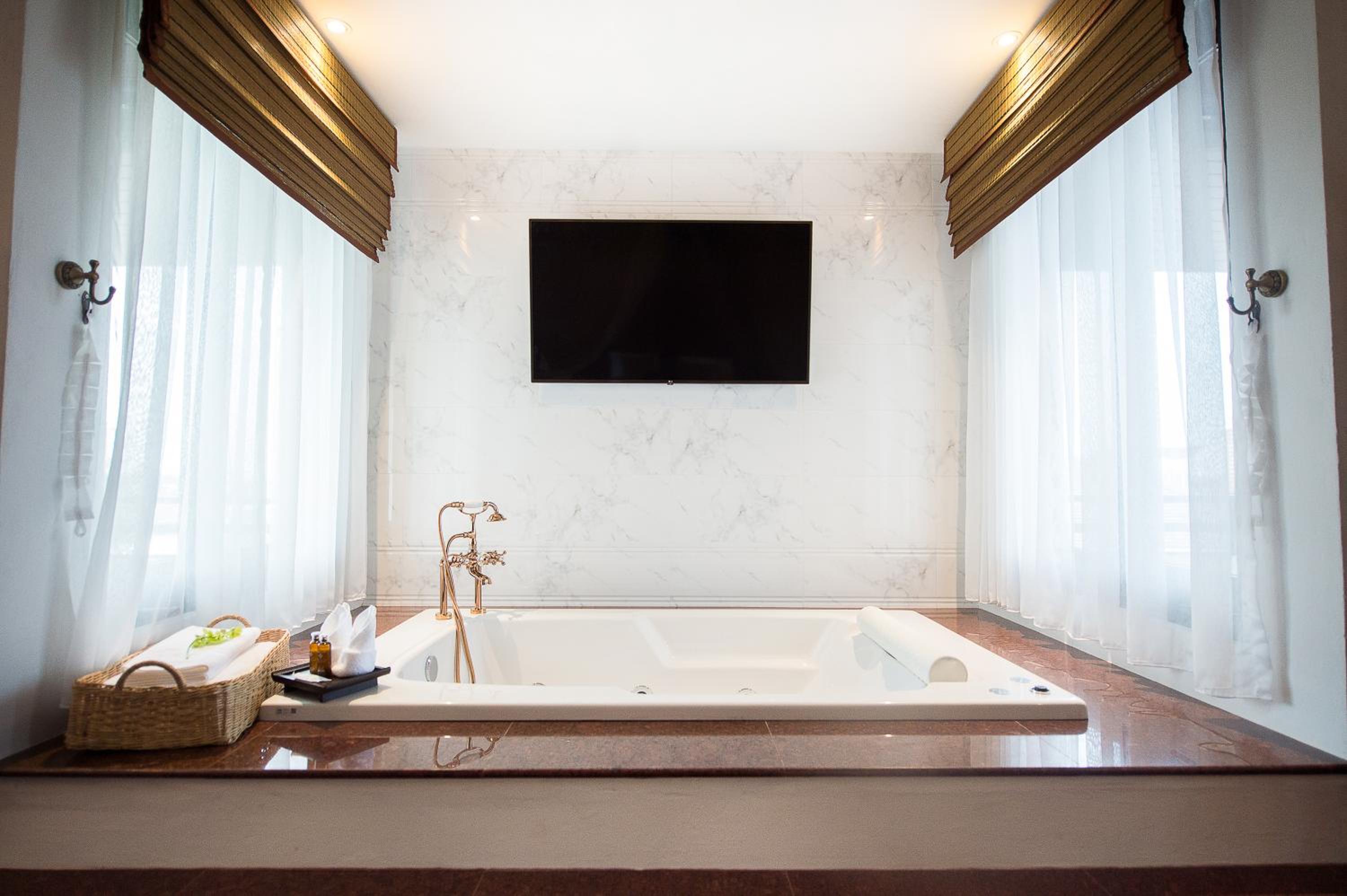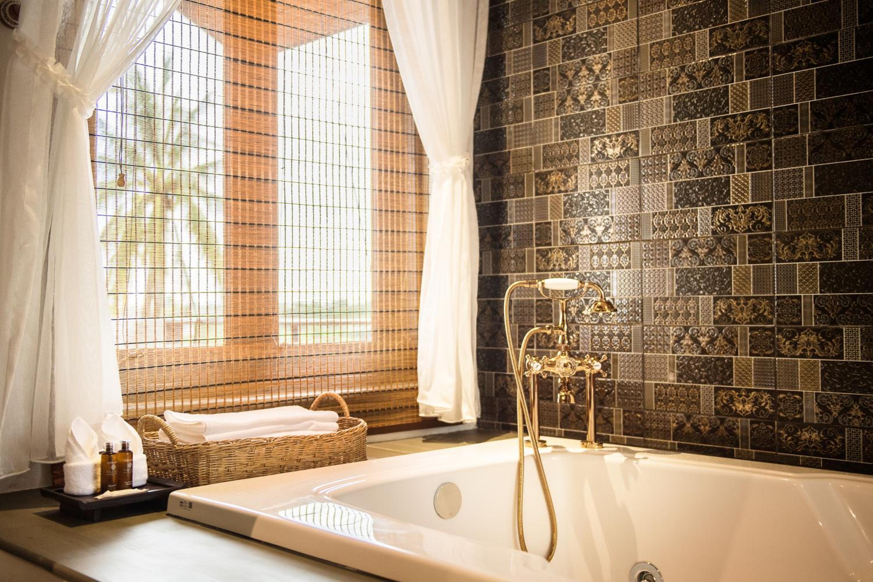 De badkuip, wastafel en douche in de kamer, slechts gescheiden door een gordijn. WC was wel apart, maar bereikbaar door de douche (Grand Deluxe Kamer). Ik geef de voorkeur aan een gesloten badkamer (zoals ik vorig jaar in dit hotel had), maar dat is een persoonlijke smaak en er zullen genoeg mensen zijn, die het wel fijn vinden..