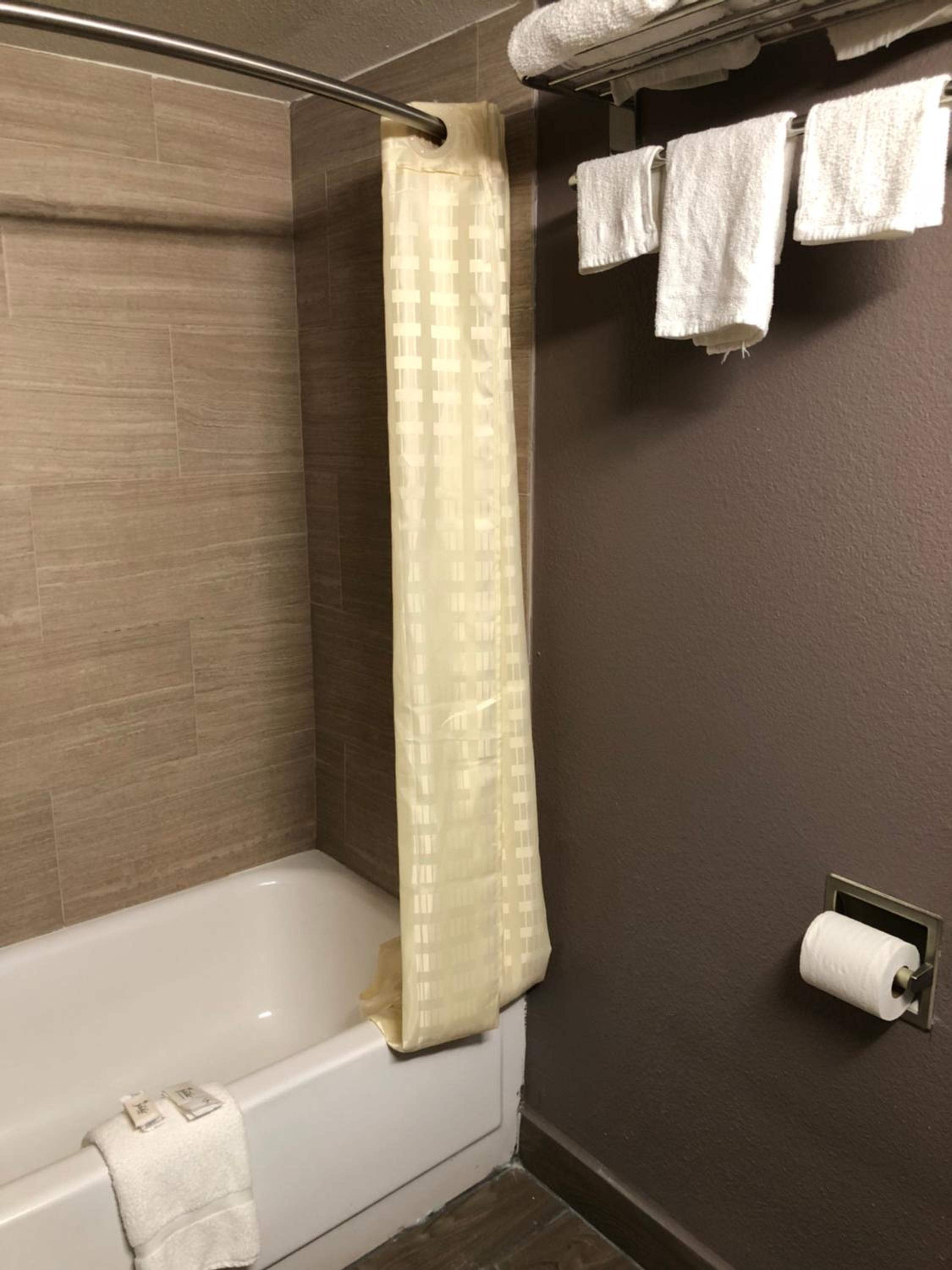 Linens were not up to par. Had alot of crumbs on them. Markings on furniture. Towels were dingy and out of date and staff didn’t have any extra towels for us. First night our door handle broke and we couldn’t get in our room without maintenance fixing it. But it’s close to my job so the area was very convenient.