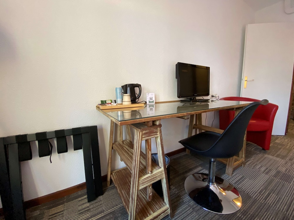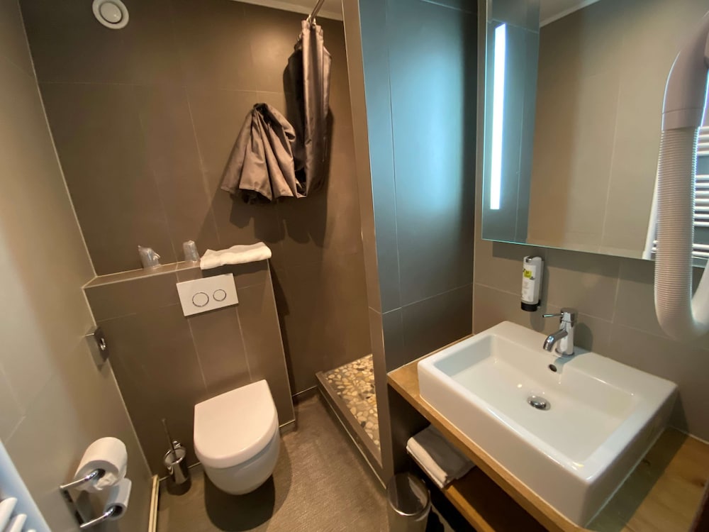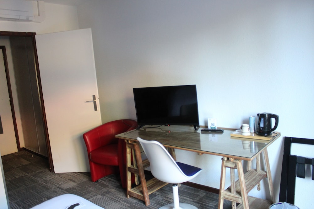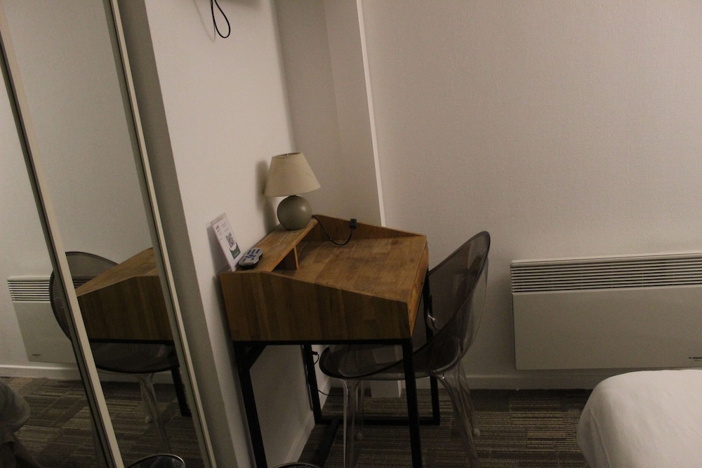 Hôtesse d’accueil pas très souriante, arrivé dans la chambre pas de télécommande pour la télé, très compliqué pour la regarder. Nous avons tout de même réussi à l’allumer avec le bouton sur la télé mais nous n’avions pas de son (nous avons regardé the voice sans le son). De plus, la chasse d’eau n’était pas très efficace (nous devions la tirer au moins 4 fois). Sans oublier qu’il n’y avait pas de réel lumière au plafond, seulement 3 lampes de chevet brancher à la prise et relier aux interrupteurs. Pour le petit déjeuner, c’est très cher pour ce qu’il y avait (croissants pas cuits, une machine à café sur deux qui marchait …). Pour finir hôtel bruyant à cause des extérieurs (boîte de nuit, bar ambiance, personne qui créer leur propre boîte de nuit sur le parking juste à côté).
