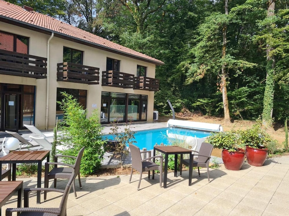 Indulge in the seasonal outdoor pool and relax on the terrace, taking in the picturesque surroundings.